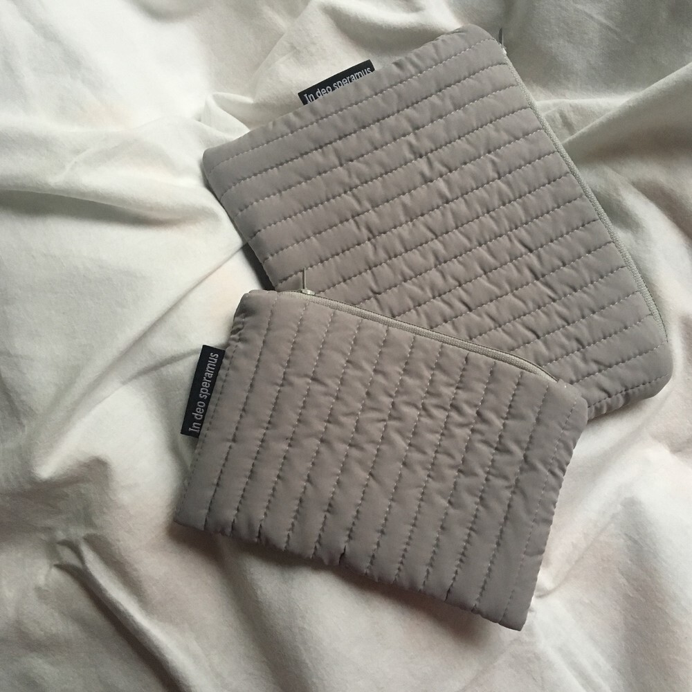 가을, 겨울에 들고 다니기 좋은 도톰한 누빔 파우치입니다.