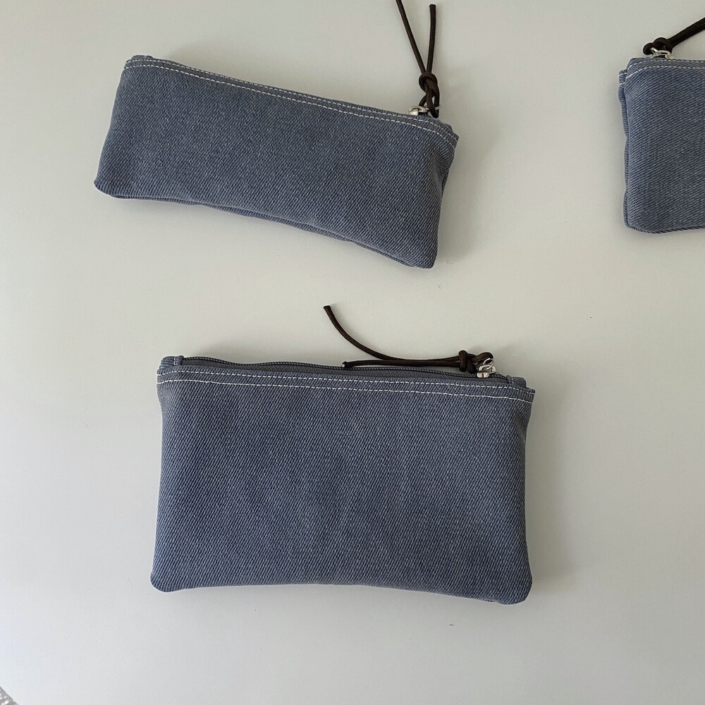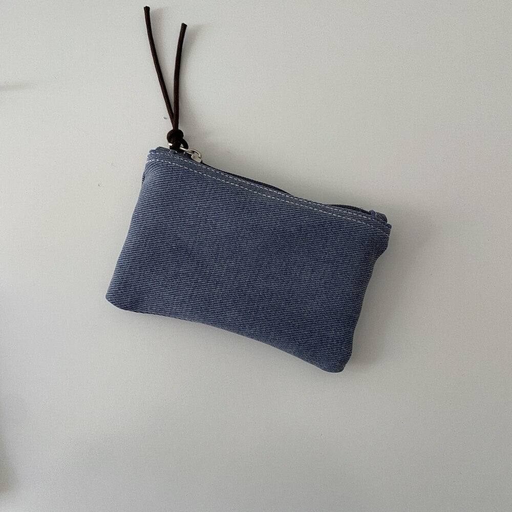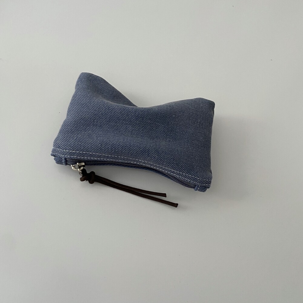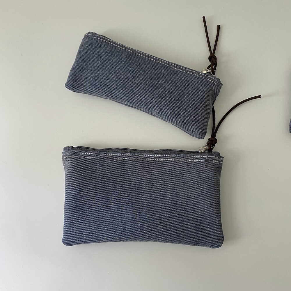 빈티지한 데님 소재에 화이트 스티치가 포인트인 파우치입니다.