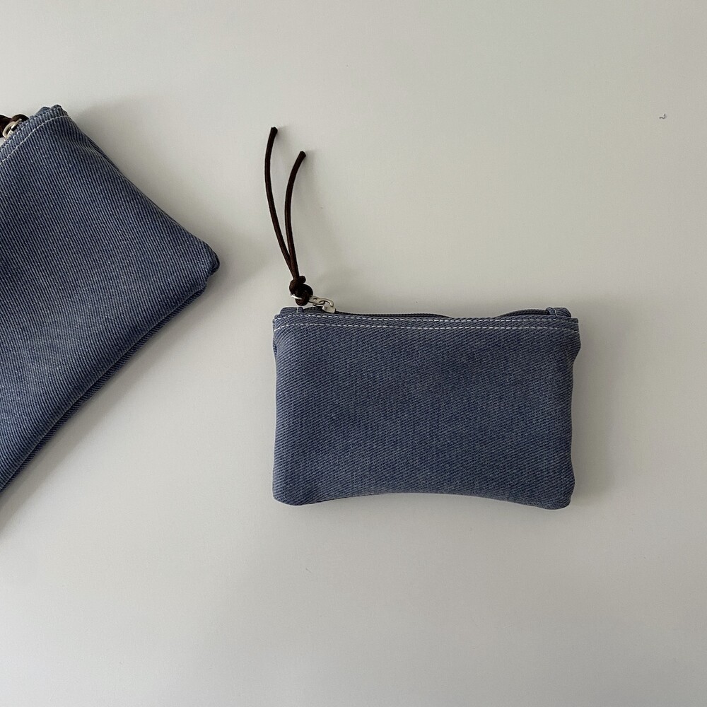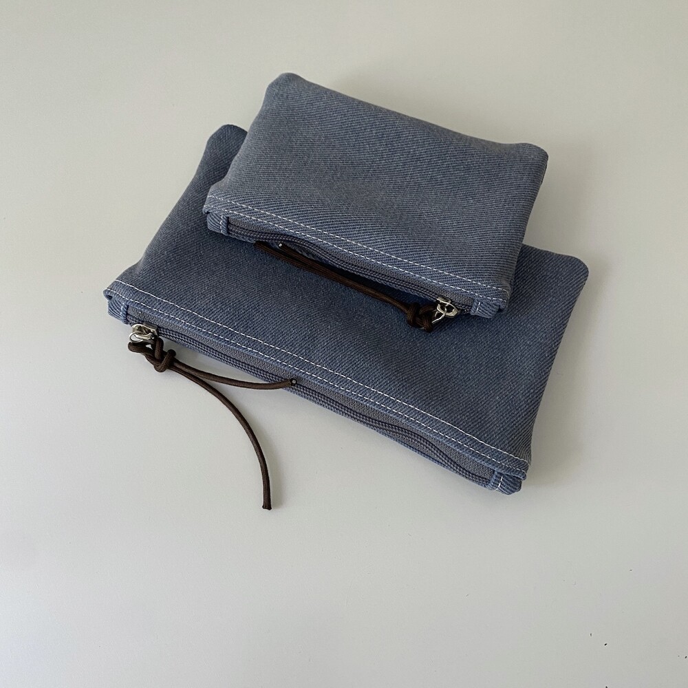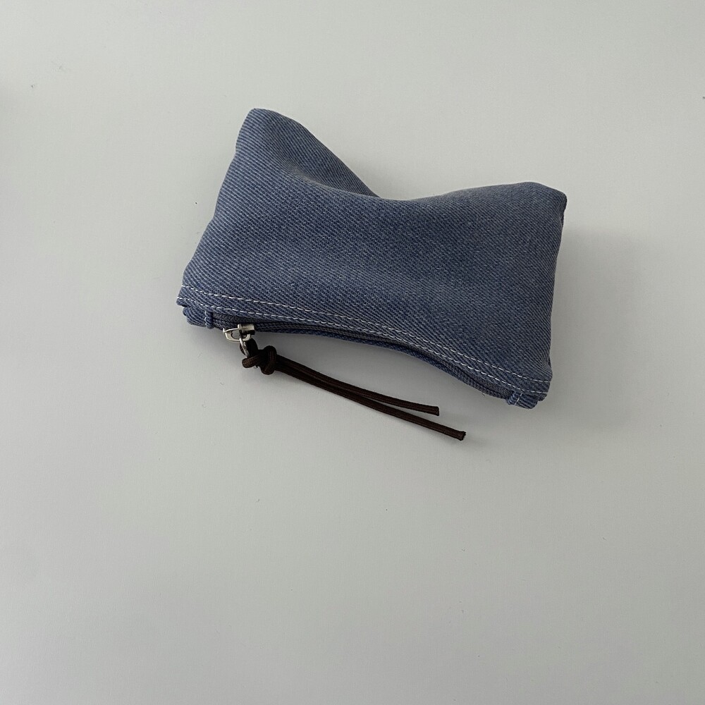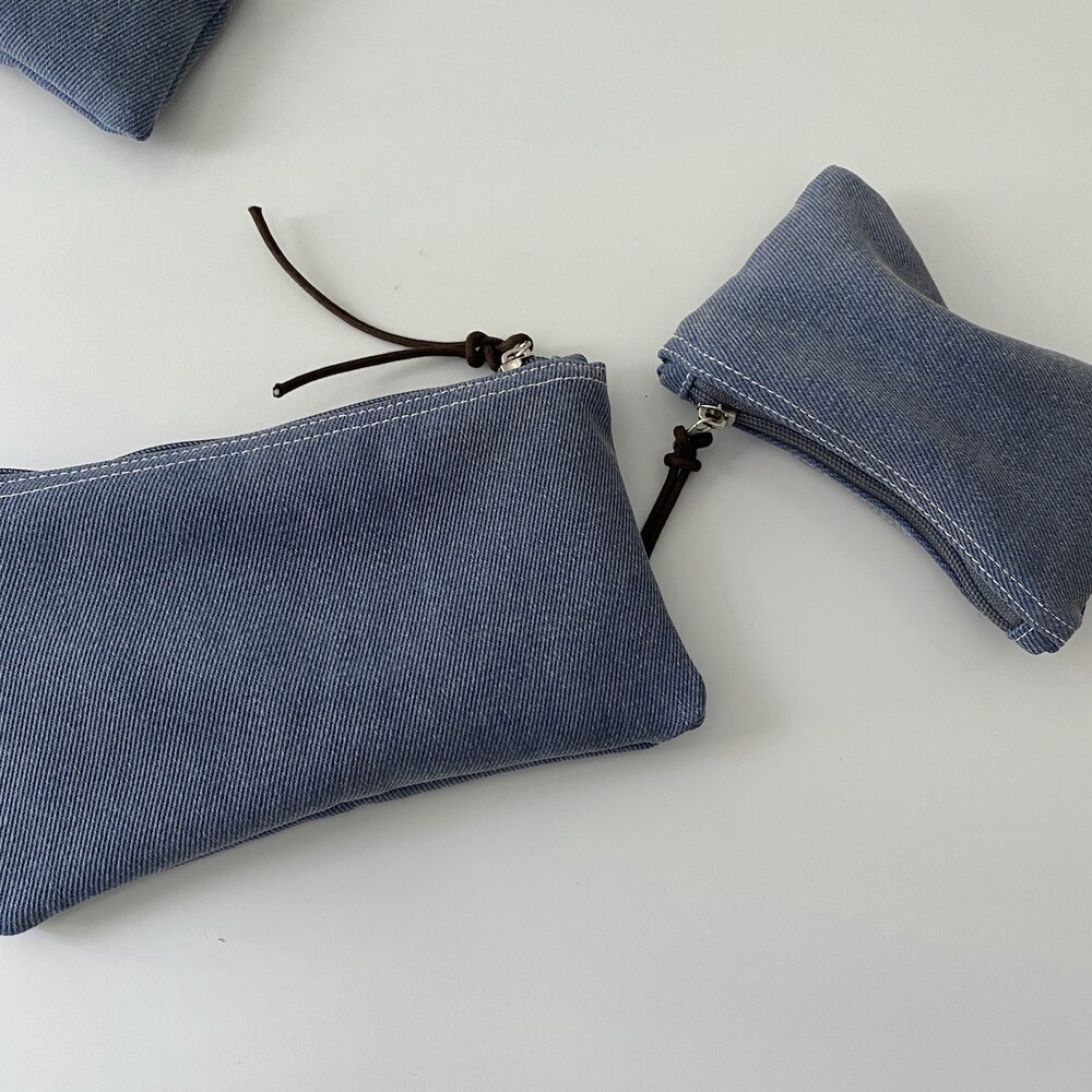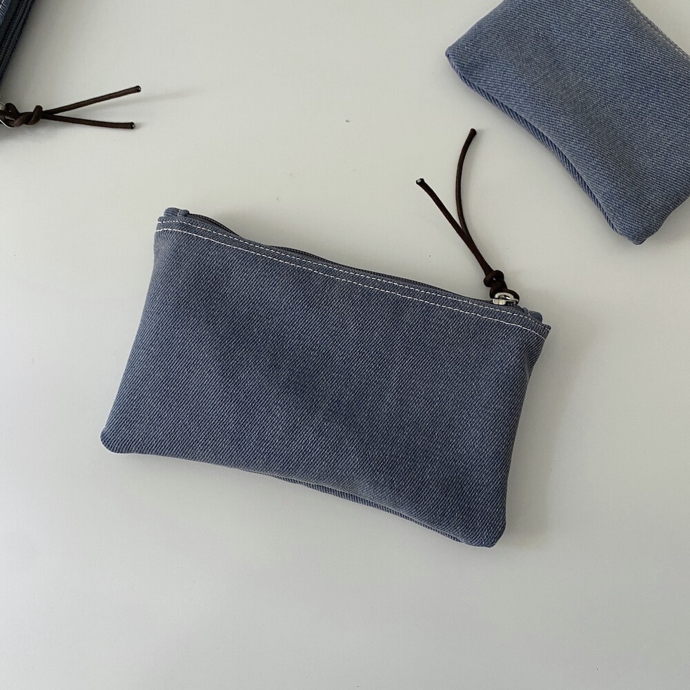 빈티지한 데님 소재에 화이트 스티치가 포인트인 파우치입니다.