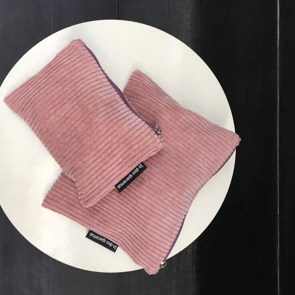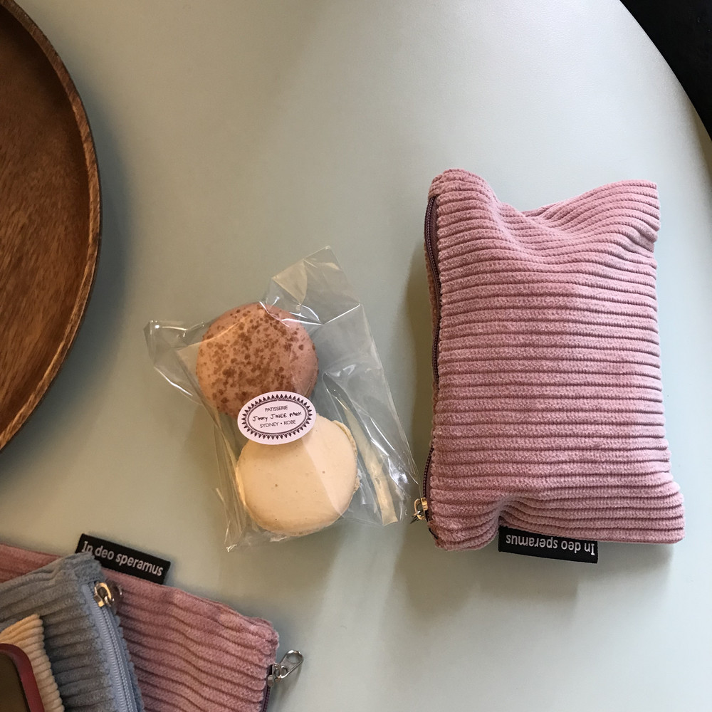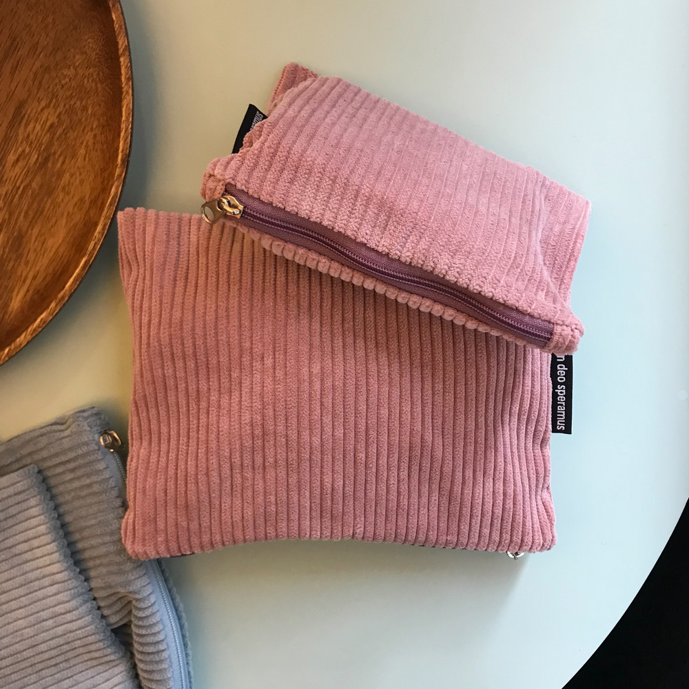 달콤한 마카롱이 생각나는 인디언 핑크 색상의 코듀로이 파우치입니다.