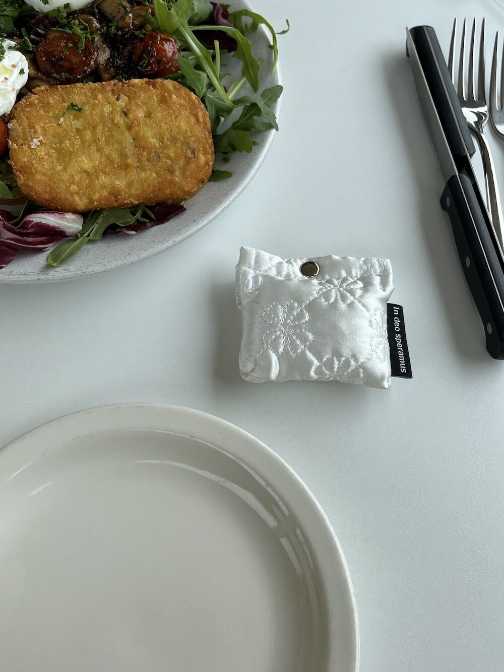 퀼팅 소재의 귀여운 에어팟 케이스입니다.