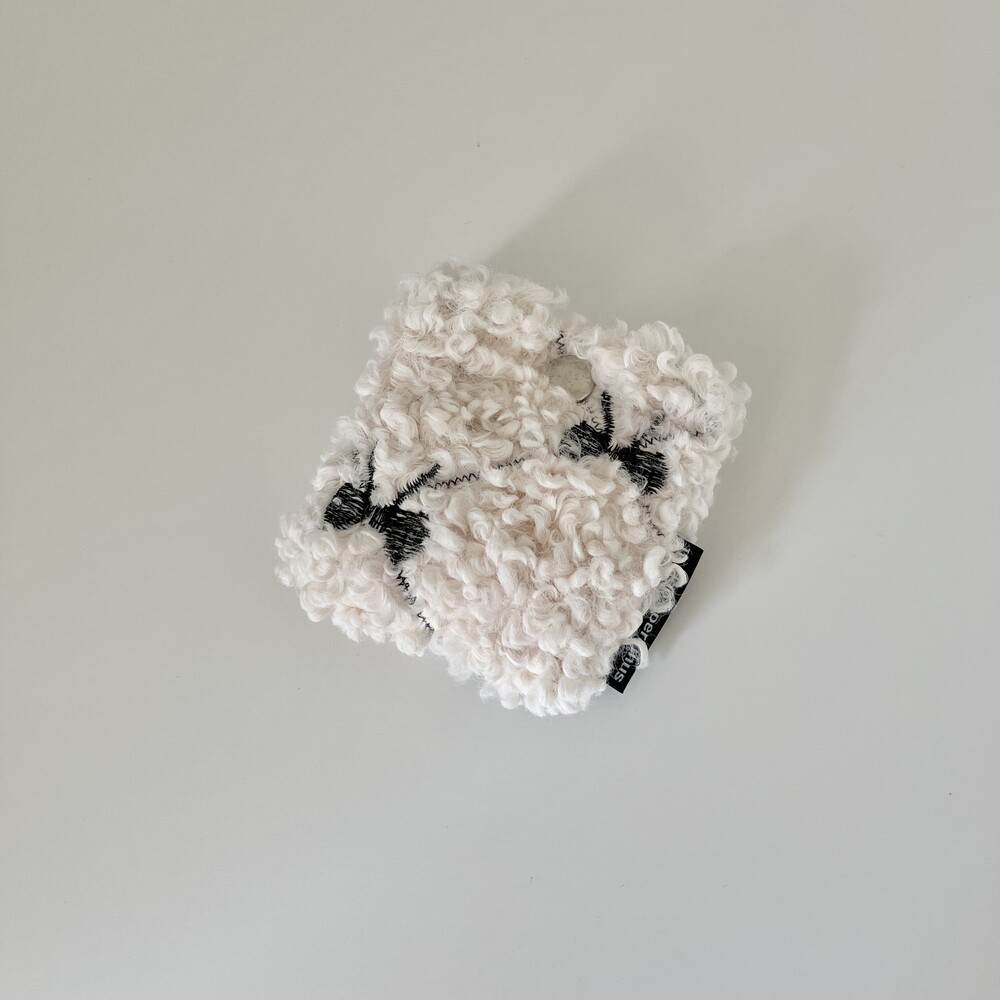 플러피 원단에 귀여운 리본 자수가 새겨진 에어팟 케이스입니다.