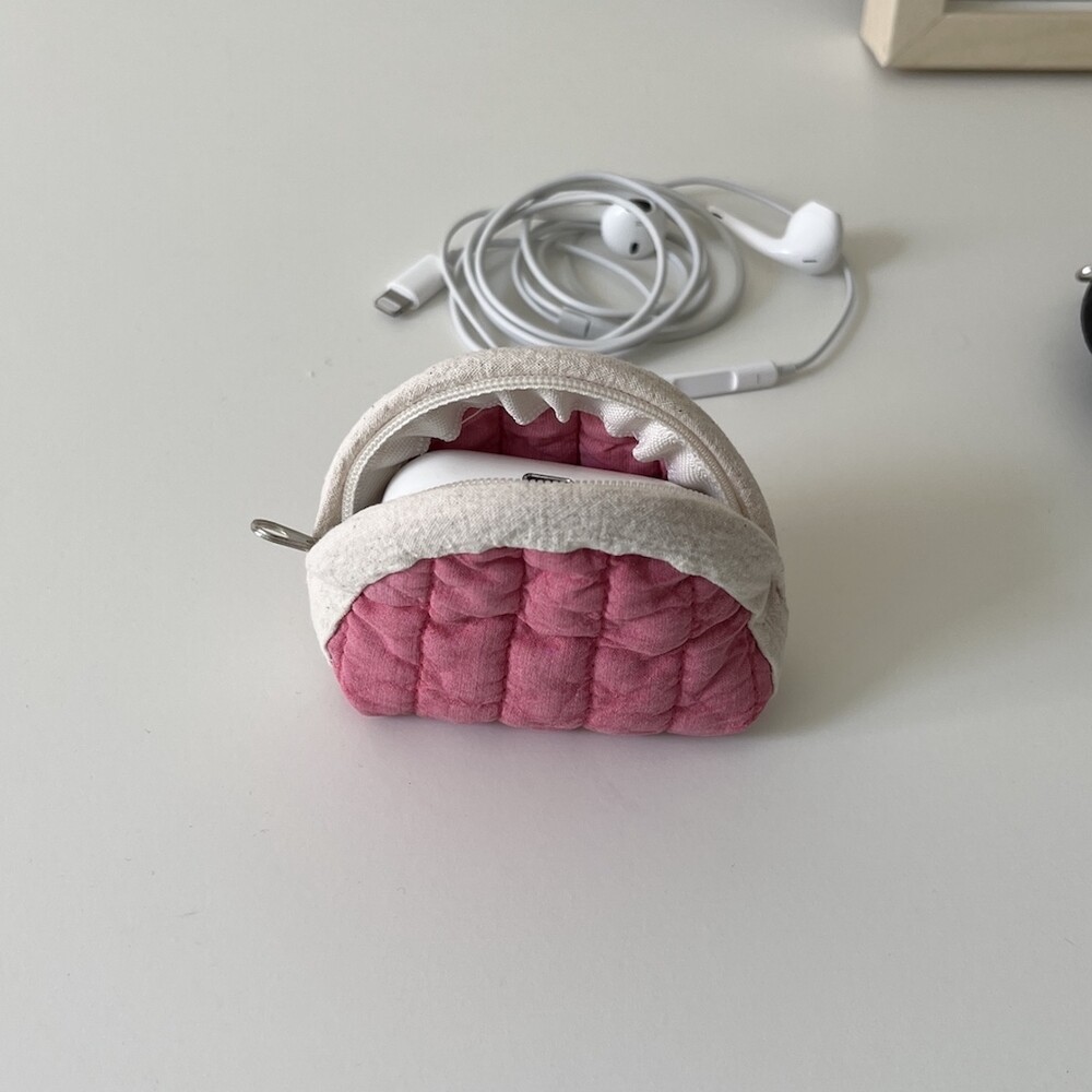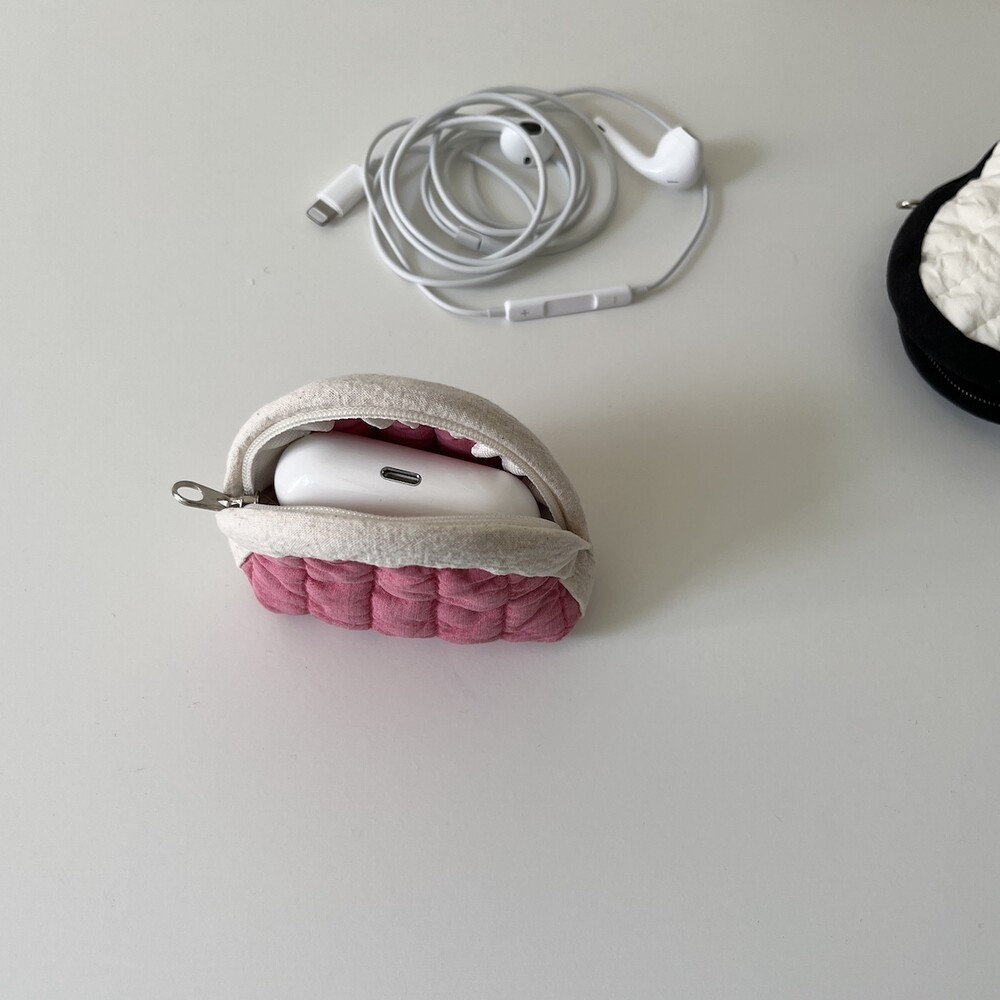 퀼팅 소재의 귀여운 이어폰 케이스입니다.