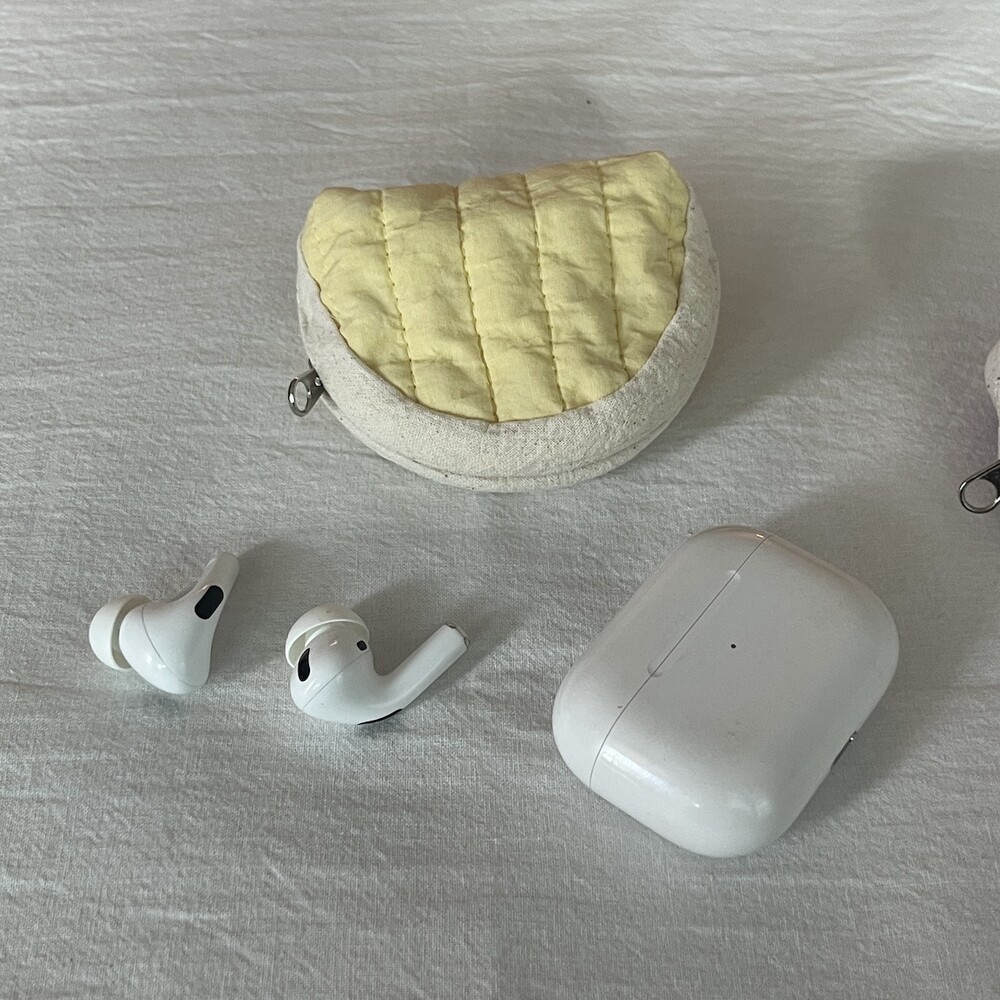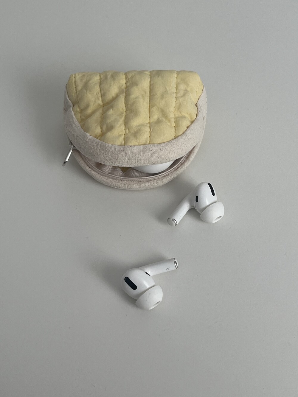 퀼팅 소재의 귀여운 이어폰 케이스입니다.
