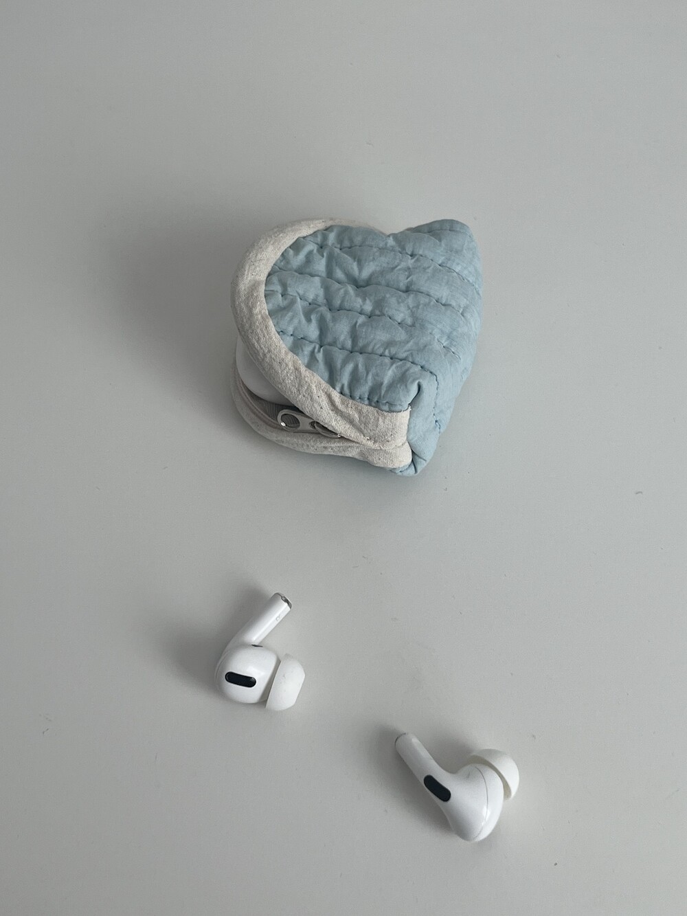 퀼팅 소재의 귀여운 이어폰 케이스입니다.