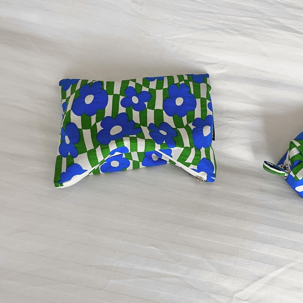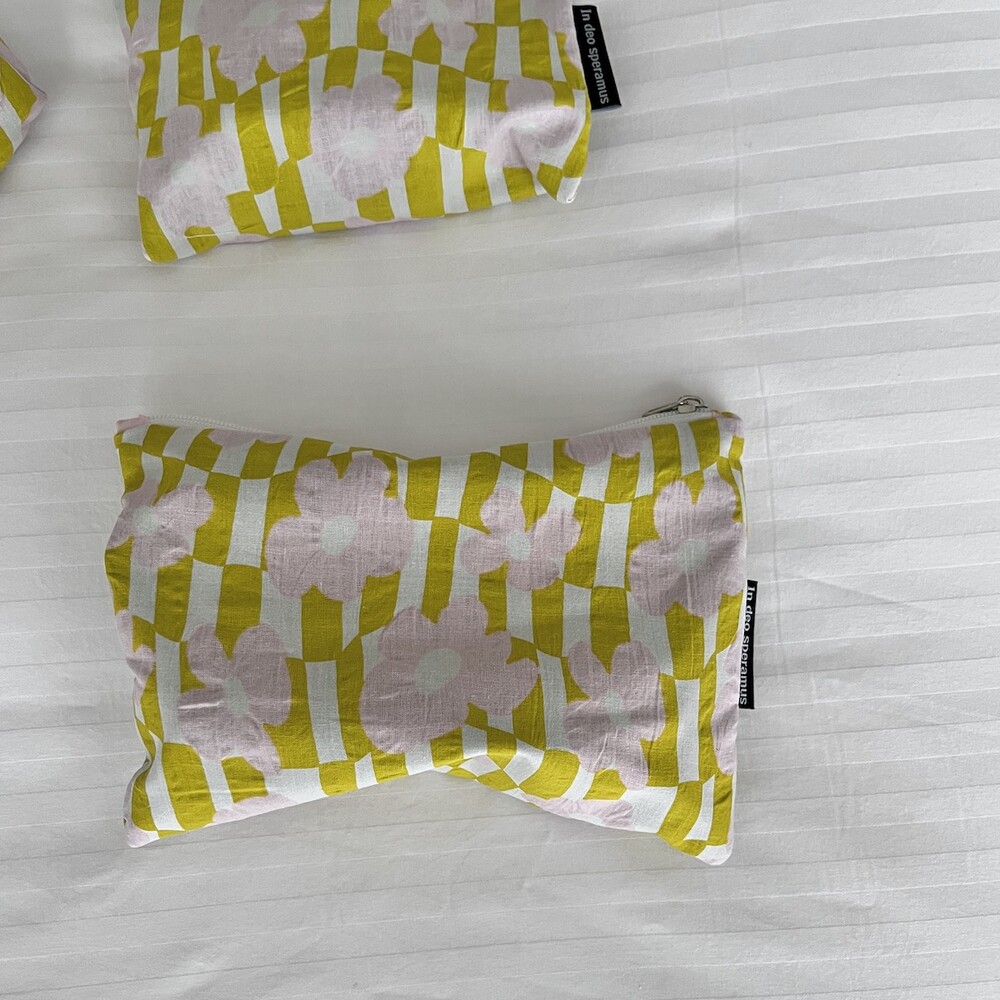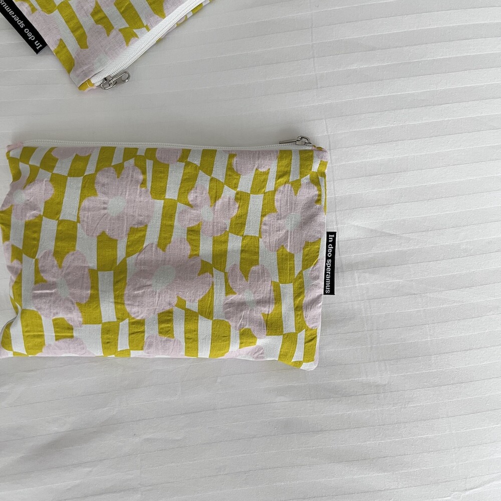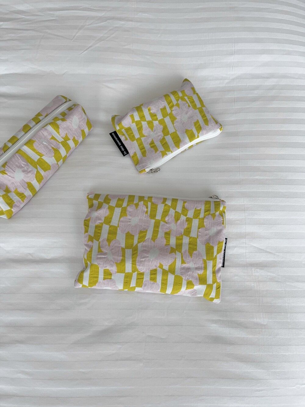 플라워 무늬 원단이 포인트가되는 패턴과 심플한 지퍼형 디자인이 매력적인 파우치입니다.