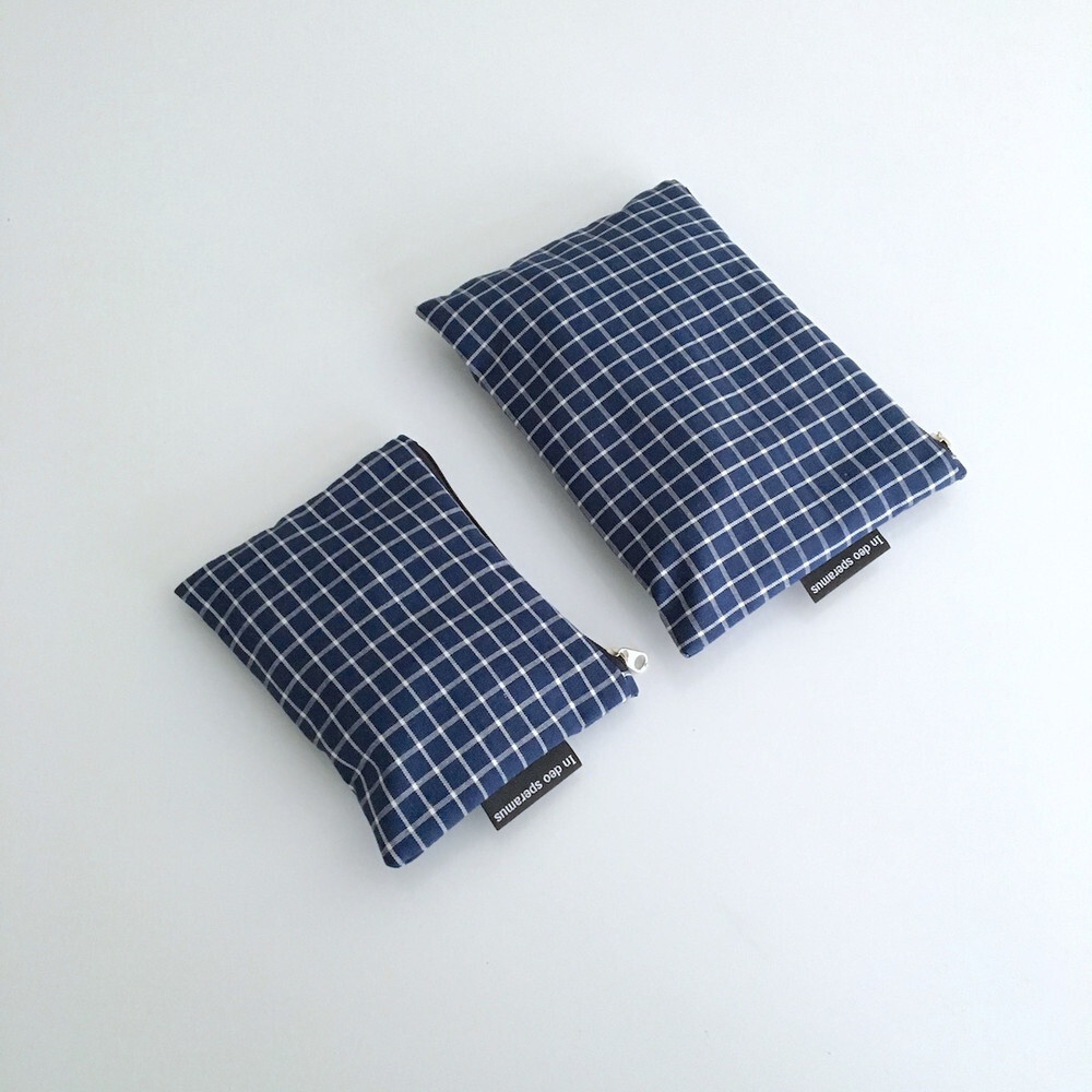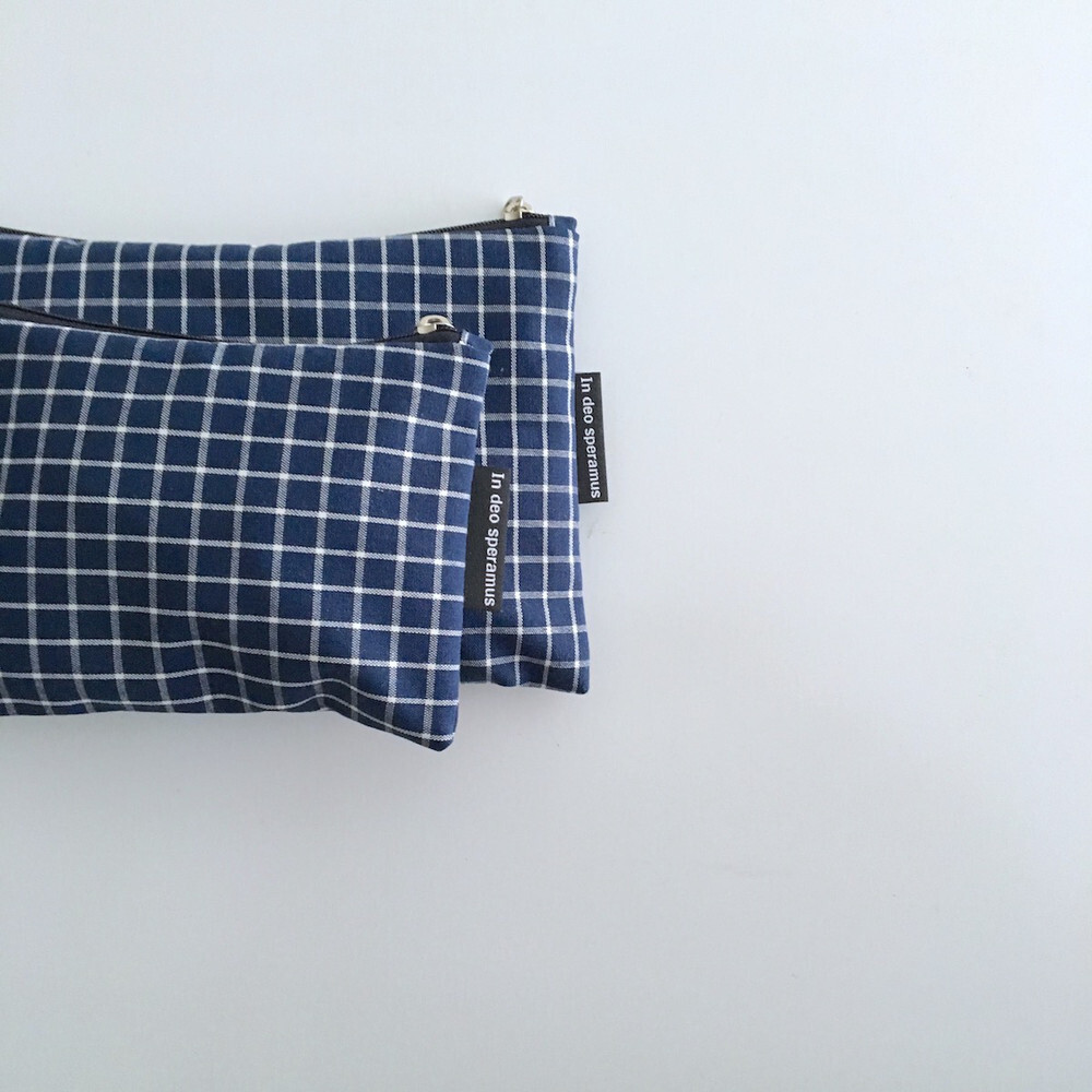 네이비 체크 파우치