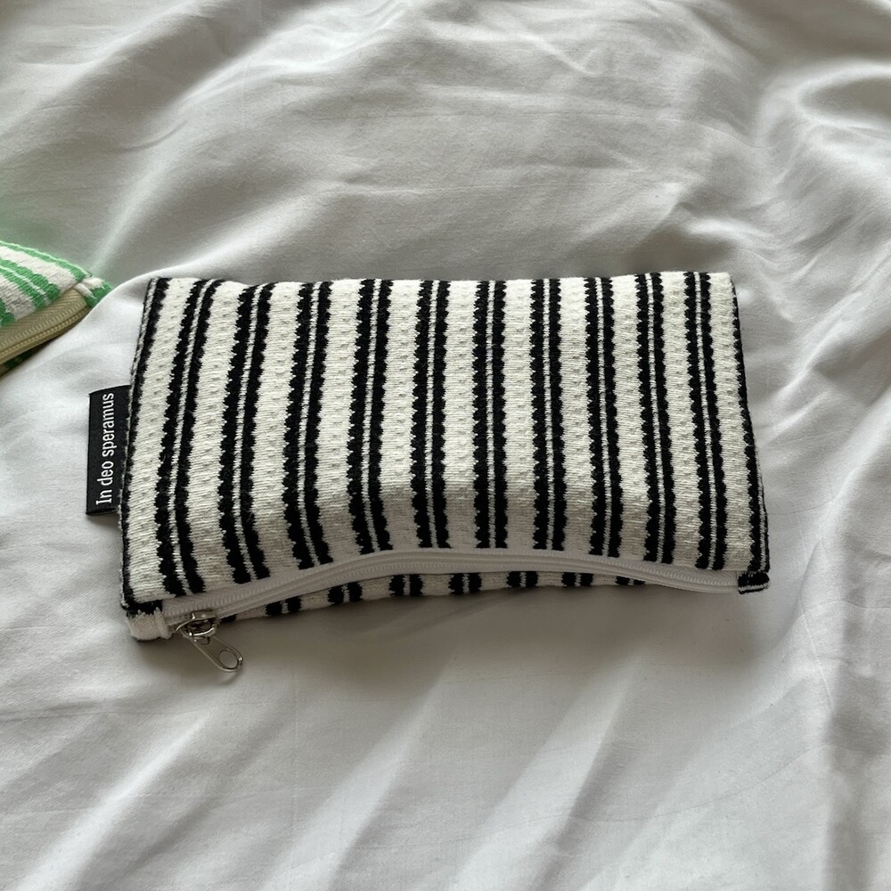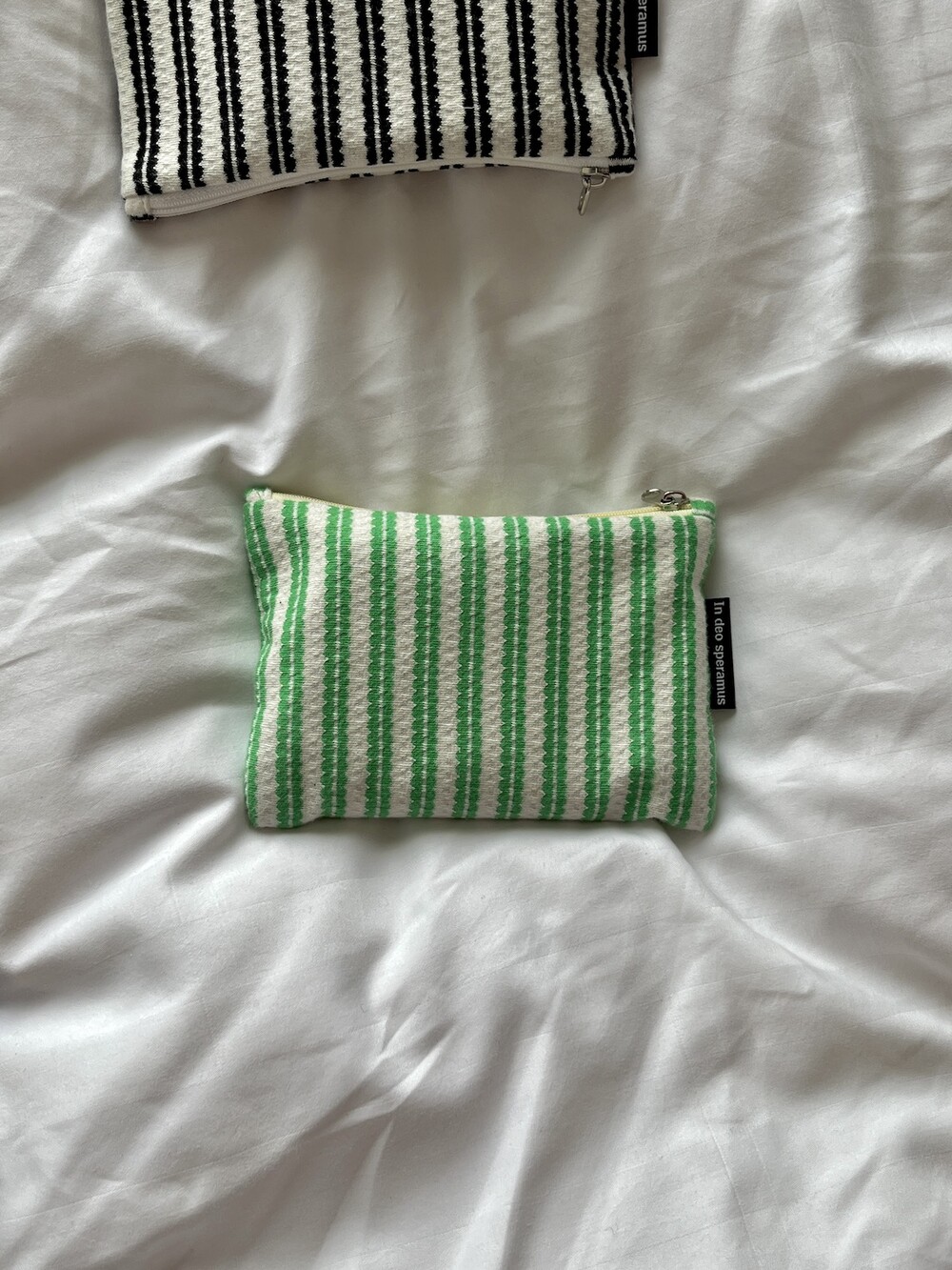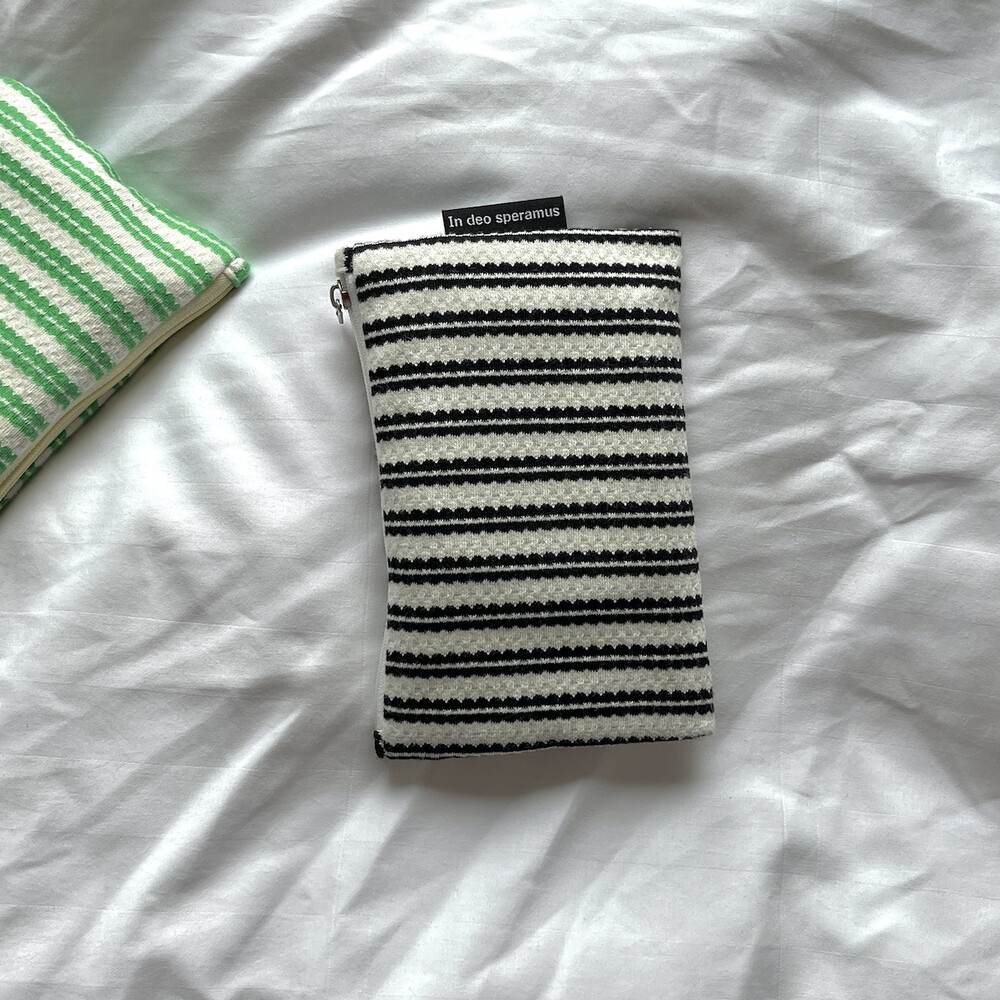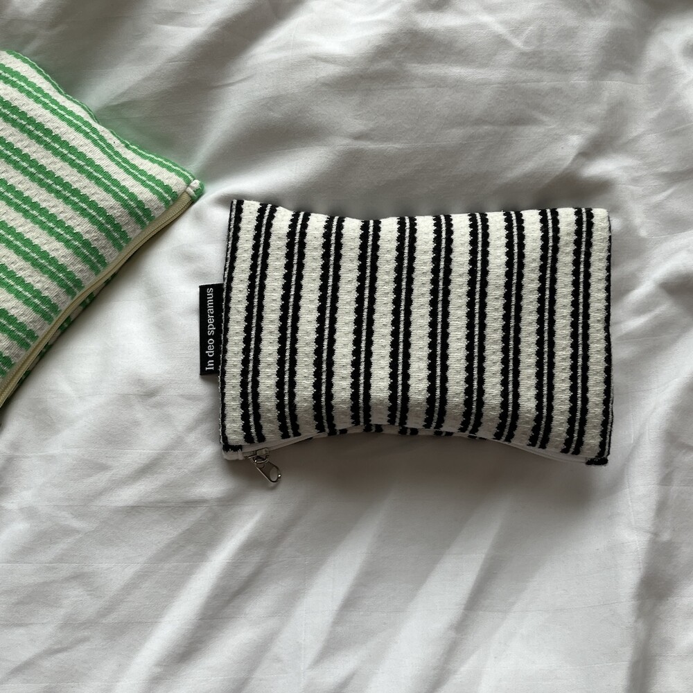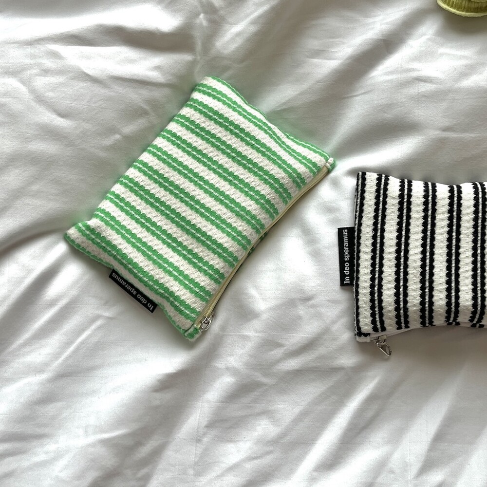 자가드 원단의 포인트가되는 패턴과 심플한 지퍼형 디자인이 매력적인 파우치입니다.