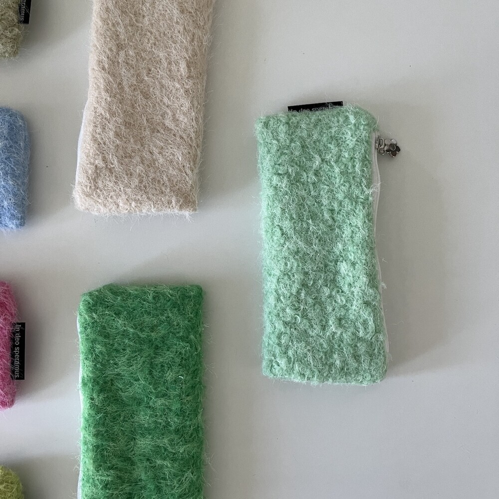 플러피한 원사감으로 포근한 느낌을 주는 필통입니다.
