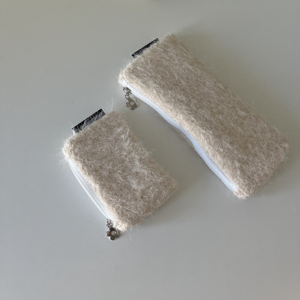 플러피한 원사감으로 포근한 느낌을 주는 파우치입니다.