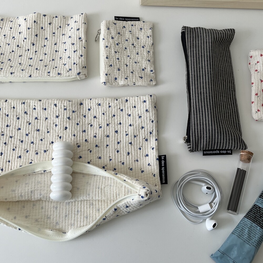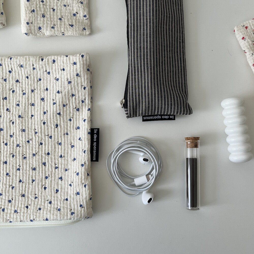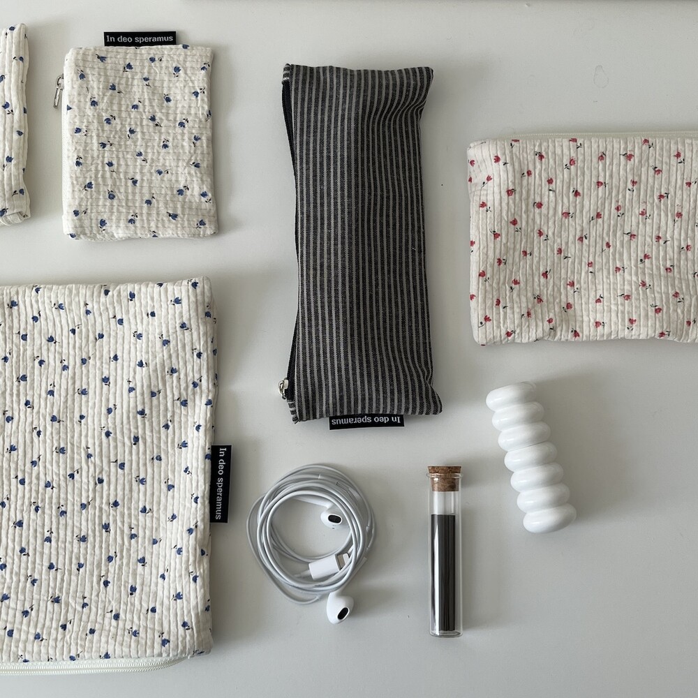 총 3가지 사이즈로 스몰 사이즈는 동전, 에어팟 등 작은 소지품, 미듐 사이즈는 팩트, 화장품 등 중간 정도 크기의 소지품, 라지 사이즈는 책,다이어리,장난감 여행용 짐 등 큰사이즈 소지품 넣기에 적당합니다.