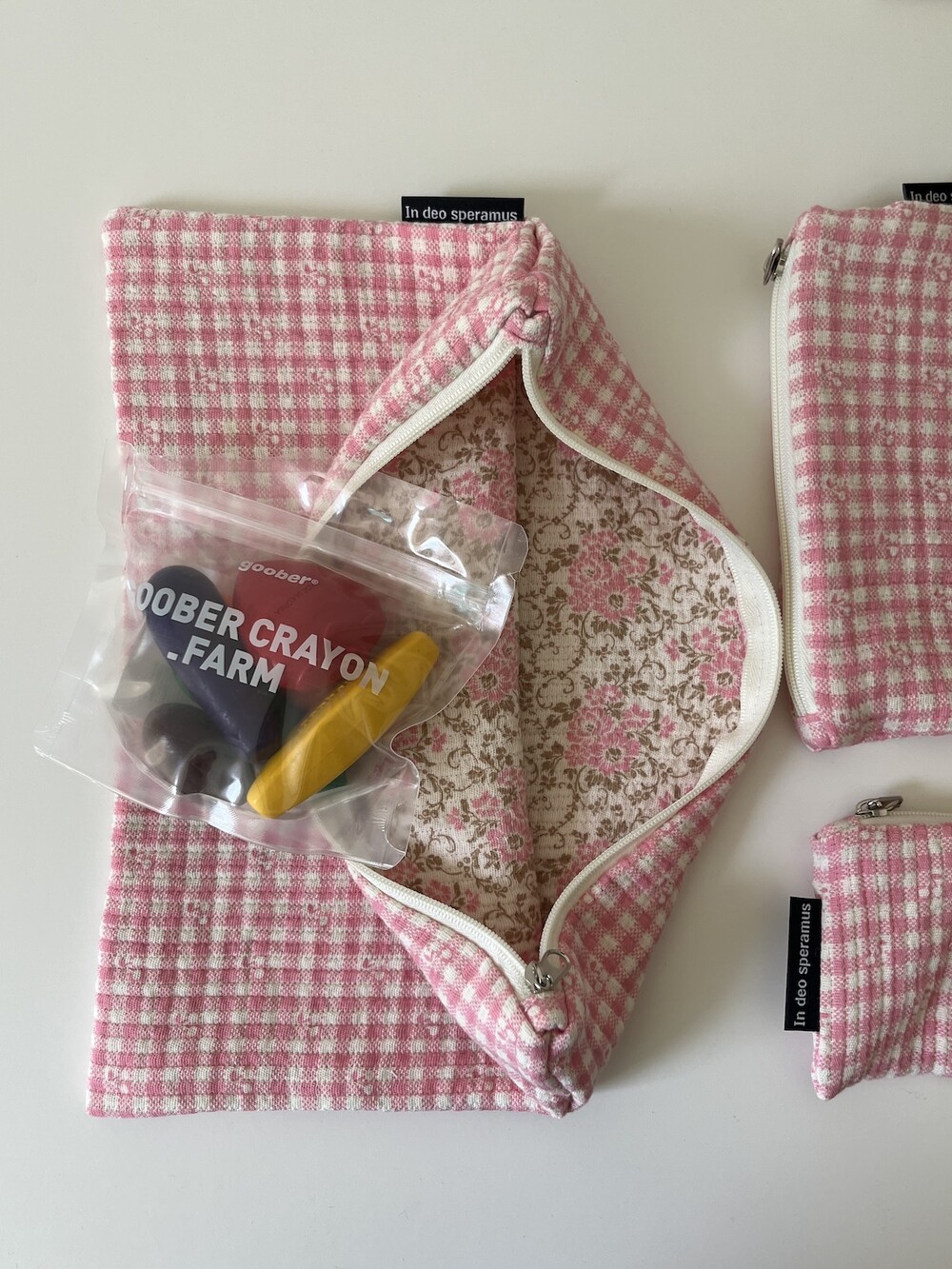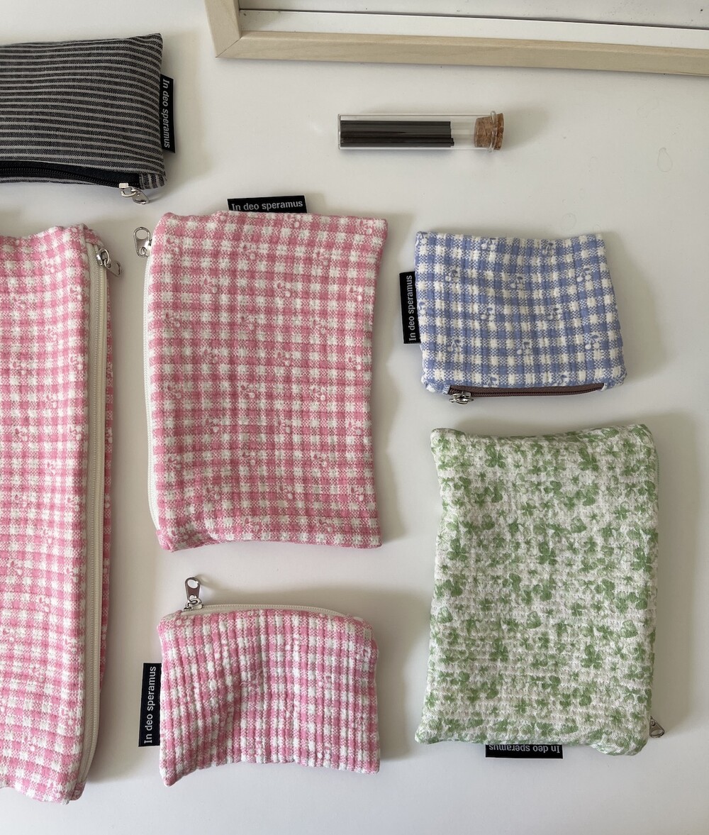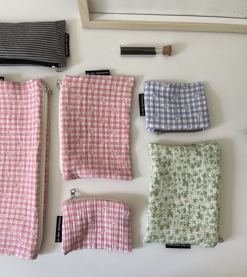 총 3가지 사이즈로 스몰 사이즈는 동전, 에어팟 등 작은 소지품, 미듐 사이즈는 팩트, 화장품 등 중간 정도 크기의 소지품, 라지 사이즈는 책,다이어리,장난감 여행용 짐 등 큰사이즈 소지품 넣기에 적당합니다.