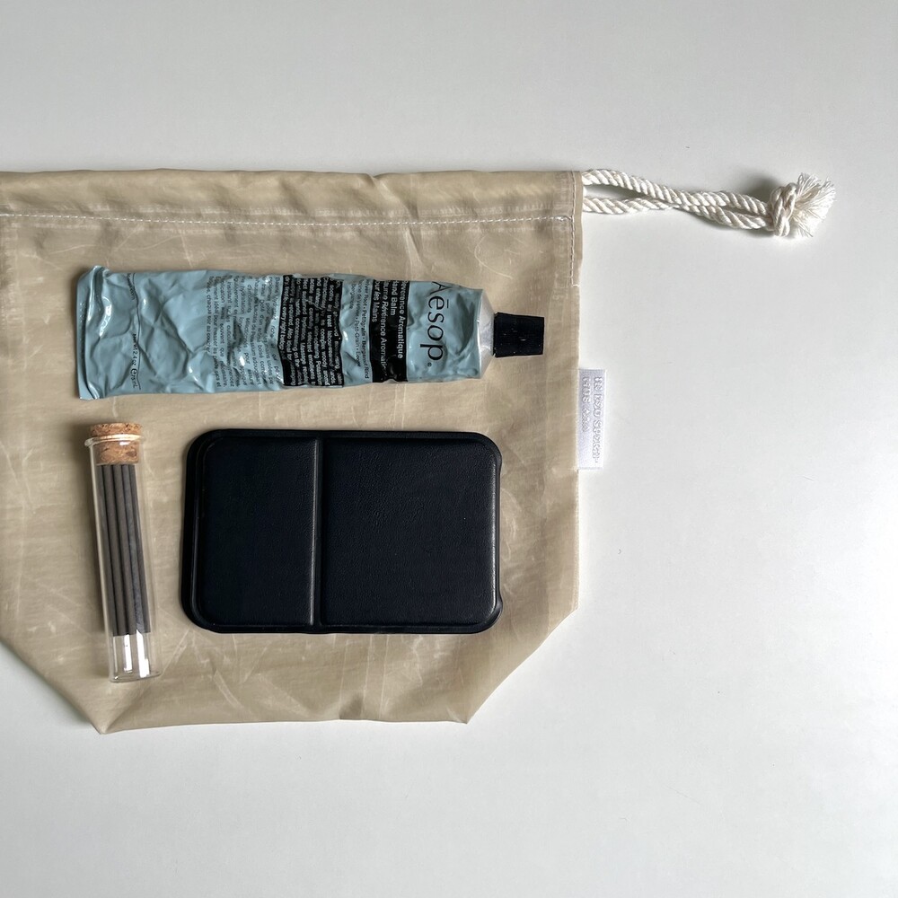 100% 리사이클 나일론 원단으로 제작된 파우치입니다.