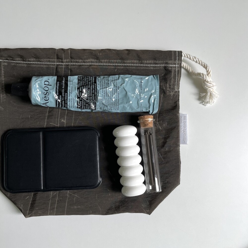 100% 리사이클 나일론 원단으로 제작된 파우치입니다.