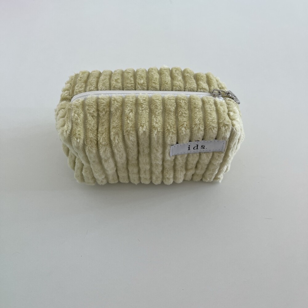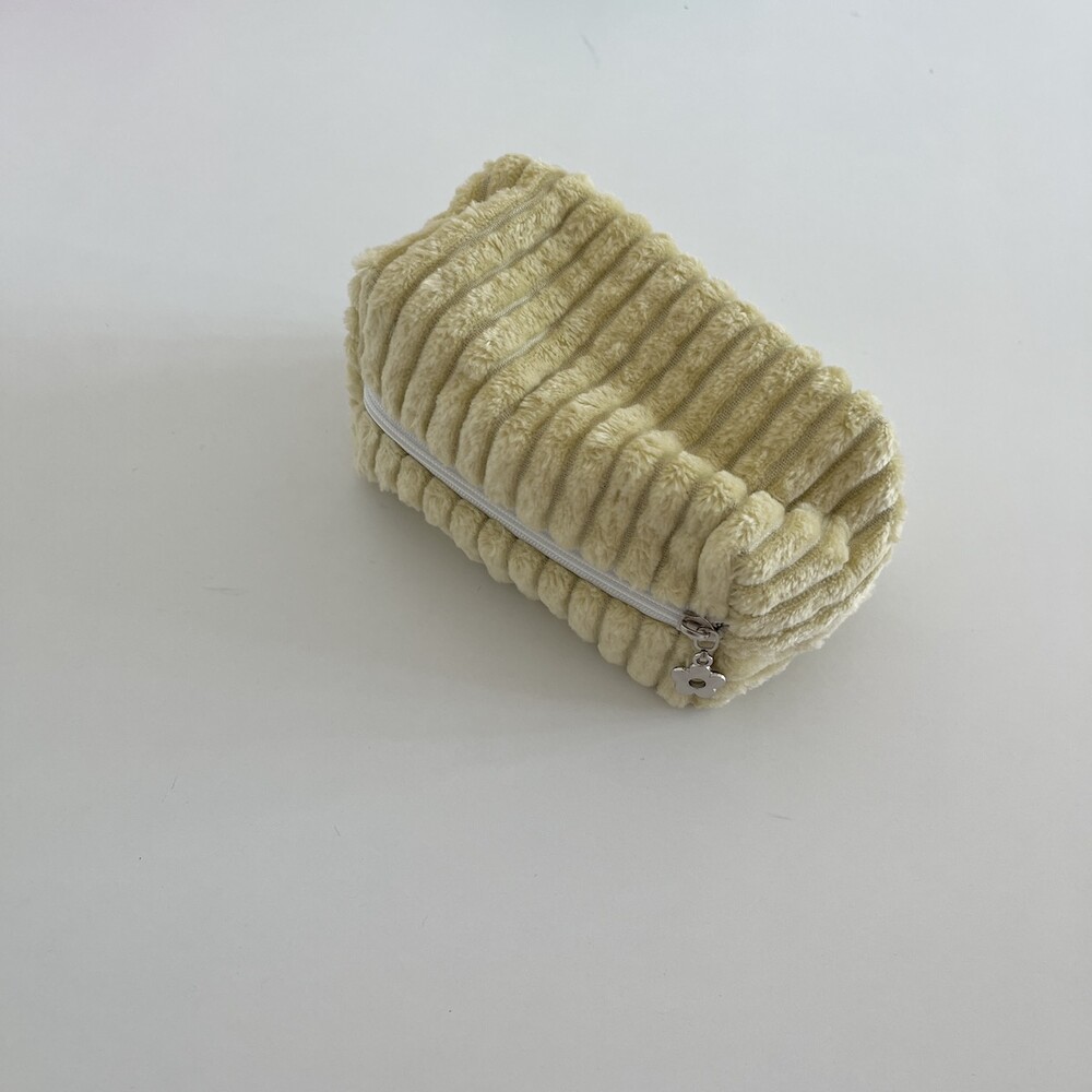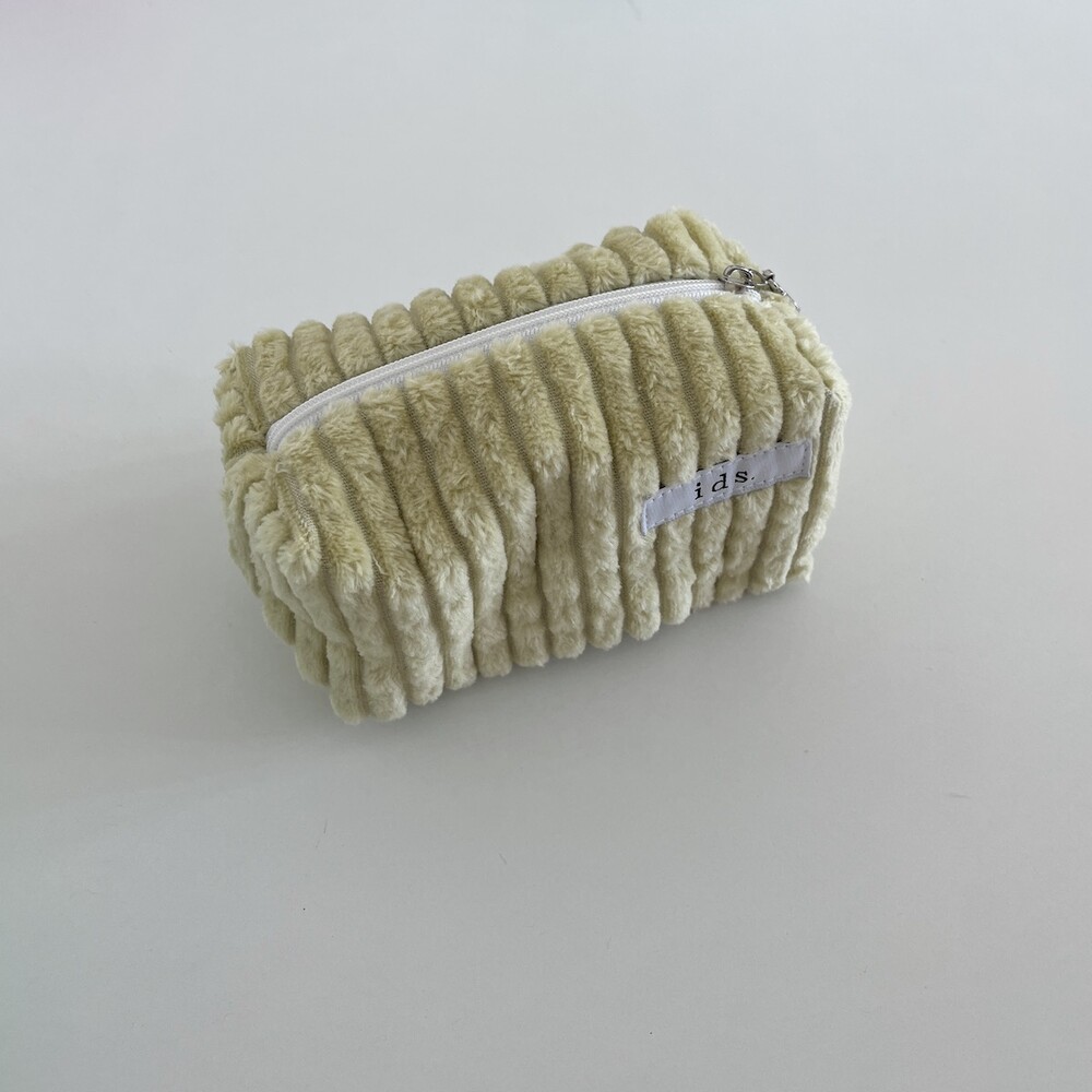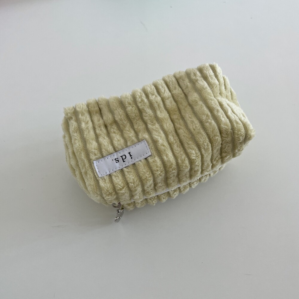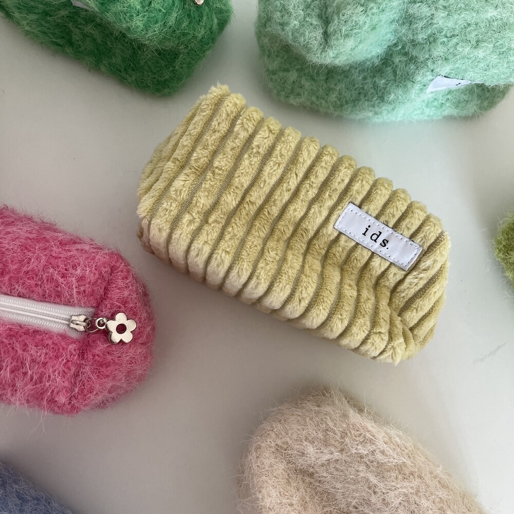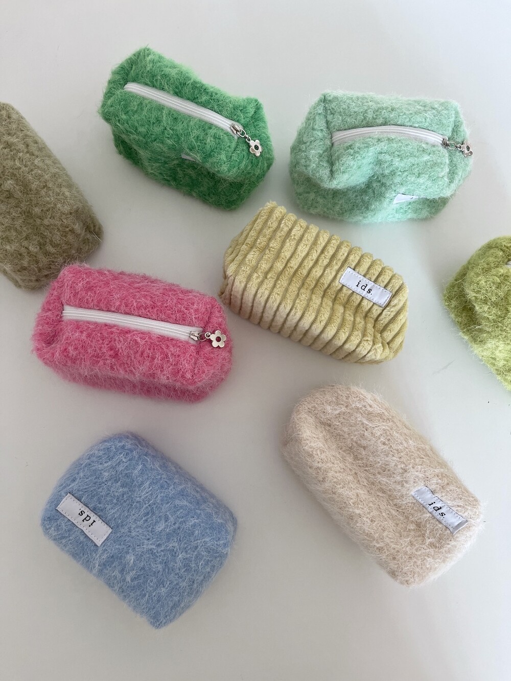 플러피한 원사감으로 포근한 느낌을 주는 네모 모양 파우치입니다.
