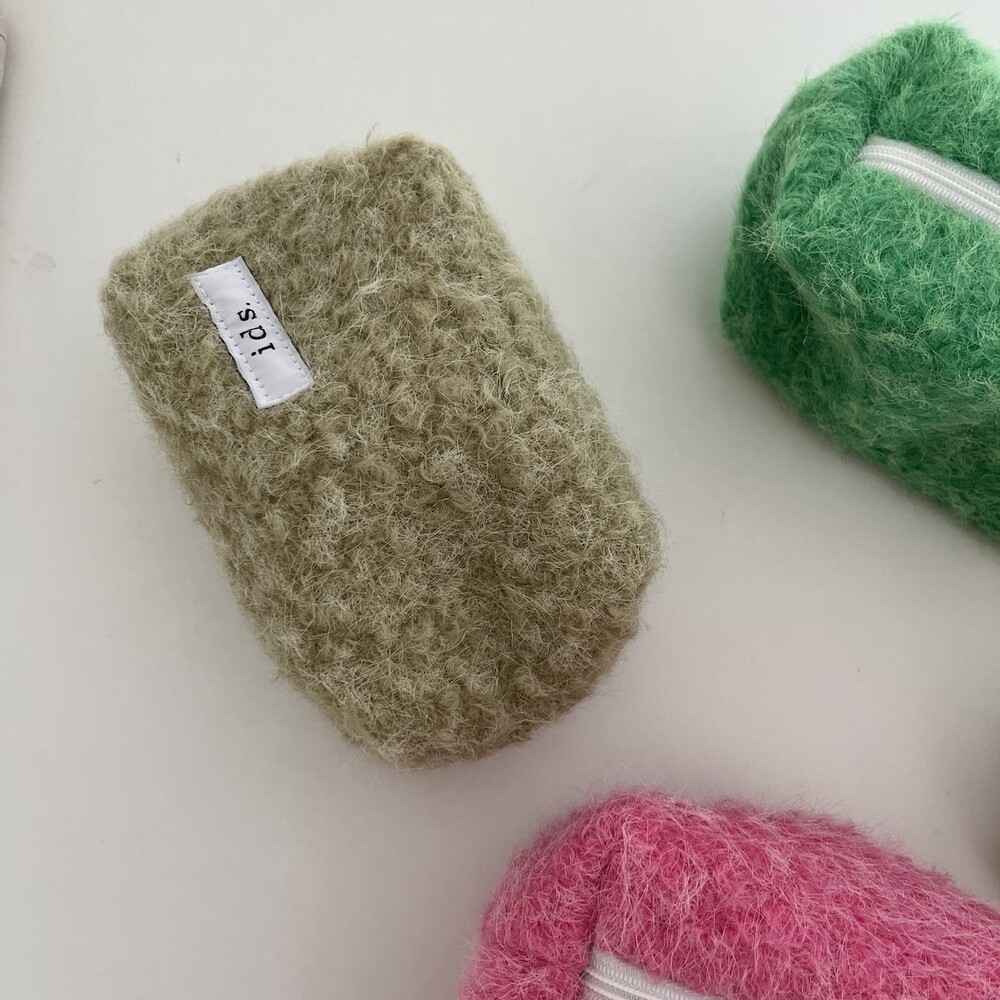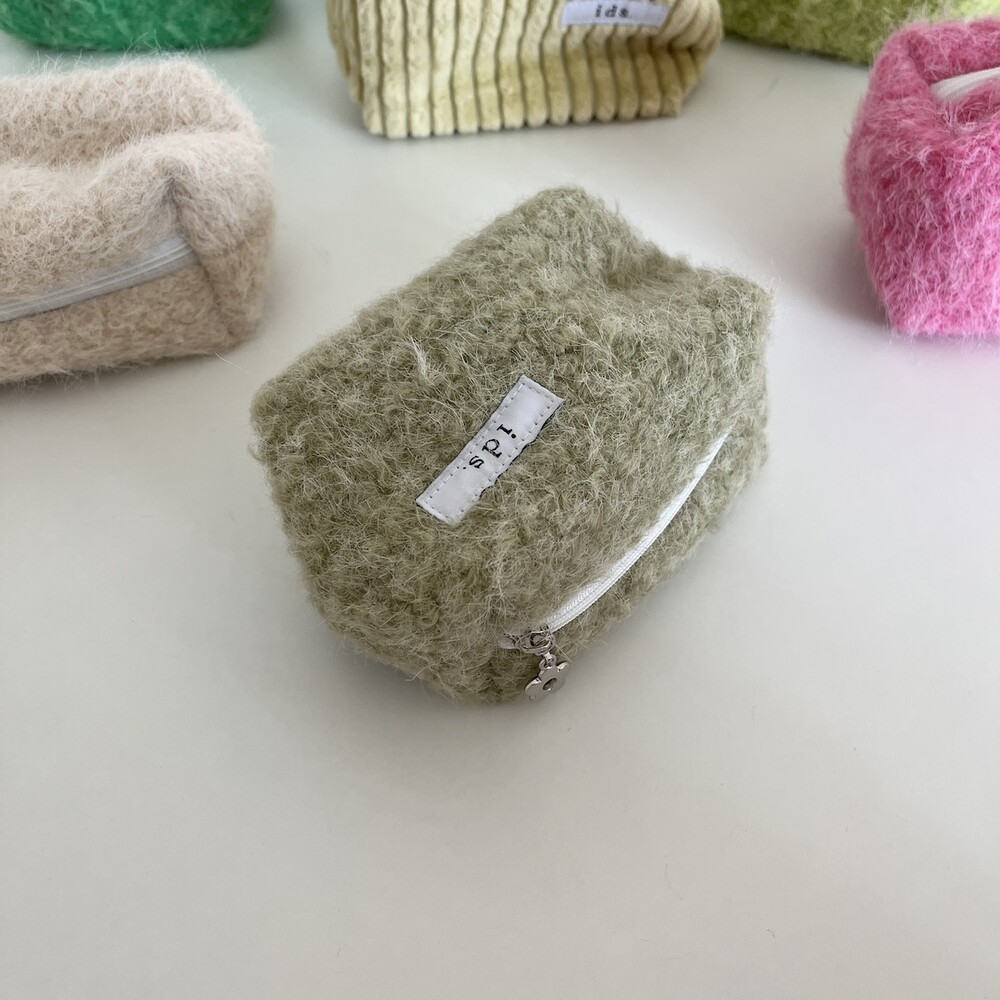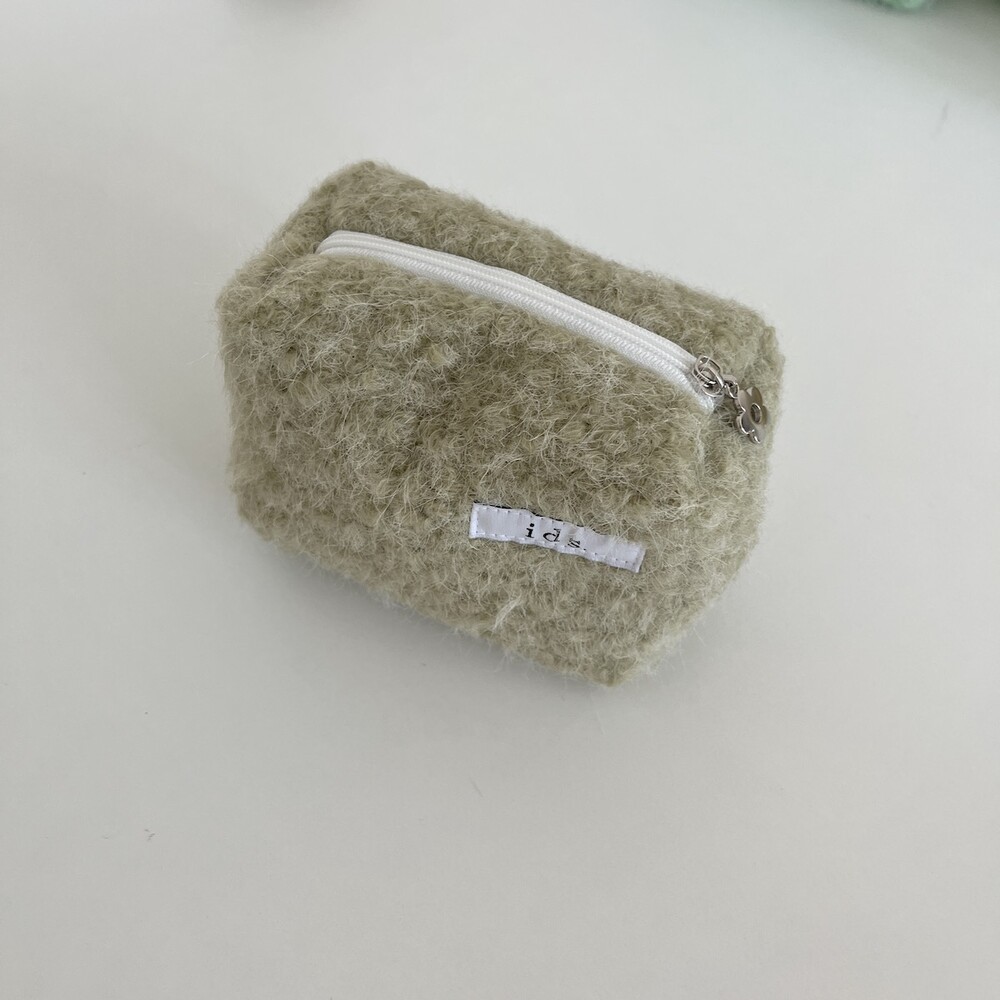 플러피한 원사감으로 포근한 느낌을 주는 네모 모양 파우치입니다.