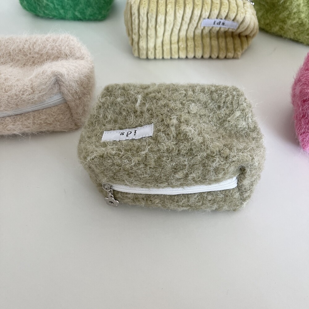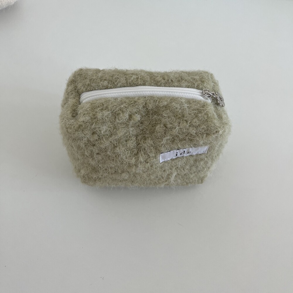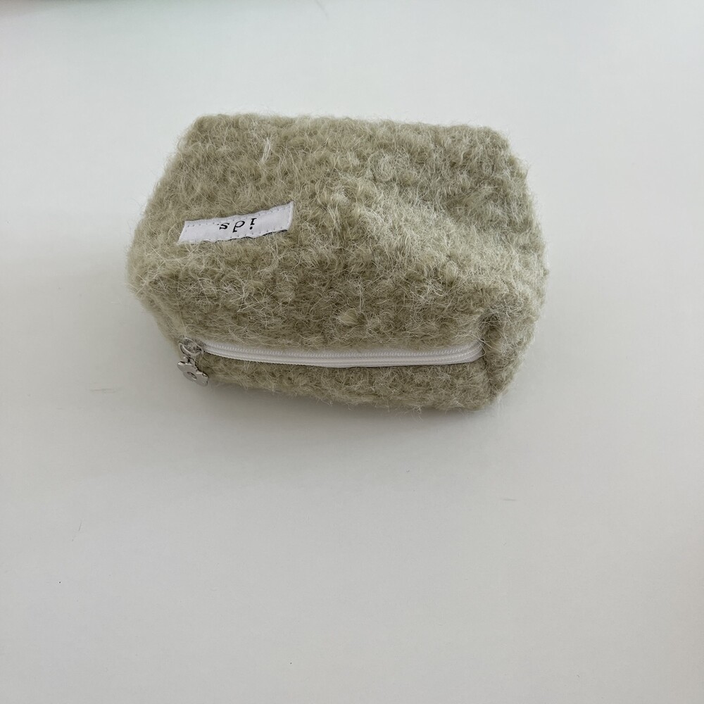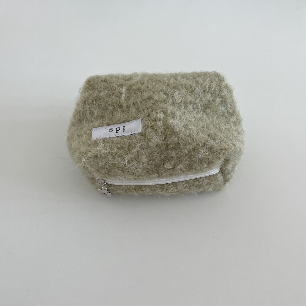 플러피한 원사감으로 포근한 느낌을 주는 네모 모양 파우치입니다.