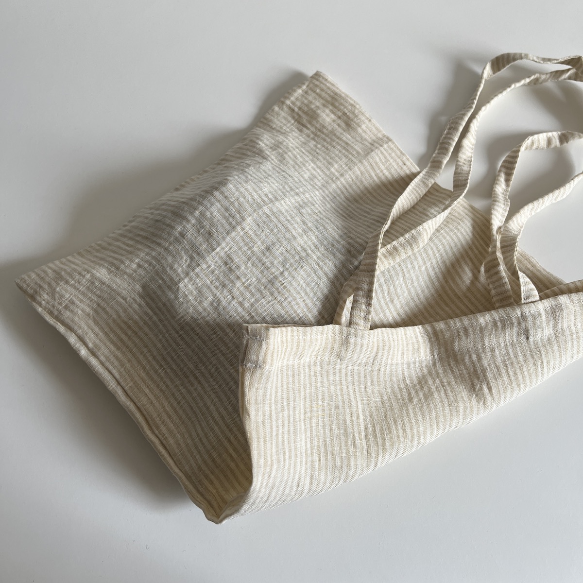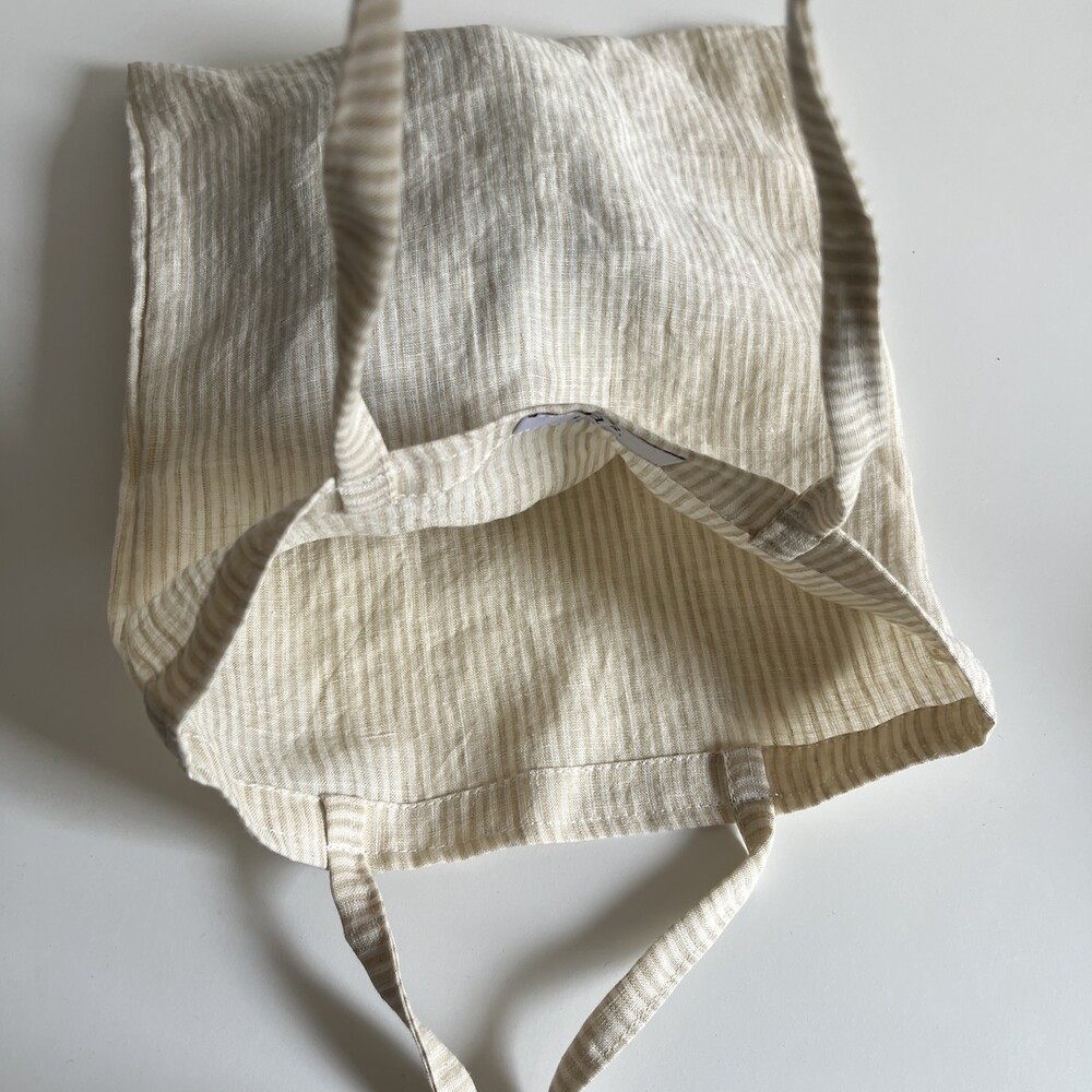 린넨 베이지 줄무늬 미니백