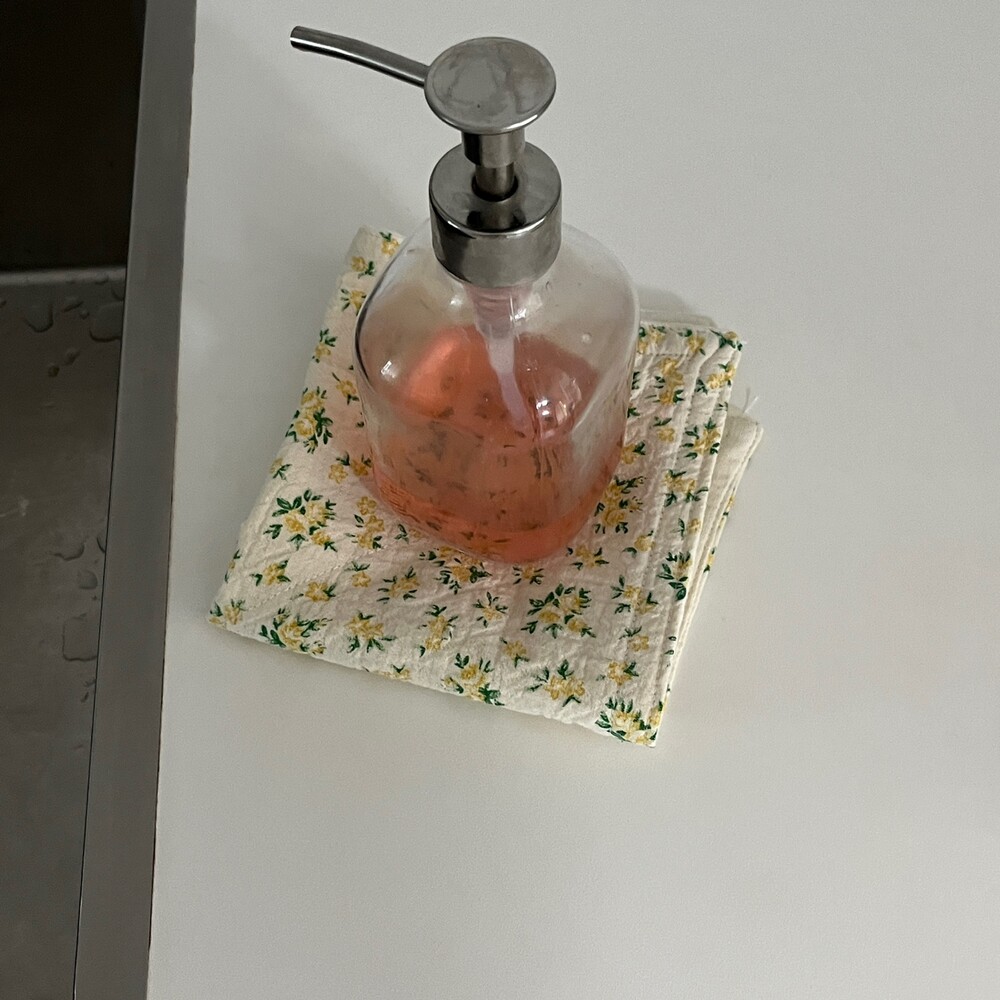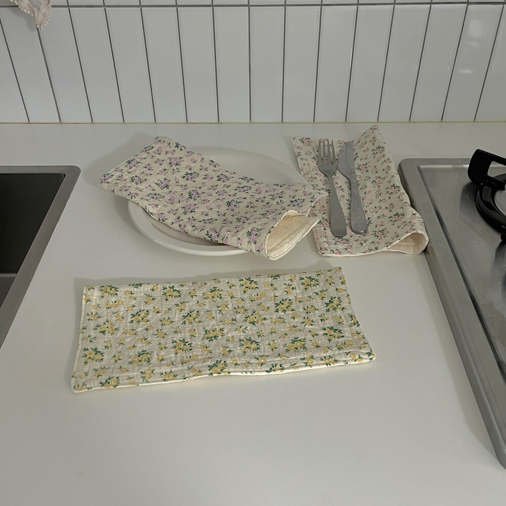 이중지 거즈를 덧대어 제작한 키친 크로스입니다.