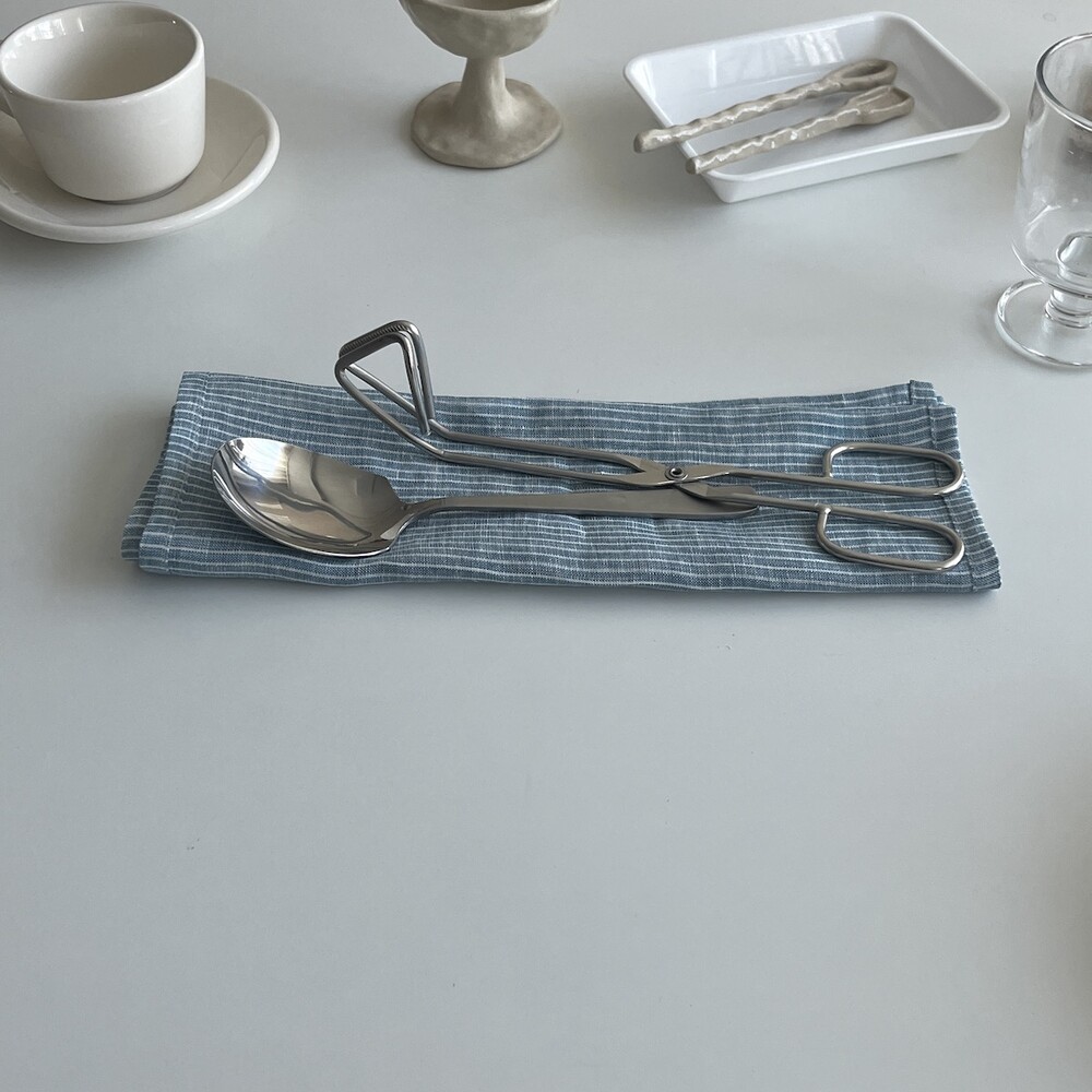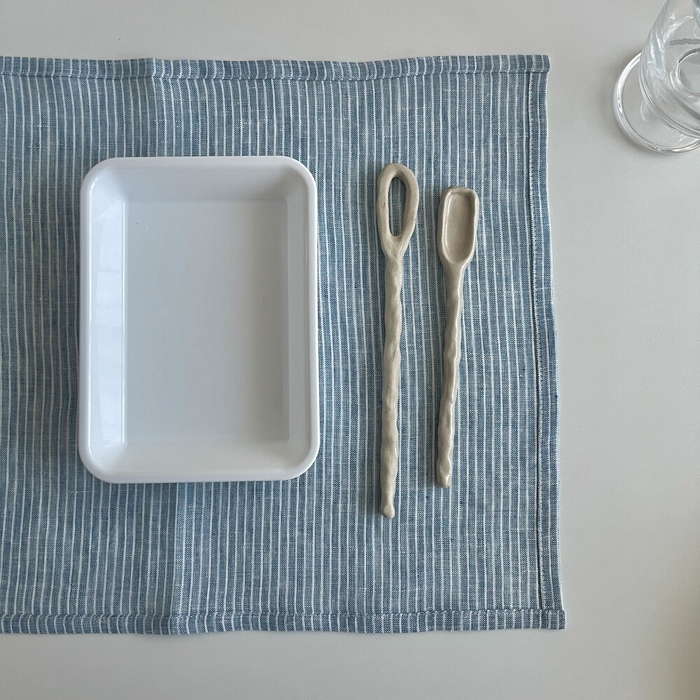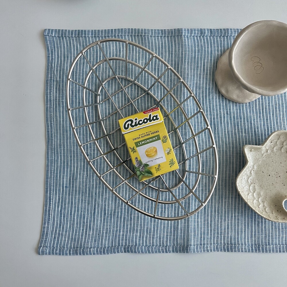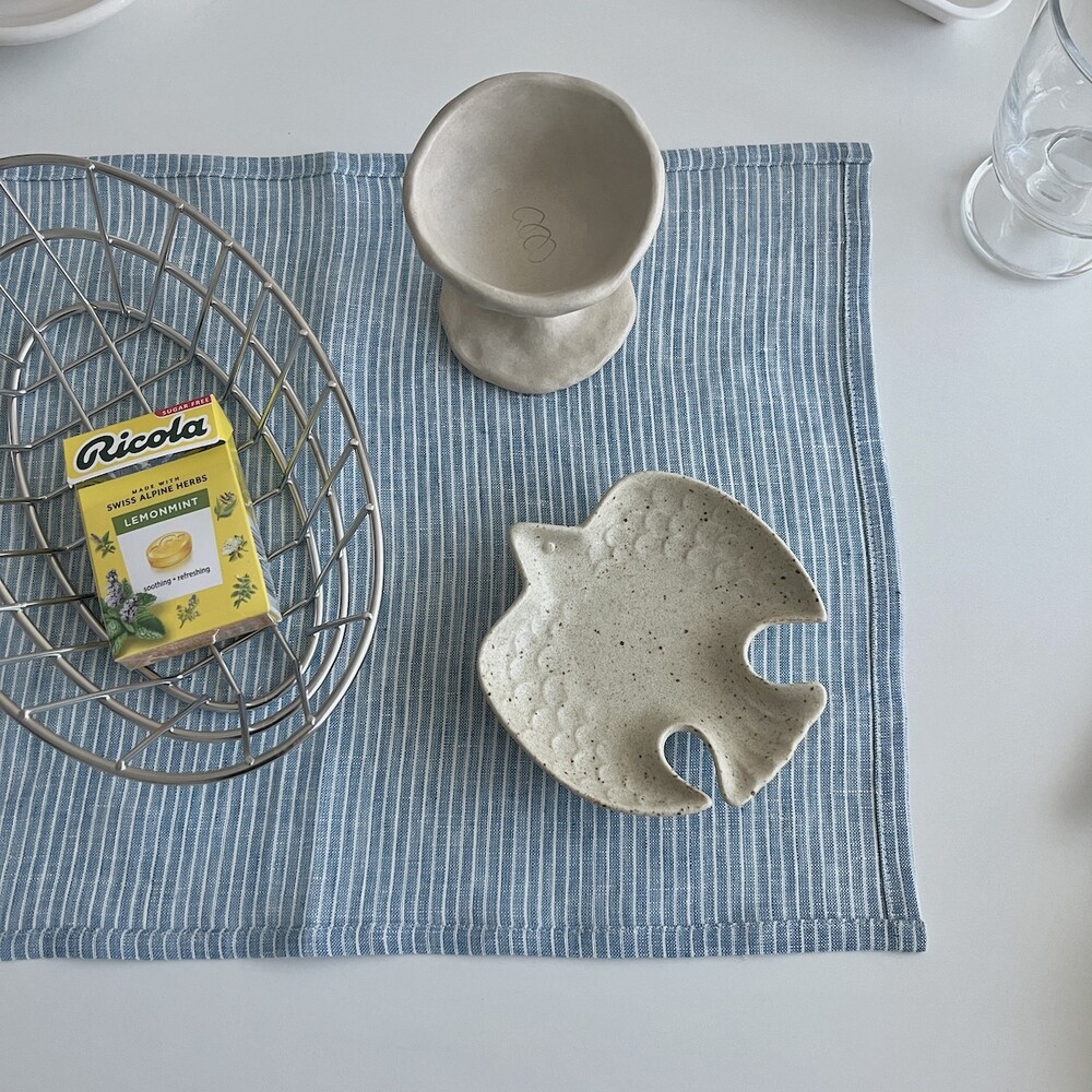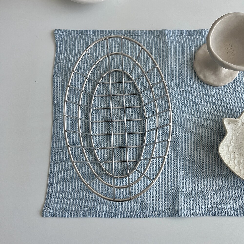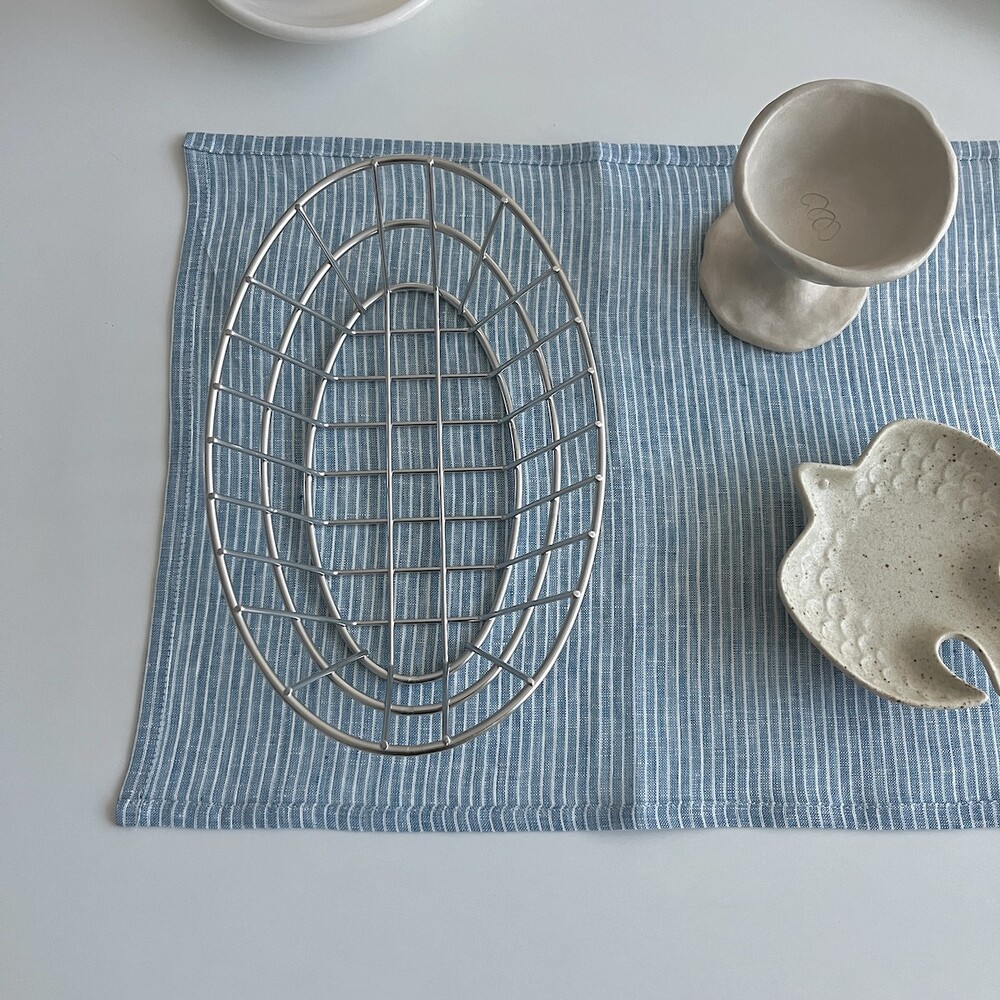 린넨 앤티크 블루 줄무늬 매트