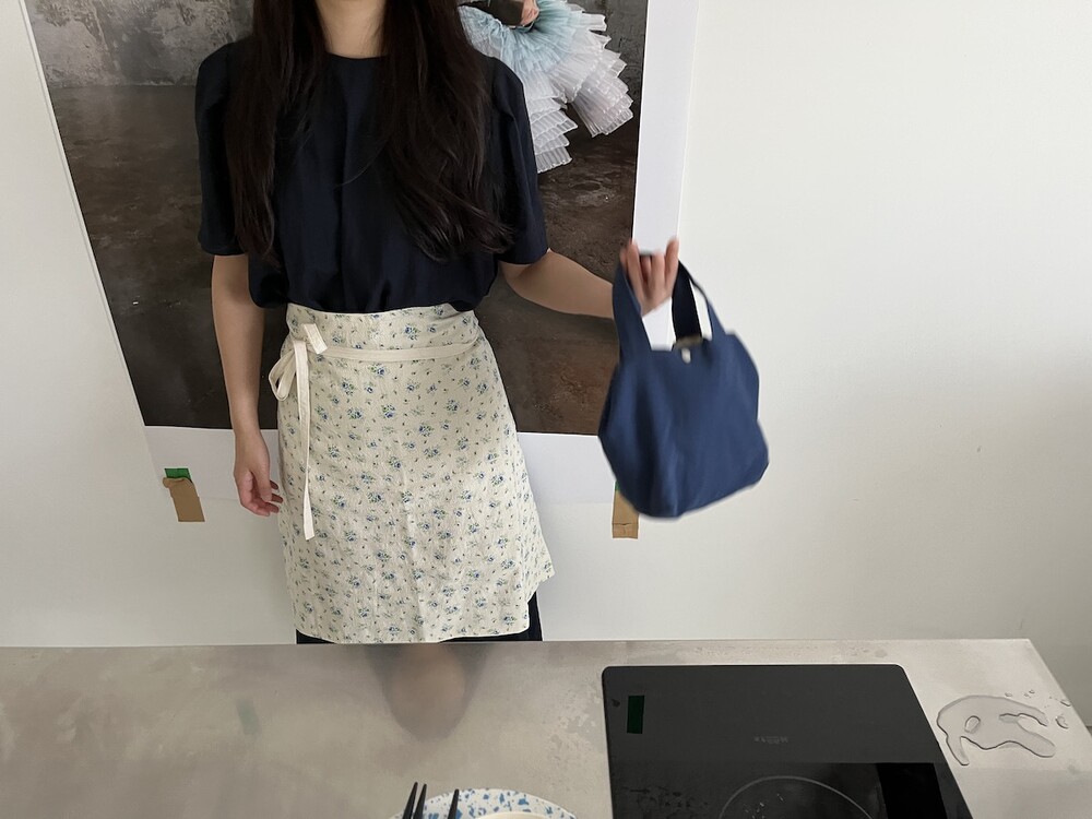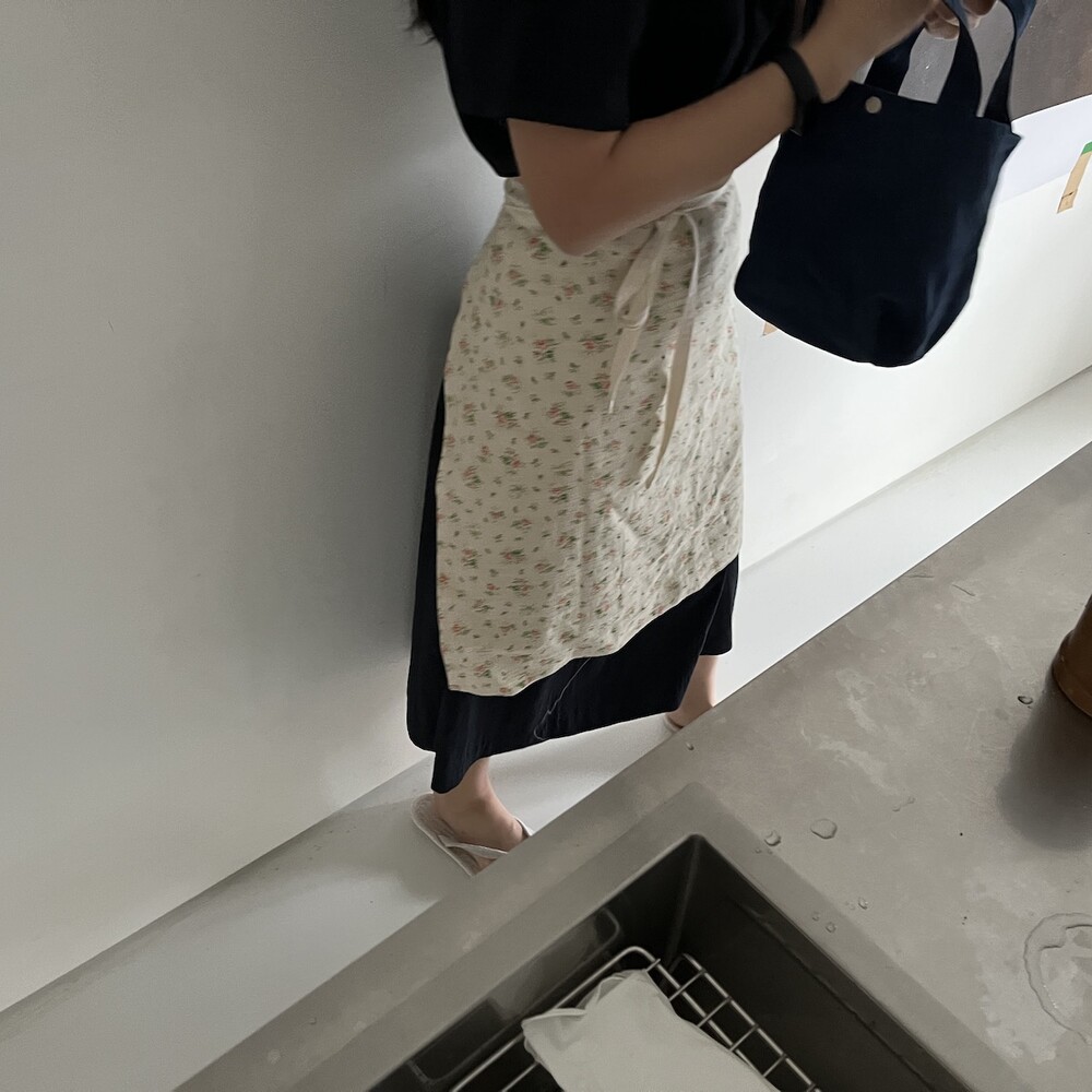 양 끝에 똑딱이 고리를 걸어 앞치마로 사용할 수 있는 멀티 매트입니다.