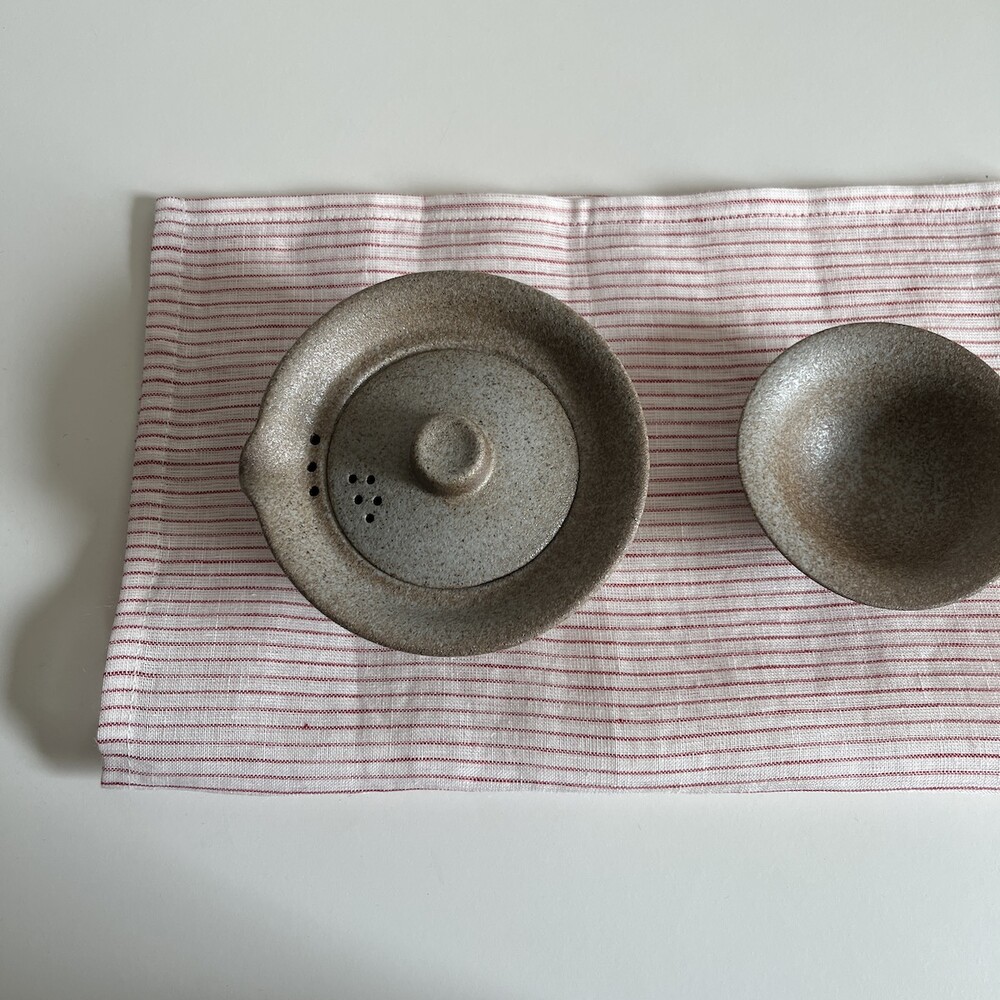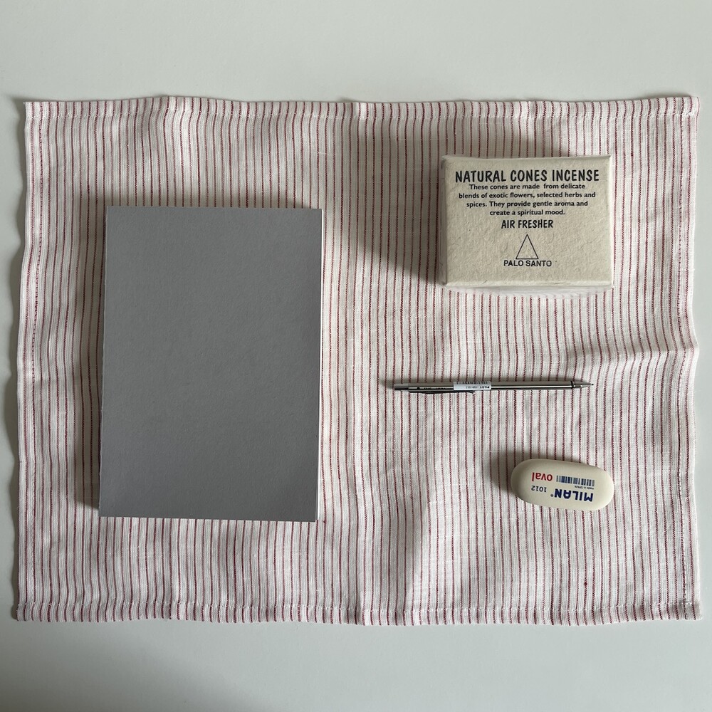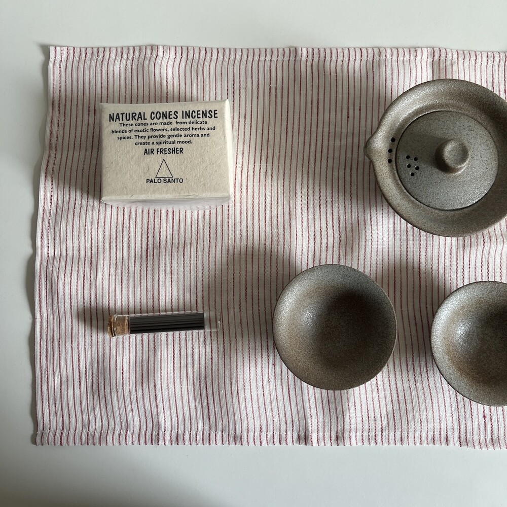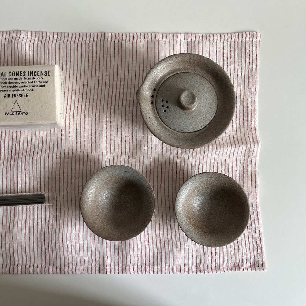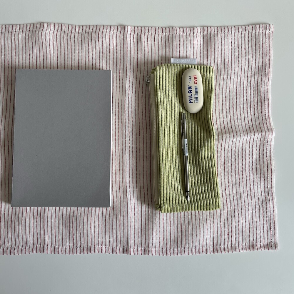 린넨 레드 잔줄무늬 매트