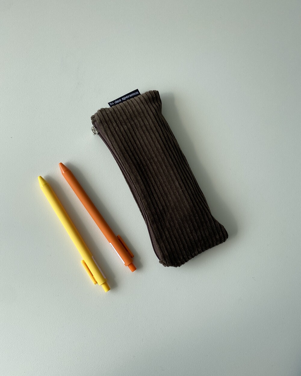 유니크한 색상의 코듀로이 필통입니다.