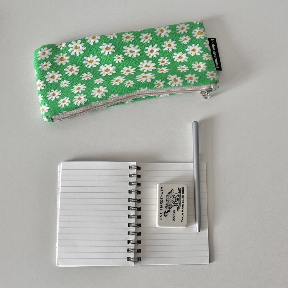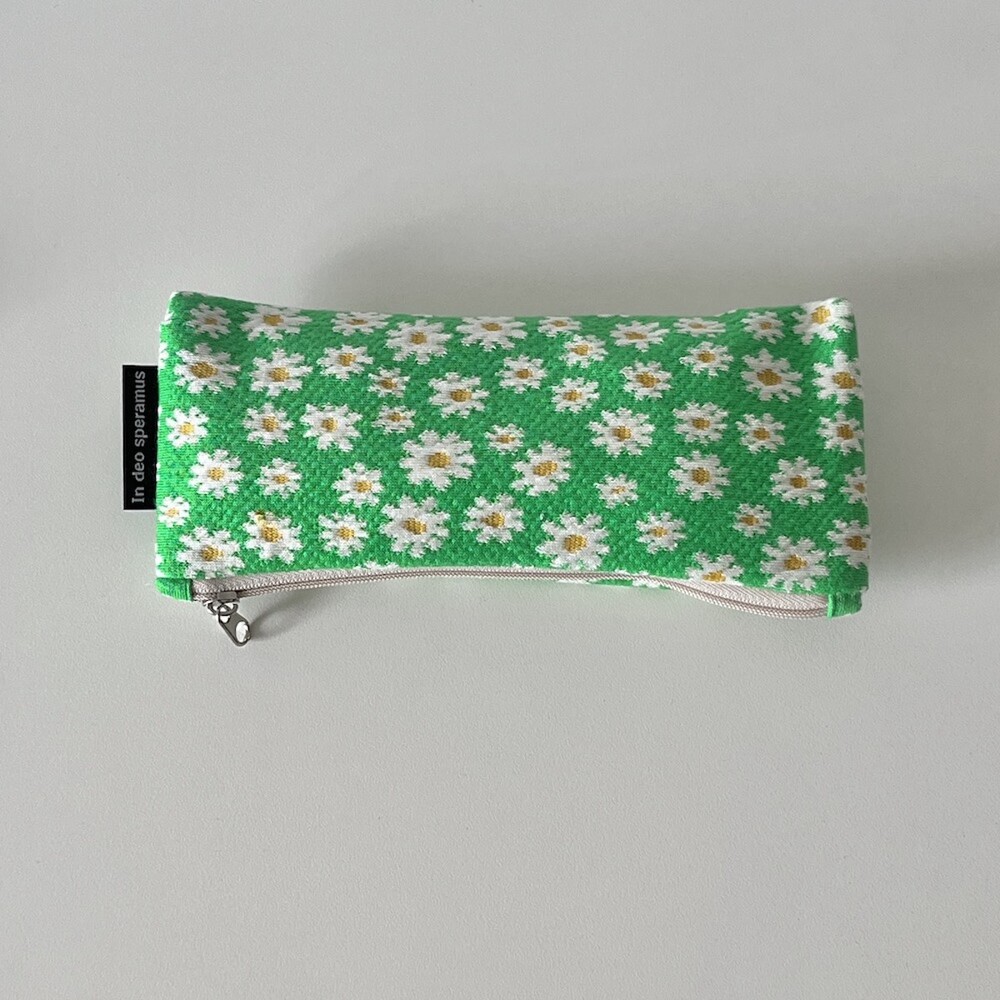 자가드 원단의 포인트가되는 패턴과 심플한 지퍼형 디자인이 매력적인 필통입니다.