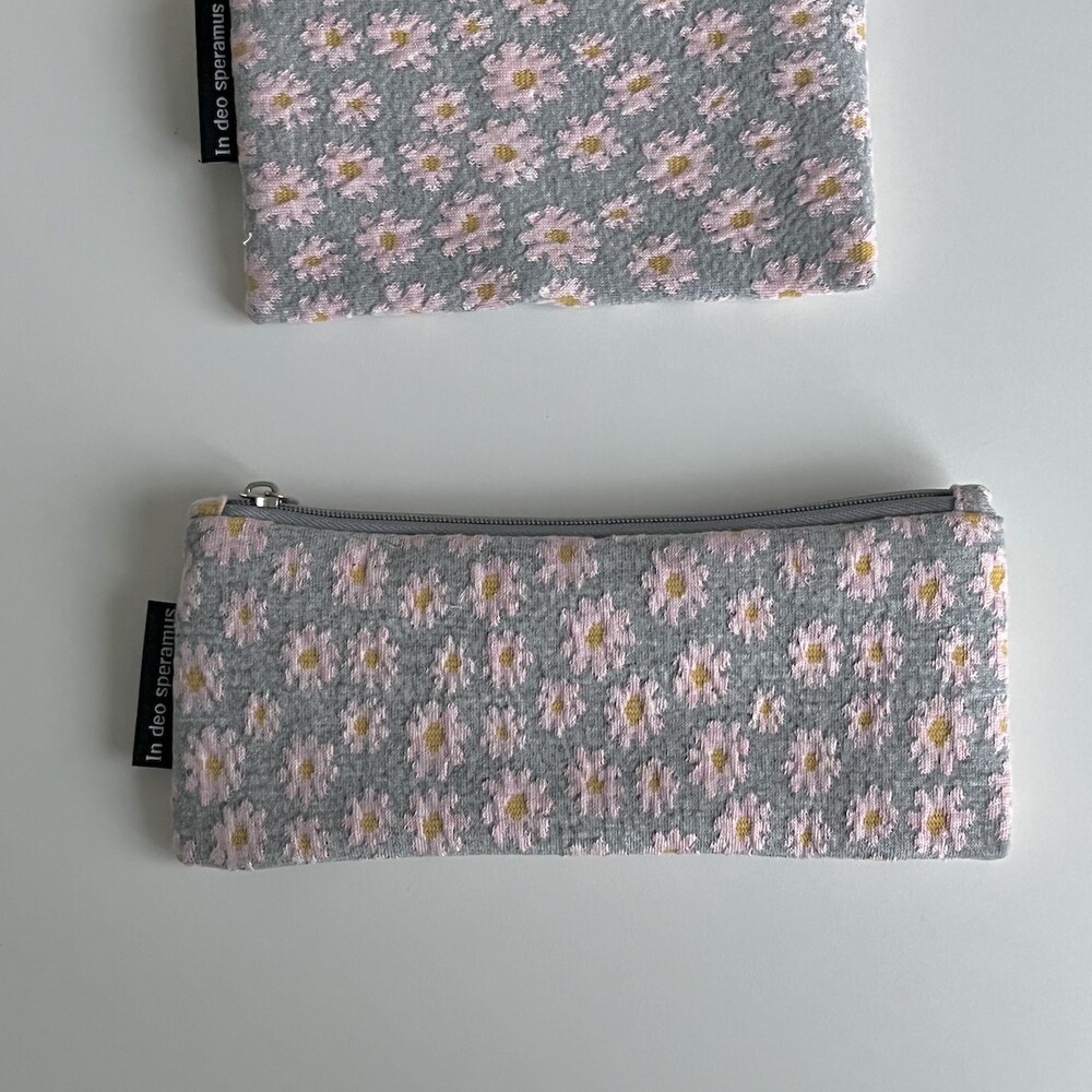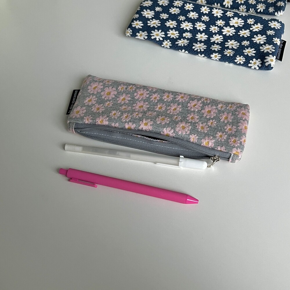 자가드 원단의 포인트가되는 패턴과 심플한 지퍼형 디자인이 매력적인 필통입니다.