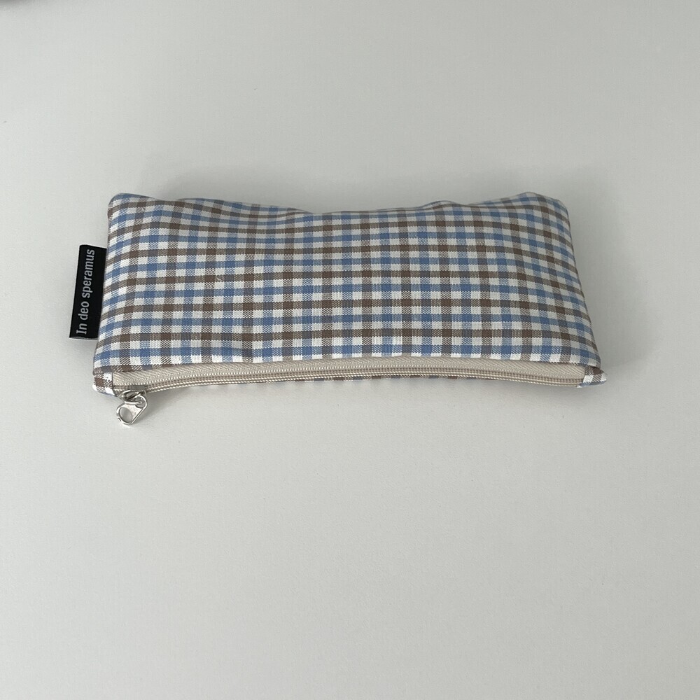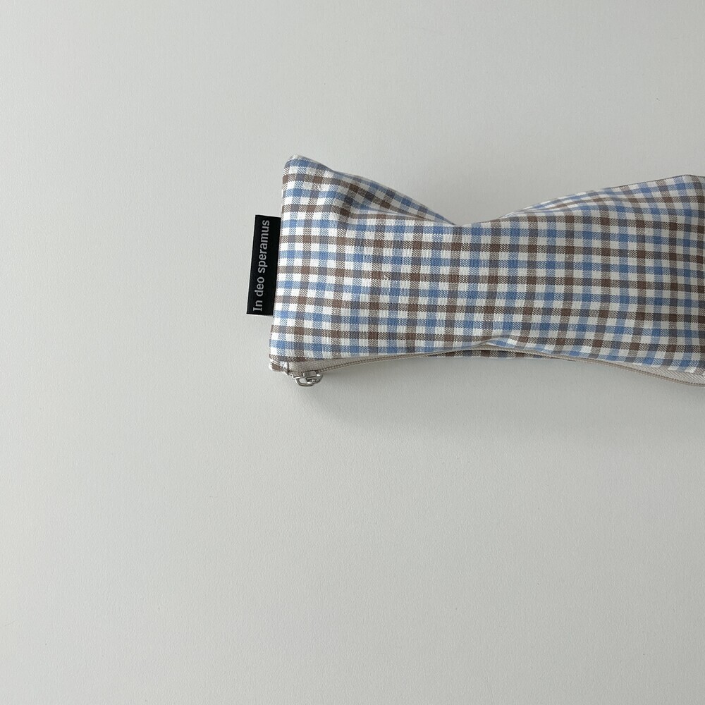 체크 블루브라운 필통