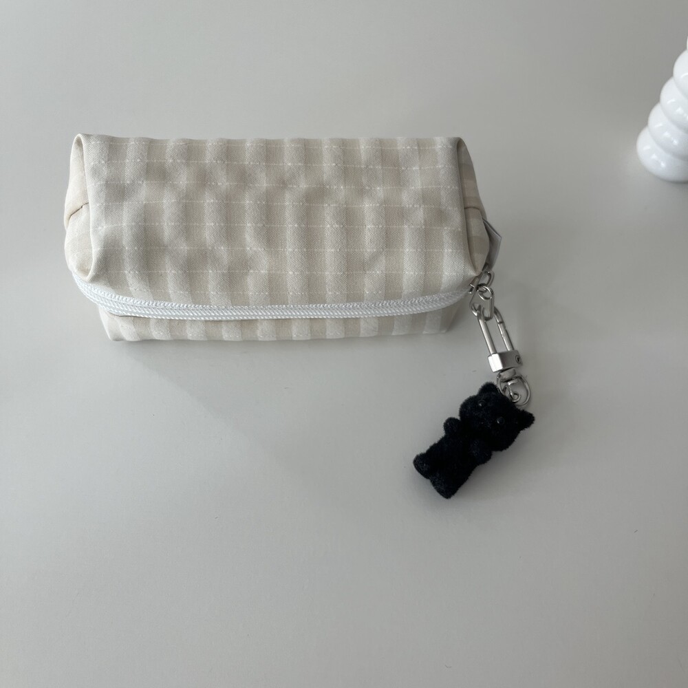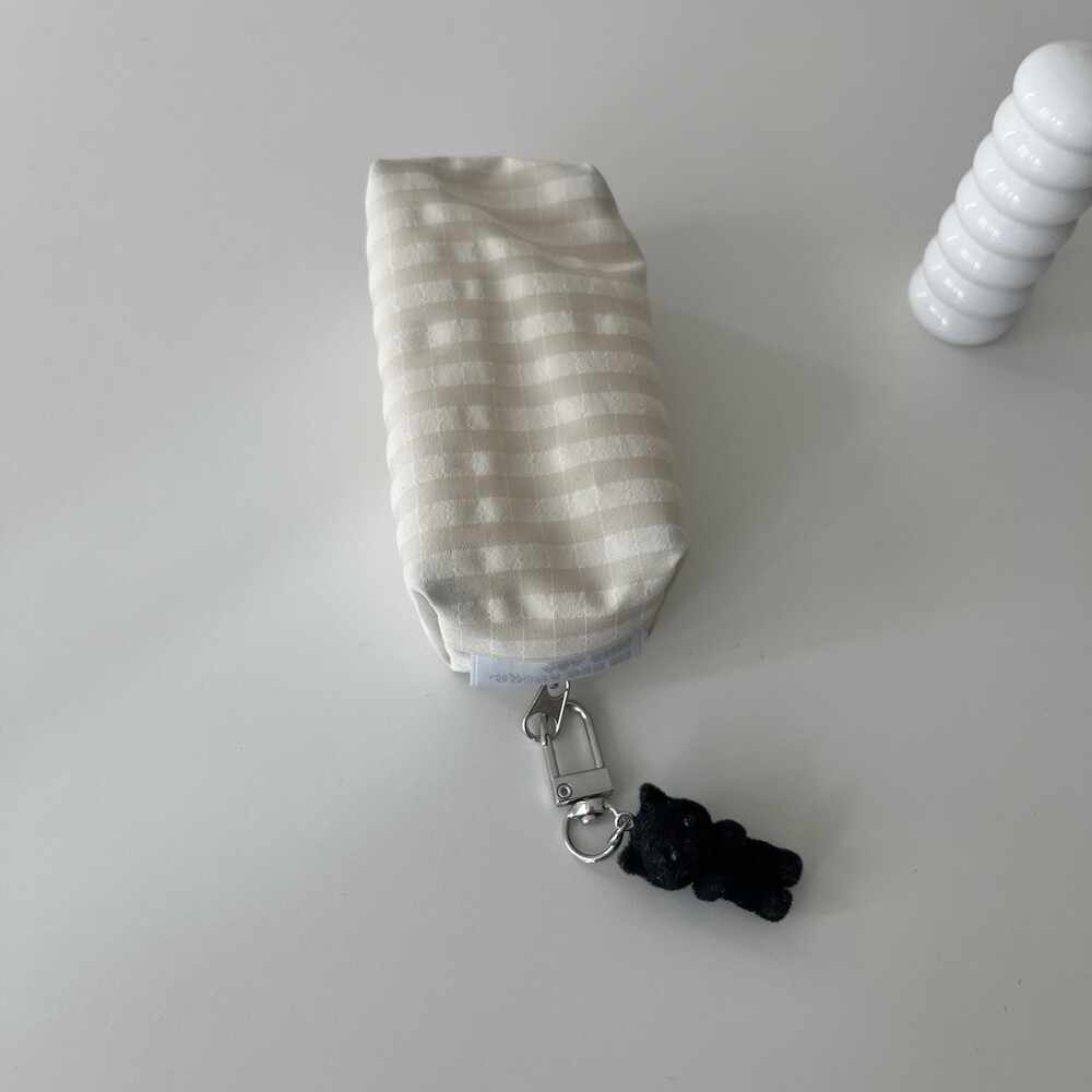 체크 아이보리 열매 파우치