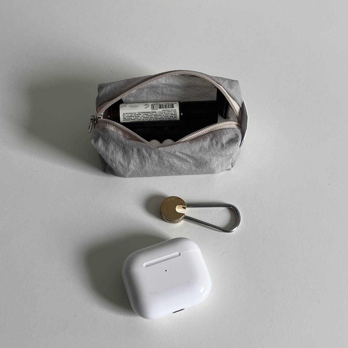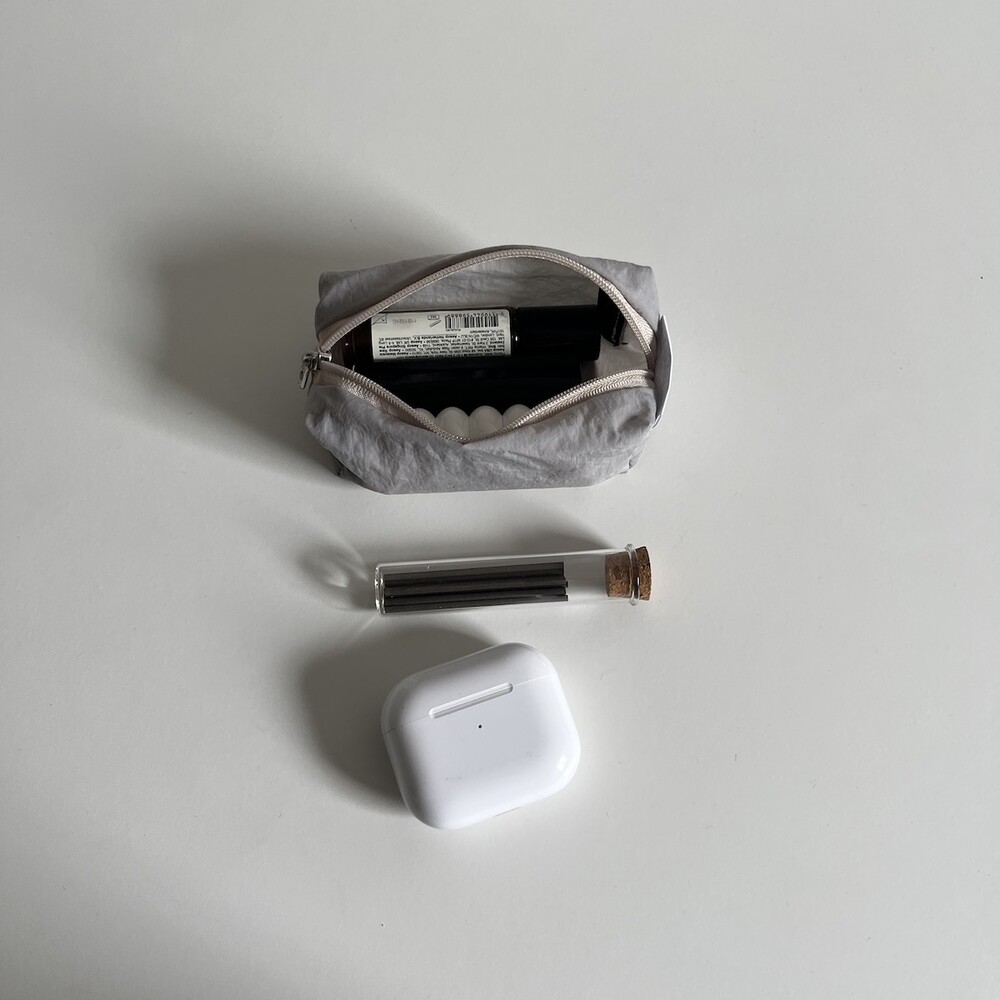 립밤, 에어팟, 열쇠 등 작은 소지품을 보관하기 좋은 가볍게 들고 다니기 좋은 데일리 미니 파우치입니다.