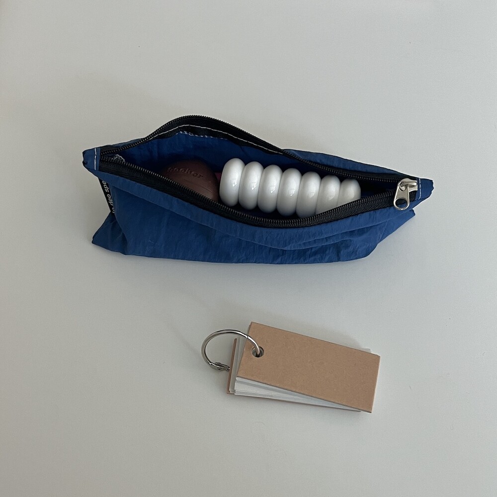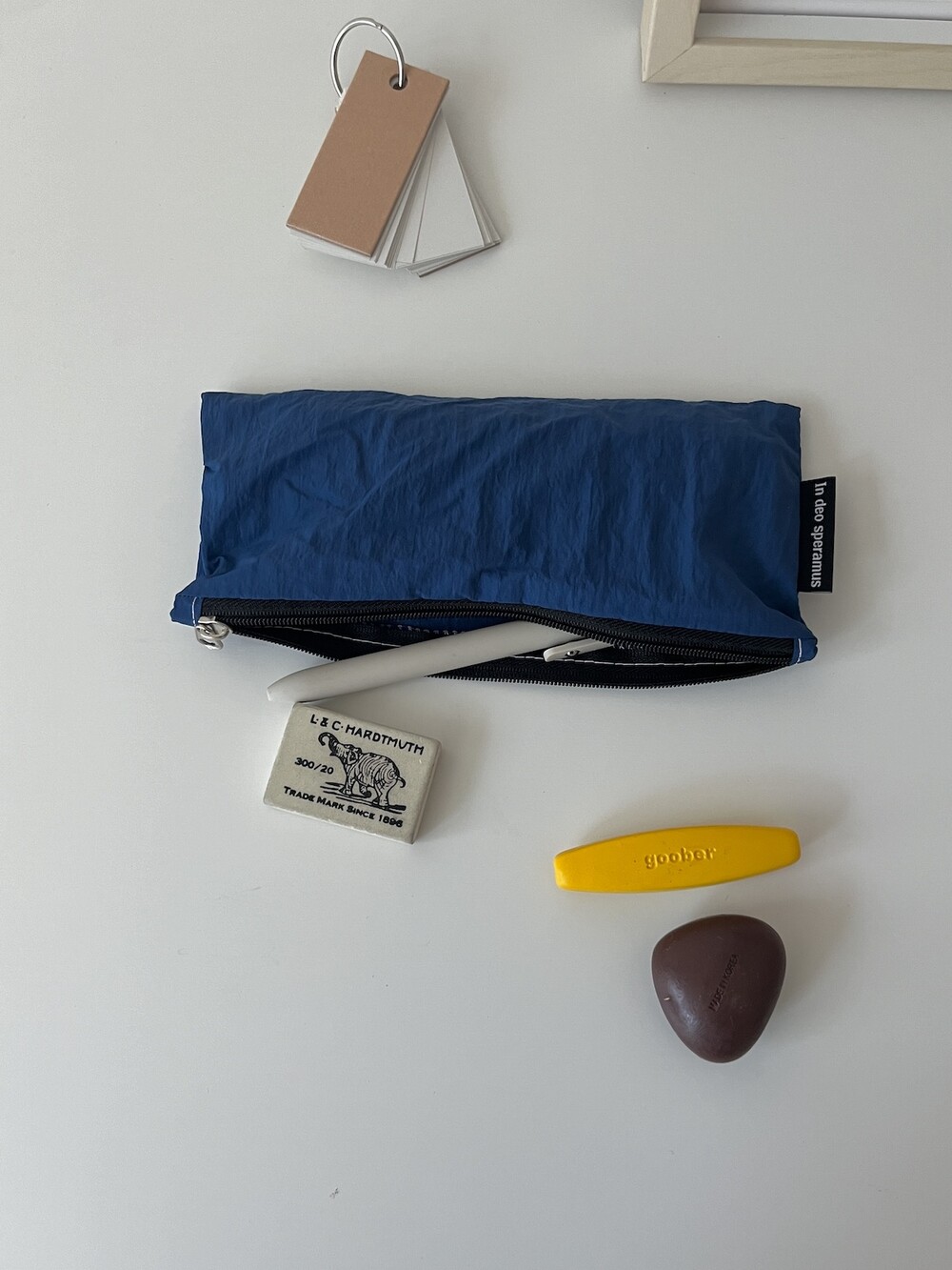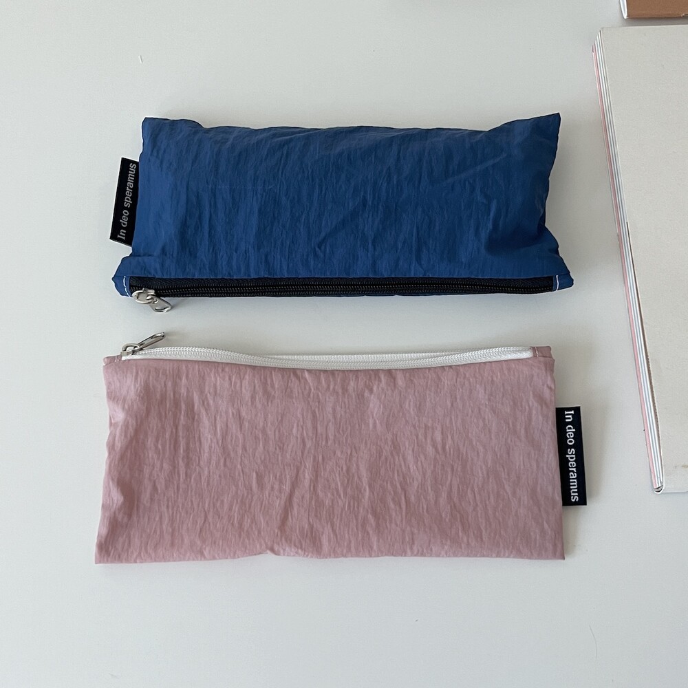 시원한 촉감의 바람막이 소재의 필통입니다.