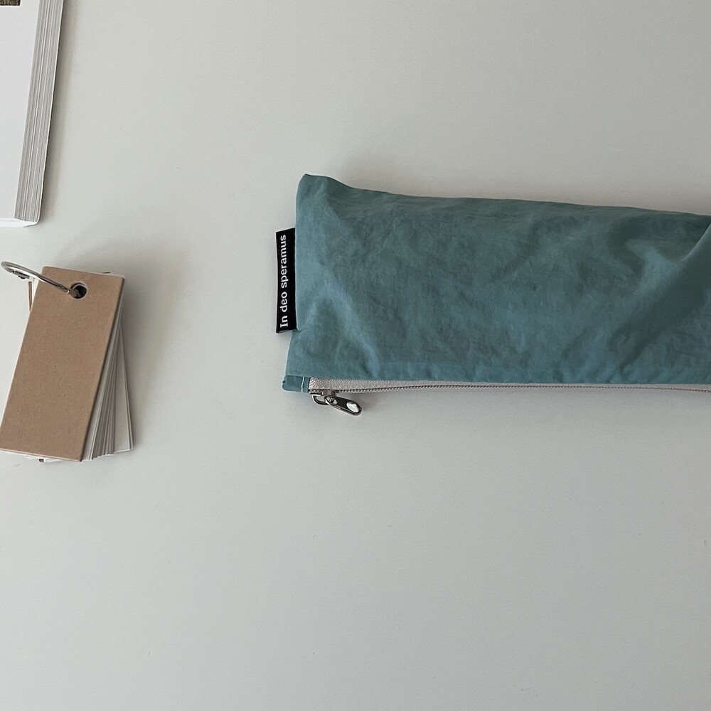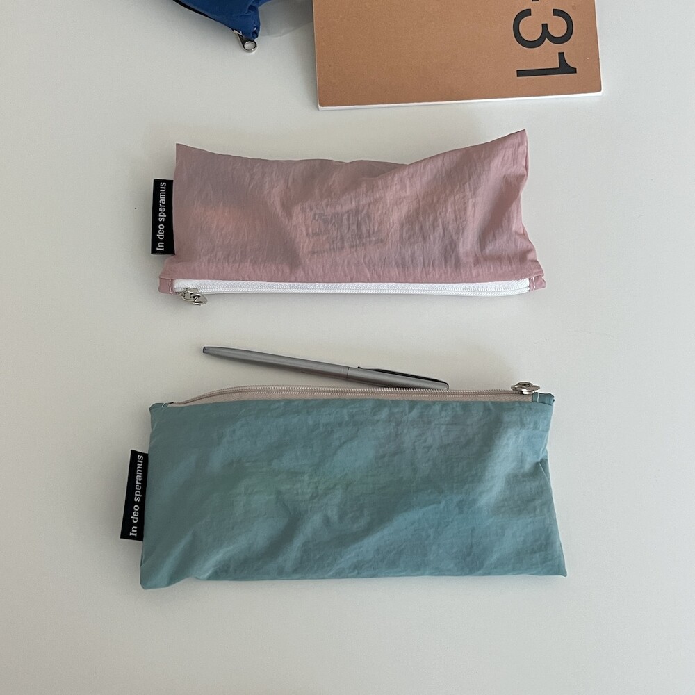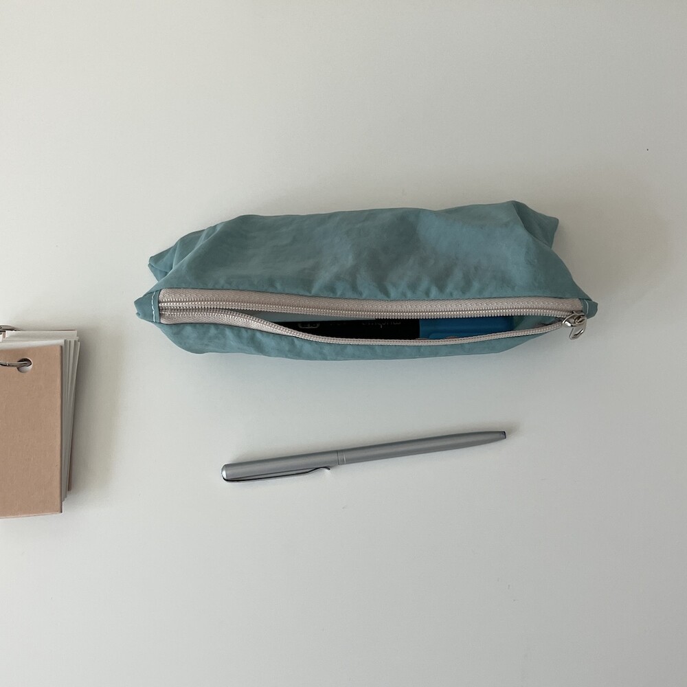 시원한 촉감의 바람막이 소재의 필통입니다.