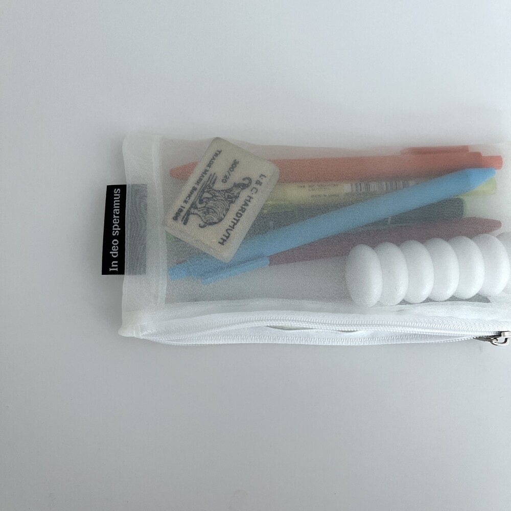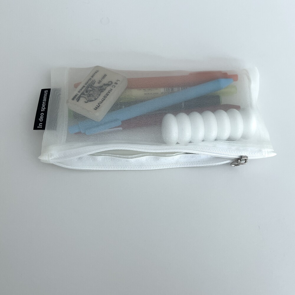 은은하게 빤짝임과 안이 비치는 원단이 포인트인 필통입니다.
