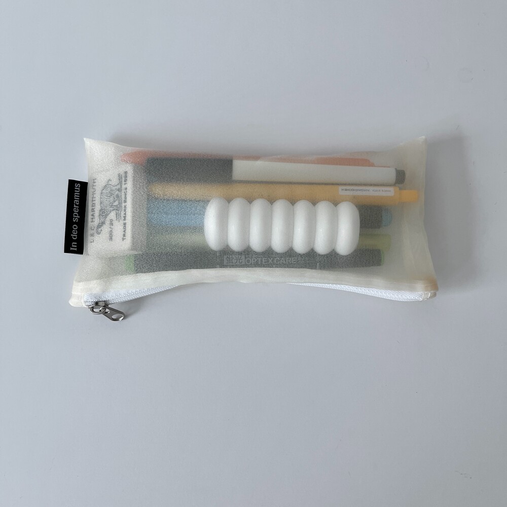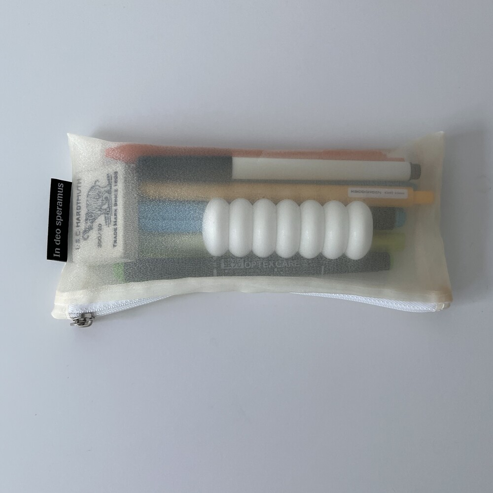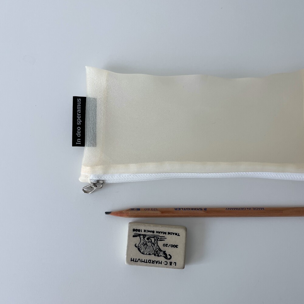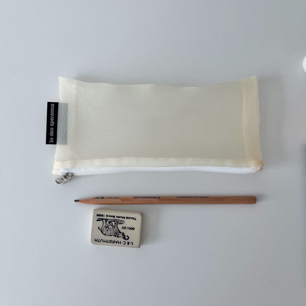 은은하게 빤짝임과 안이 비치는 원단이 포인트인 필통입니다.