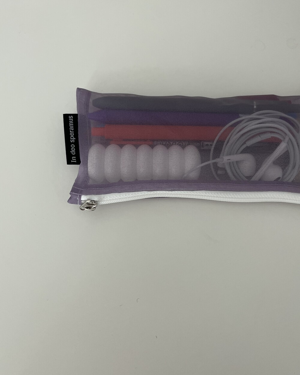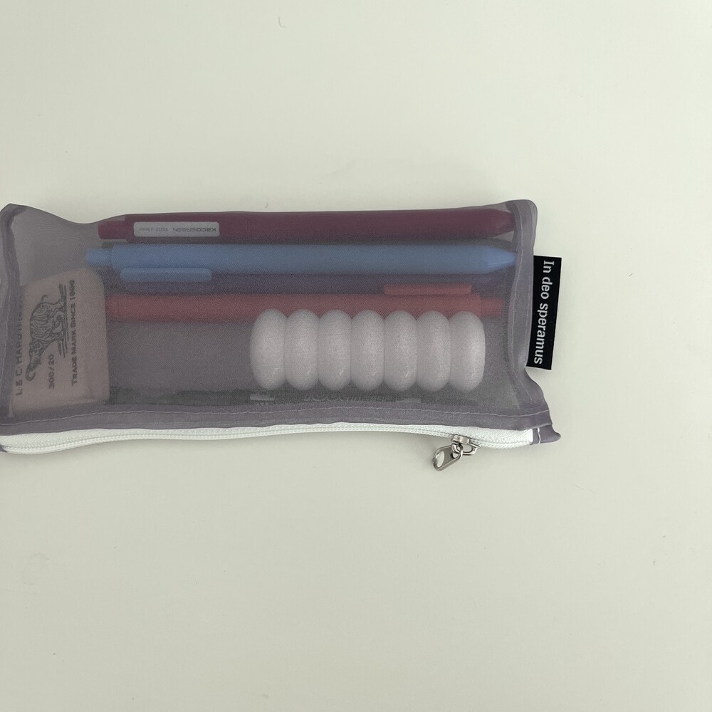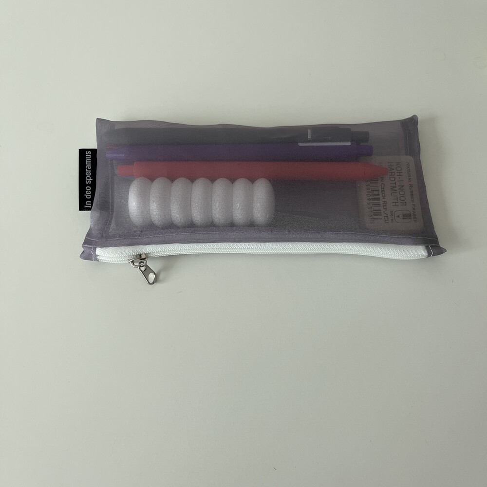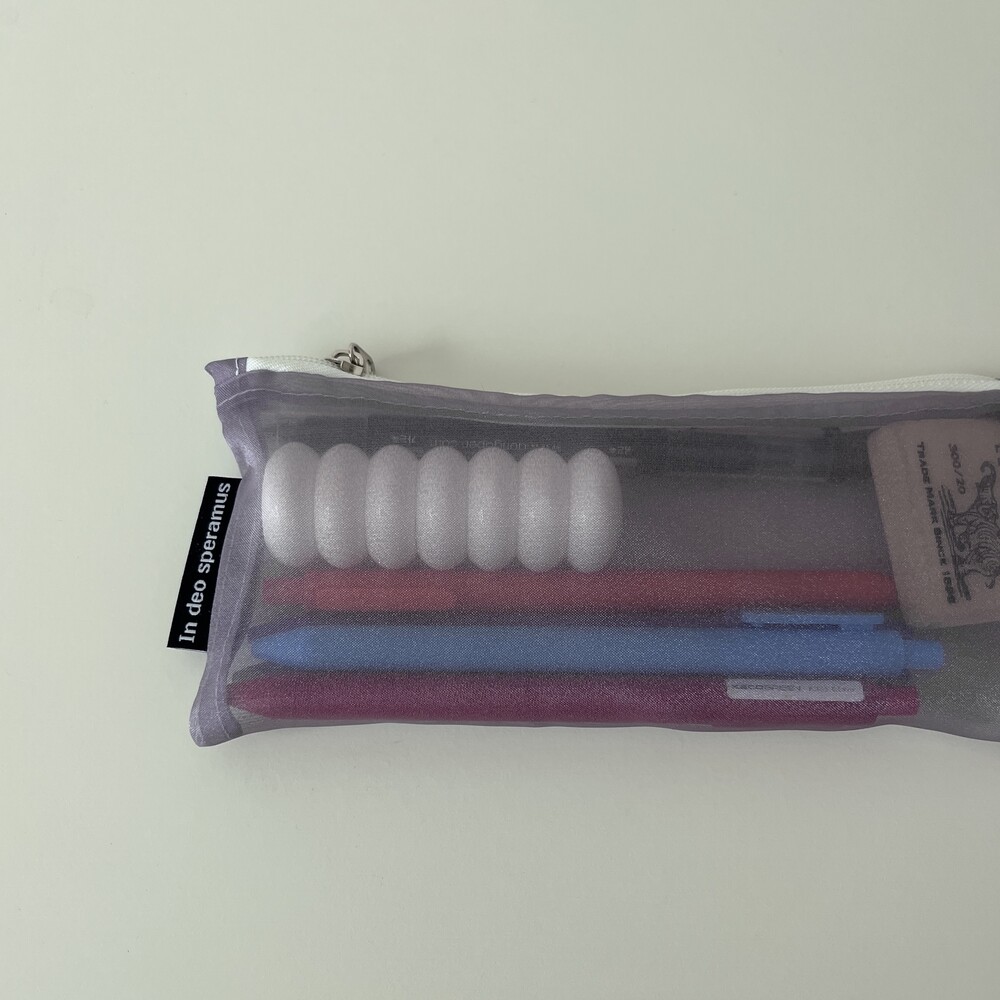 은은하게 빤짝임과 안이 비치는 원단이 포인트인 필통입니다.