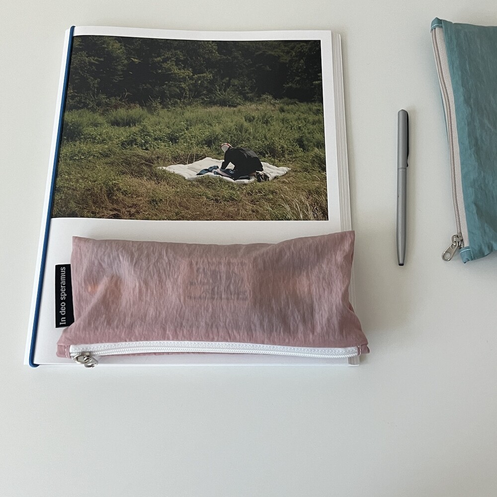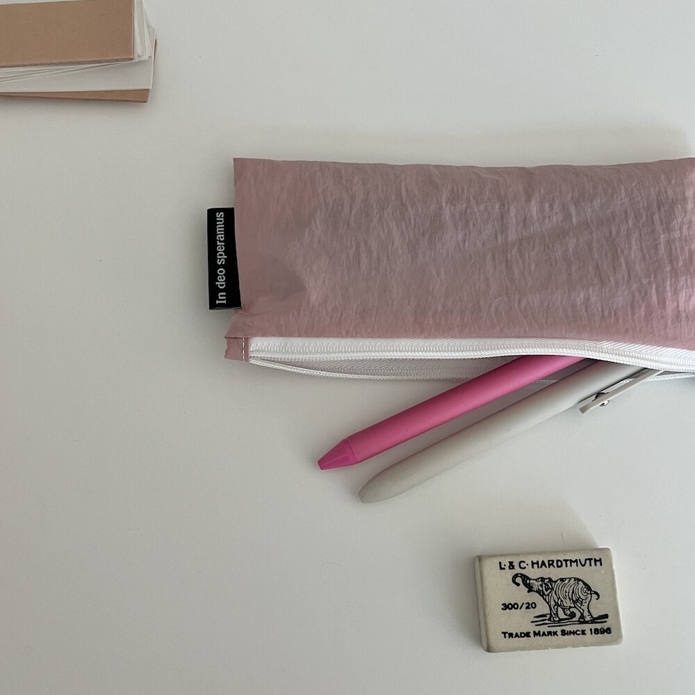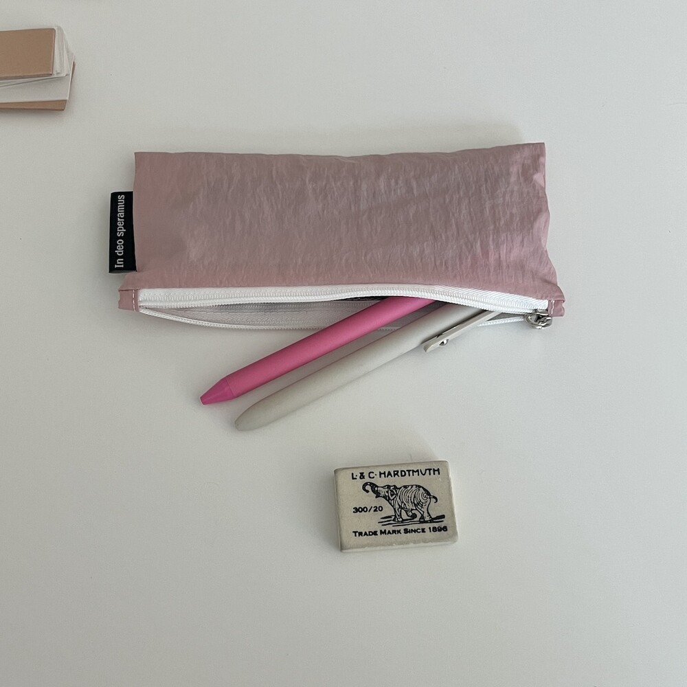 시원한 촉감의 바람막이 소재의 필통입니다.