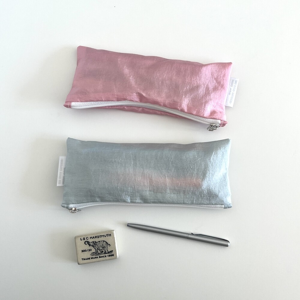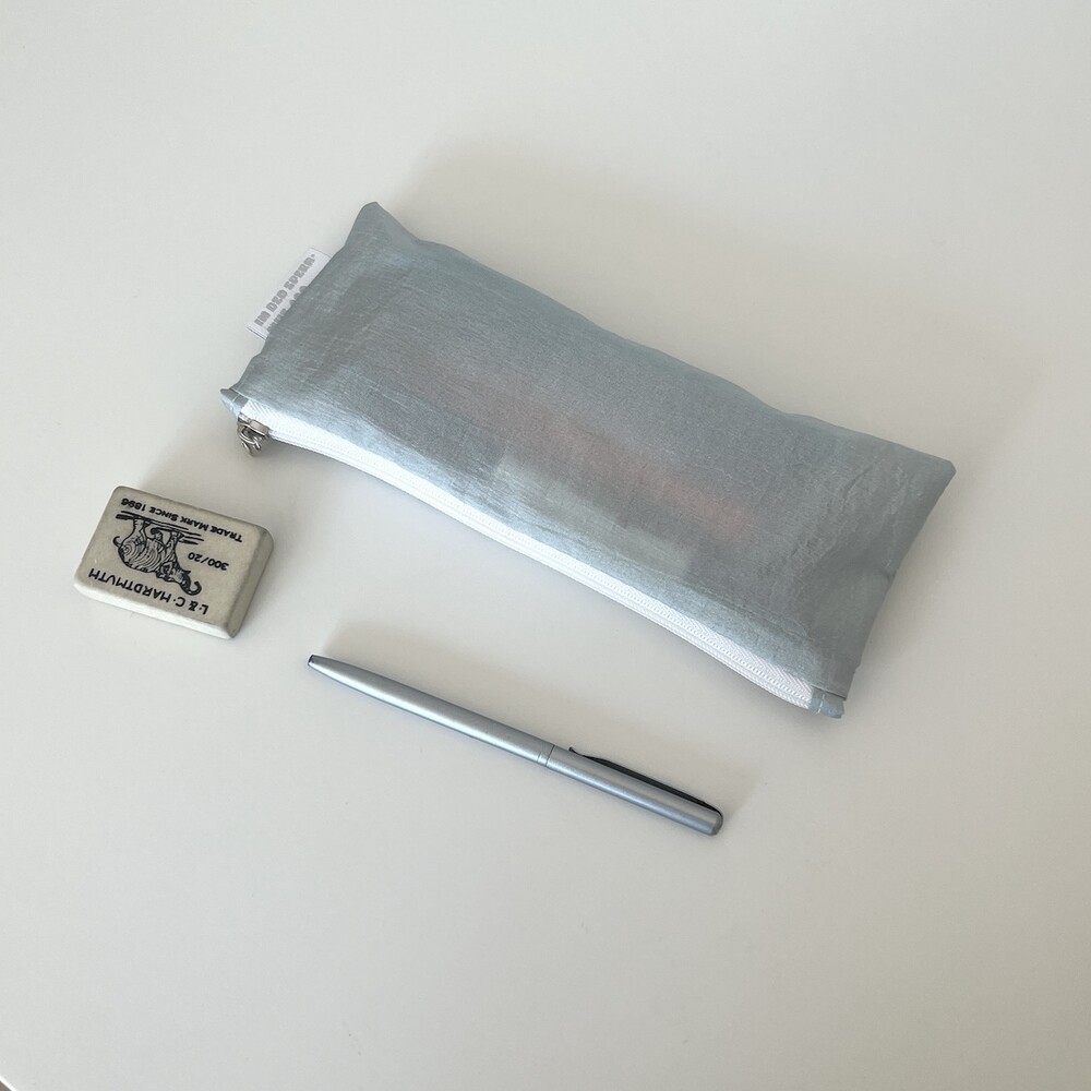 소지품이 살짝 비치면서도 빤짝이는 원단이 포인트인 필통입니다.