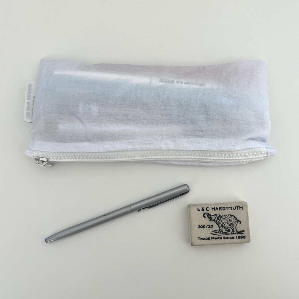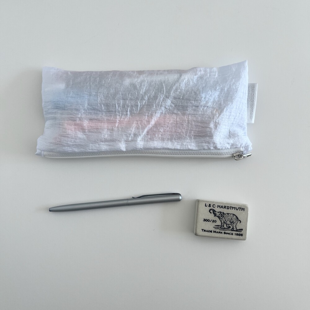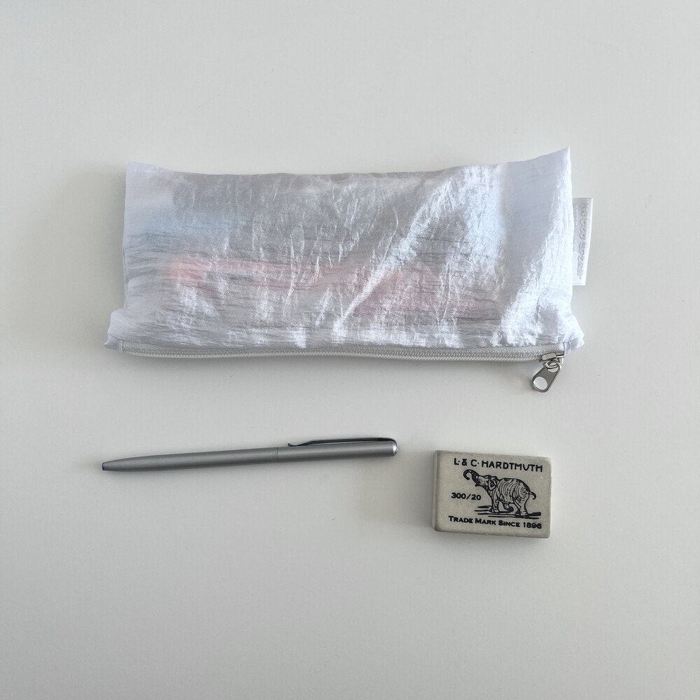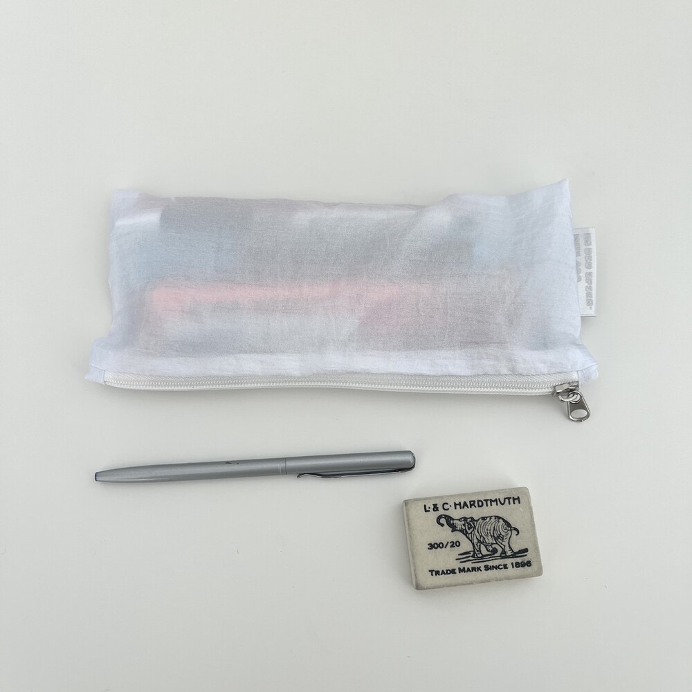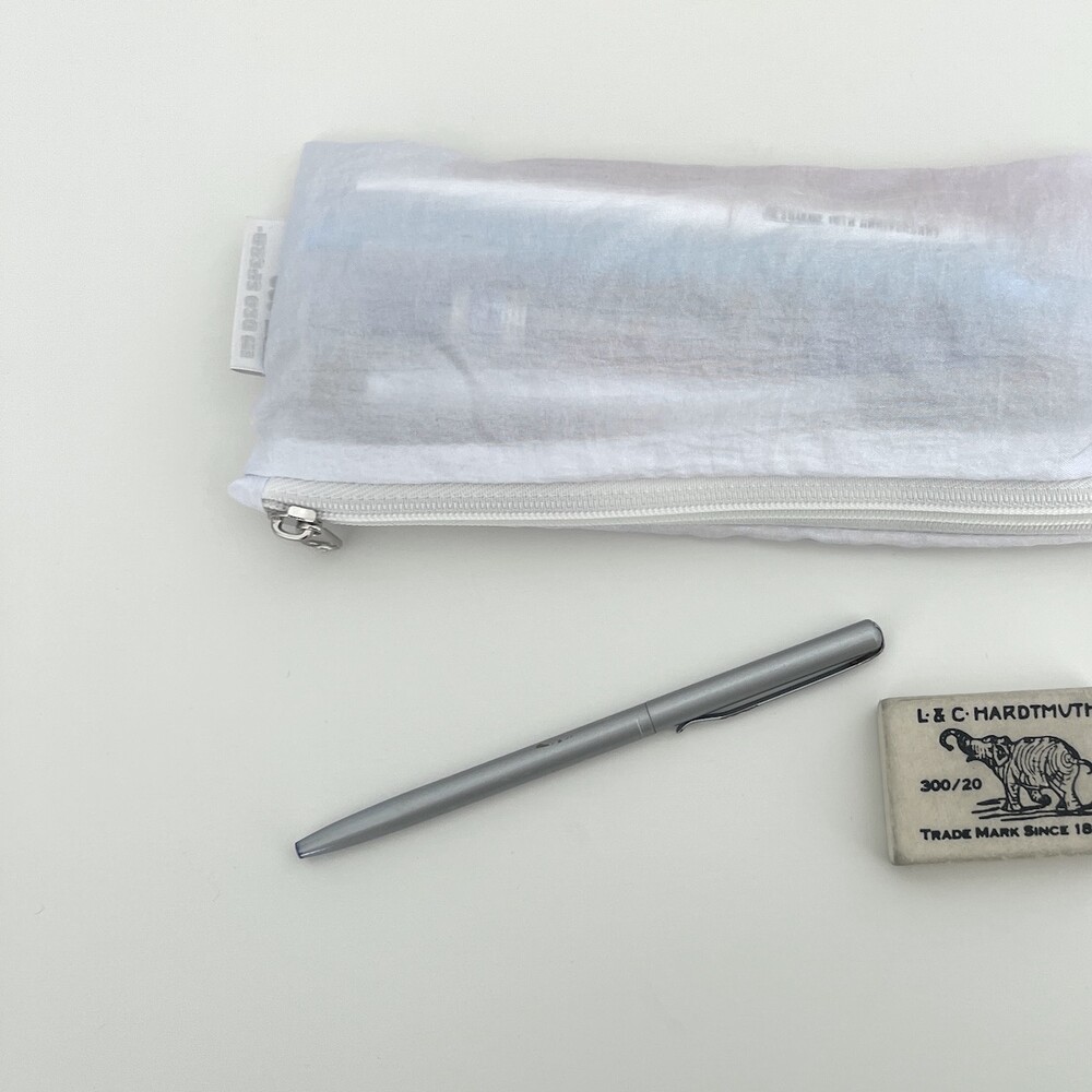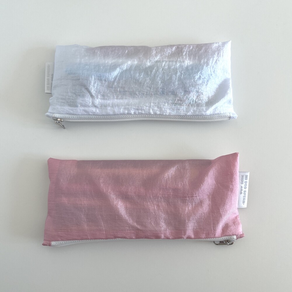소지품이 살짝 비치면서도 빤짝이는 원단이 포인트인 필통입니다.
