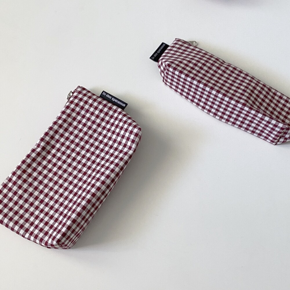 삼각 와인 체크 필통(Triangle wine check pencil case)