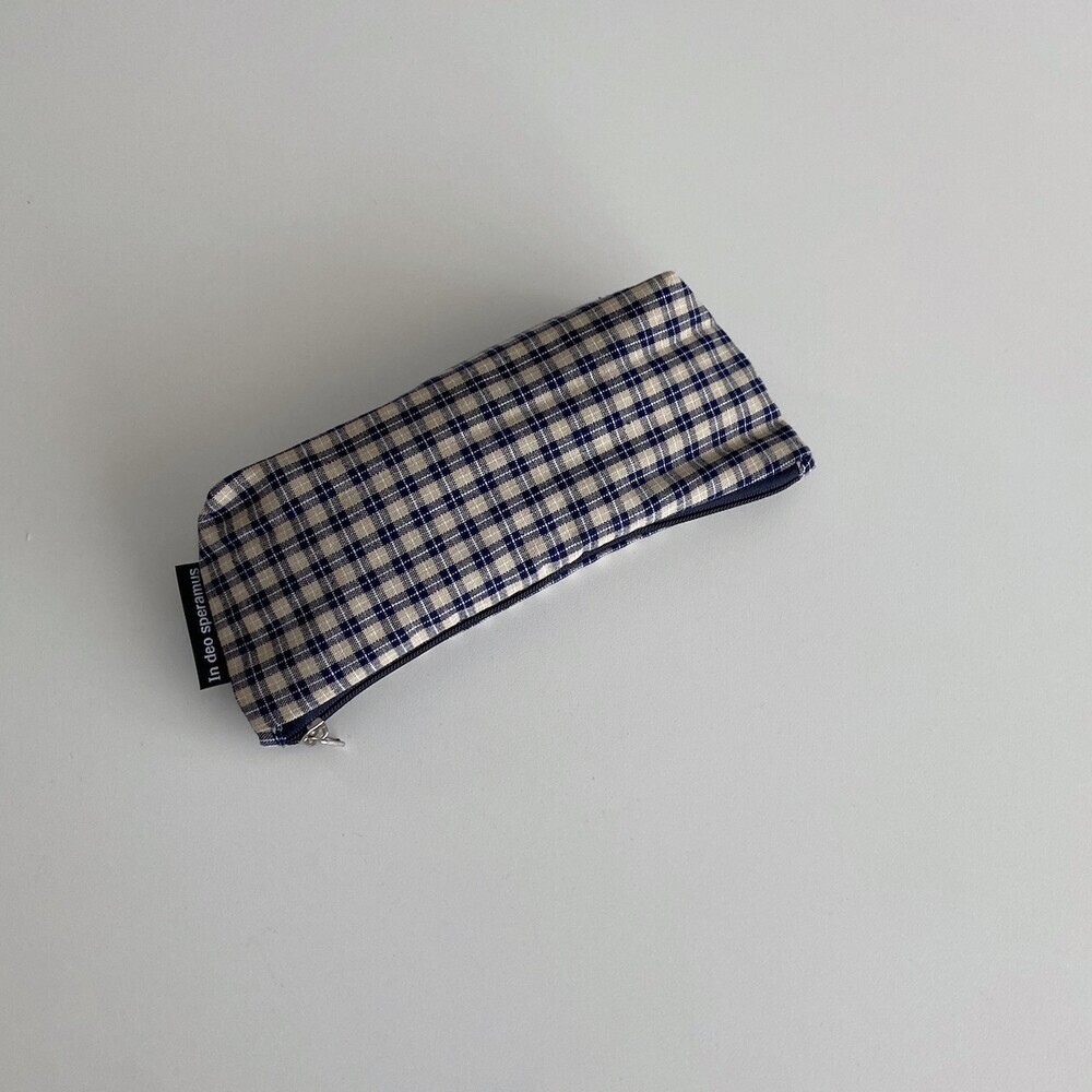 삼각 네이비믹스체크 필통