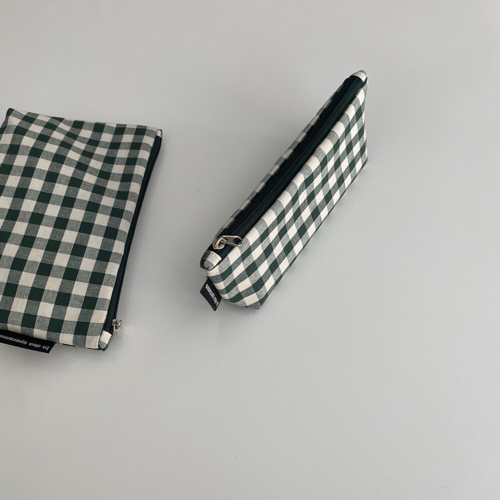 빈티지한 체크 패턴이 매력적인 필통입니다.