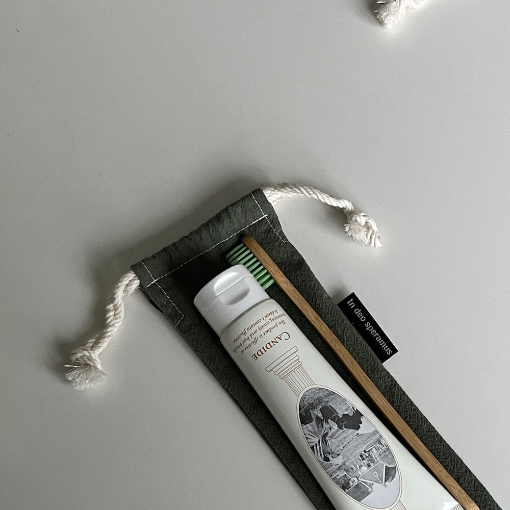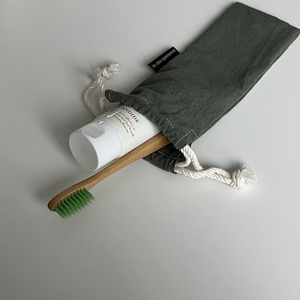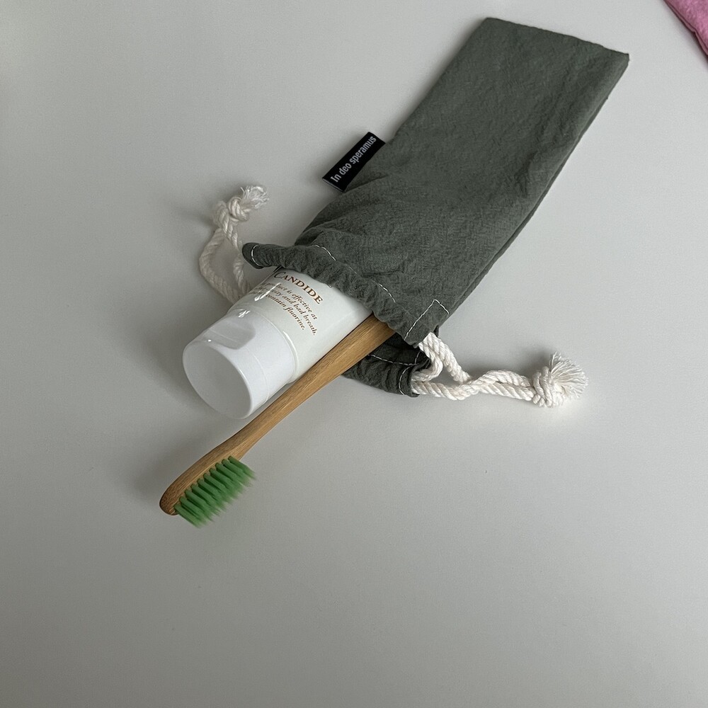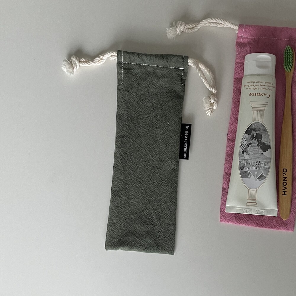 플라스틱 칫솔 케이스를 대체하고자 제작된 면 칫솔 케이스입니다.