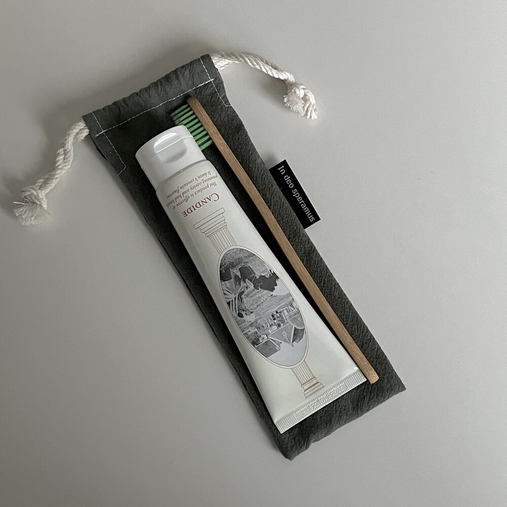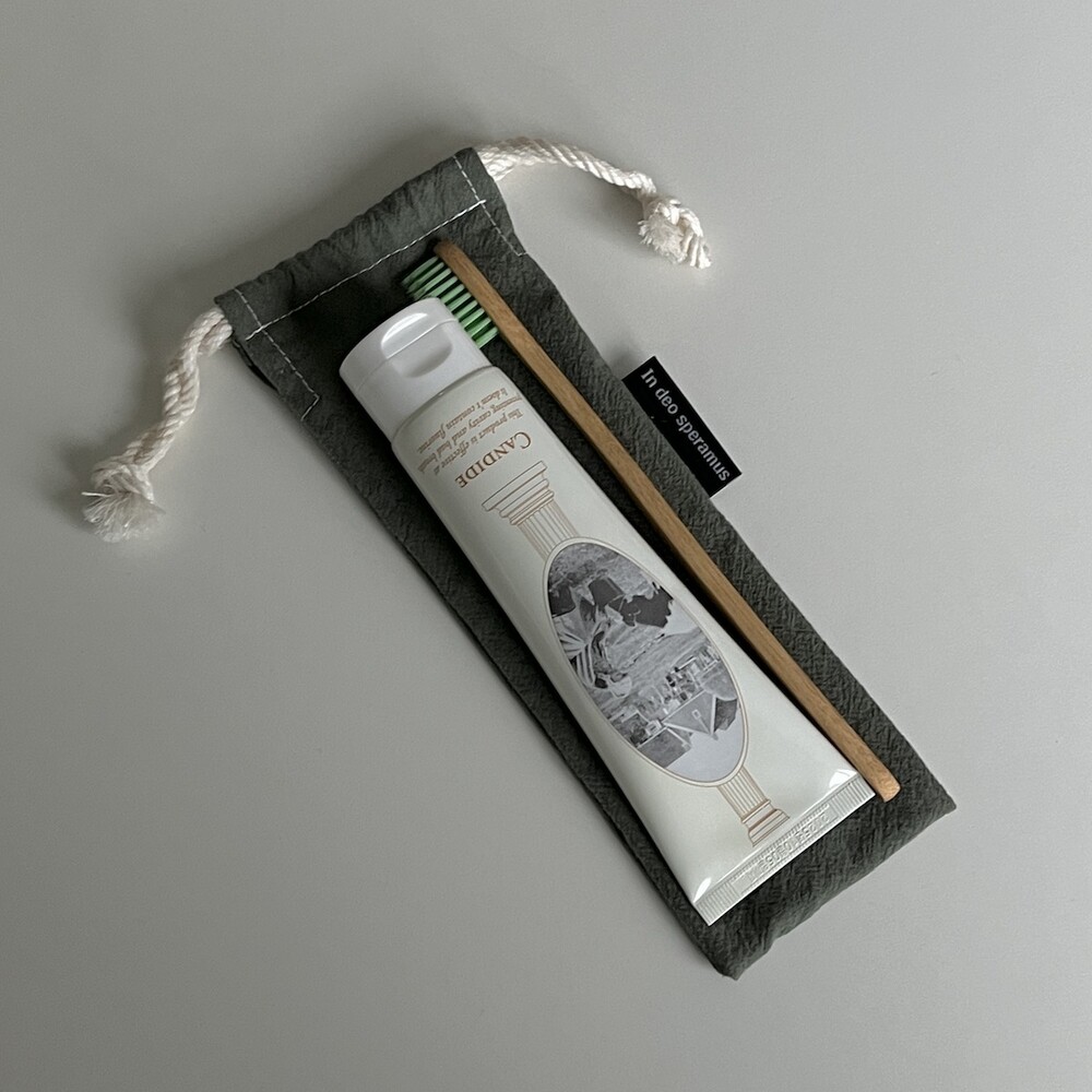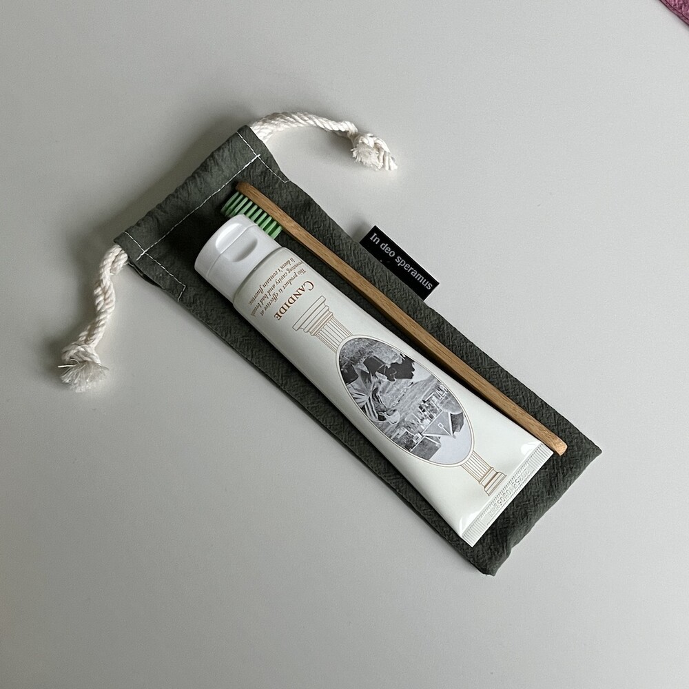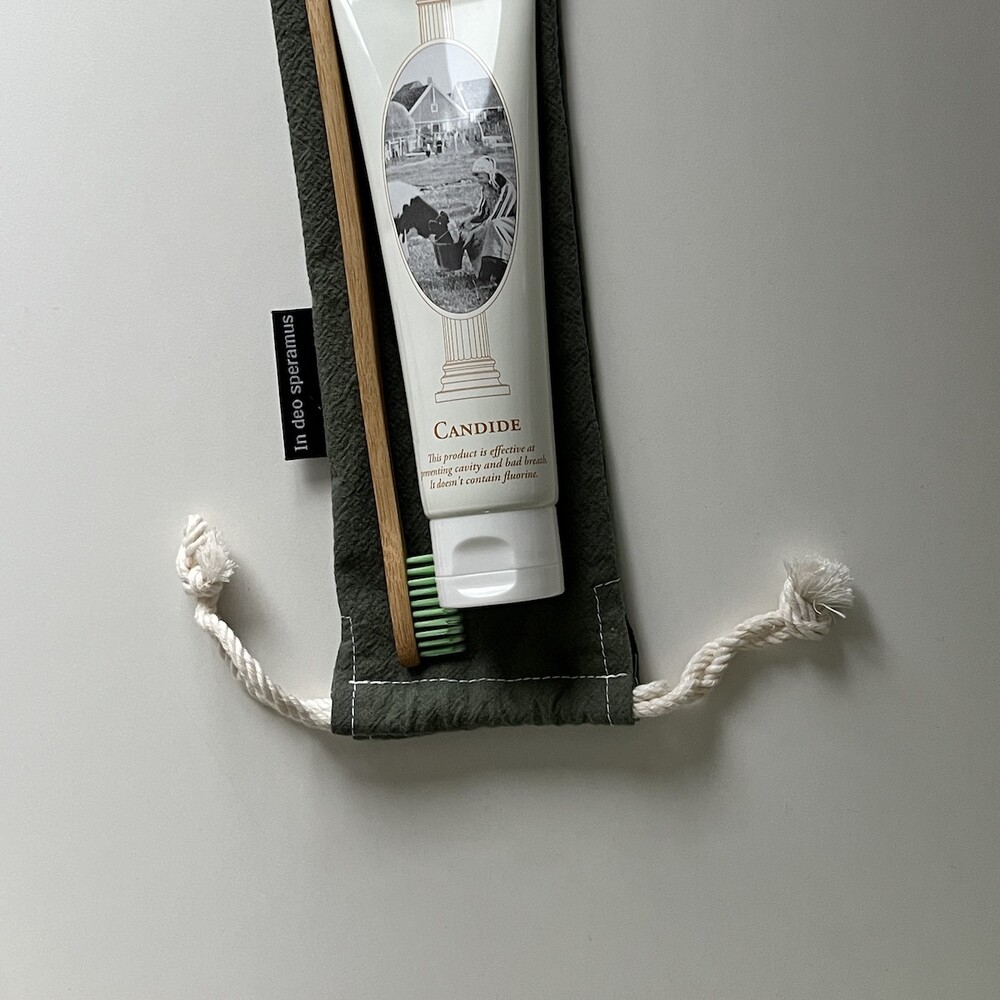 플라스틱 칫솔 케이스를 대체하고자 제작된 면 칫솔 케이스입니다.