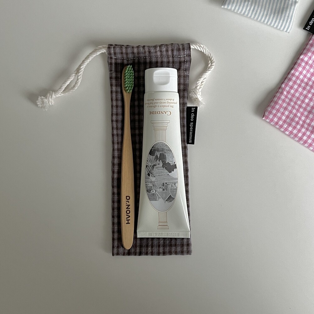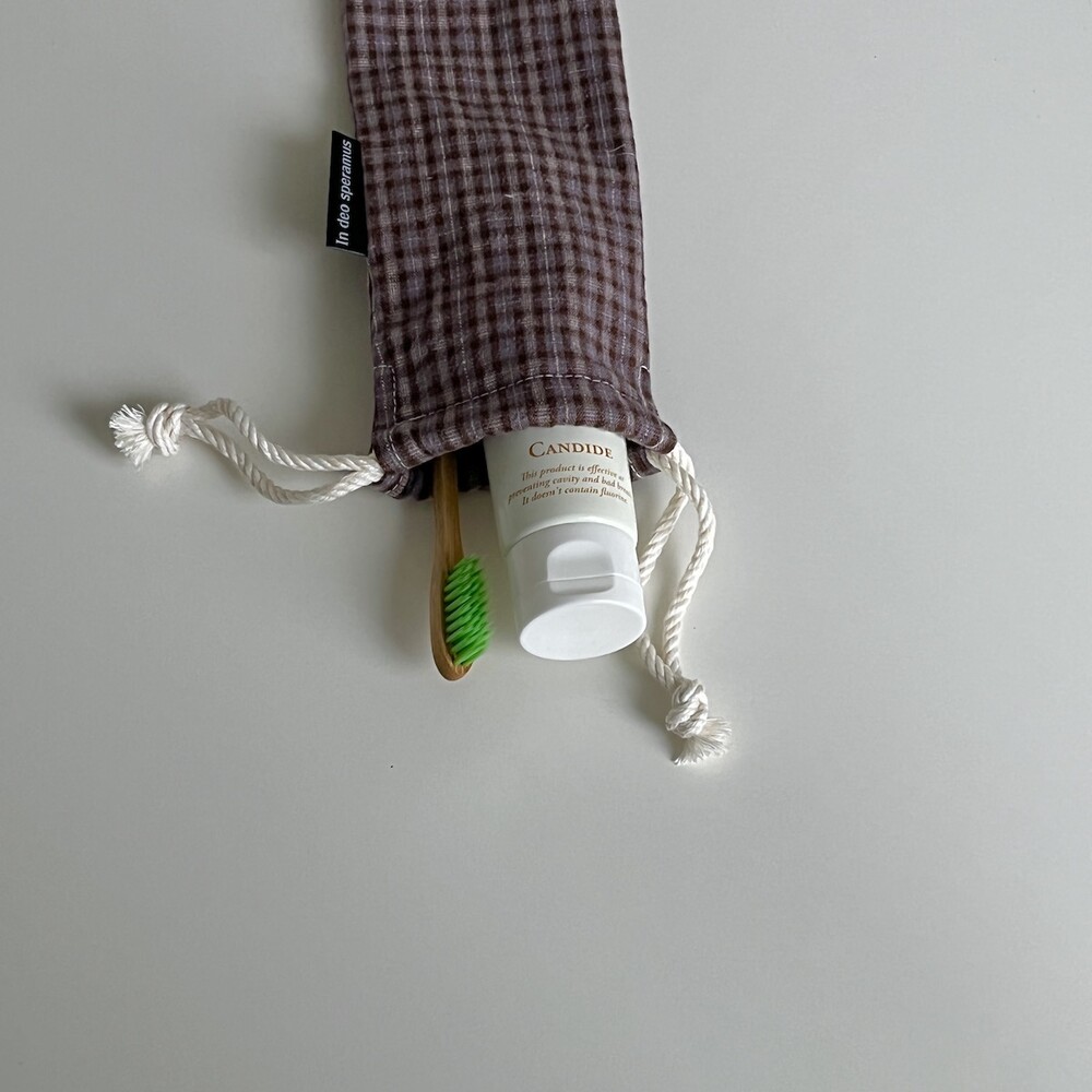 플라스틱 칫솔 케이스를 대체하고자 제작된 면 칫솔 케이스입니다.