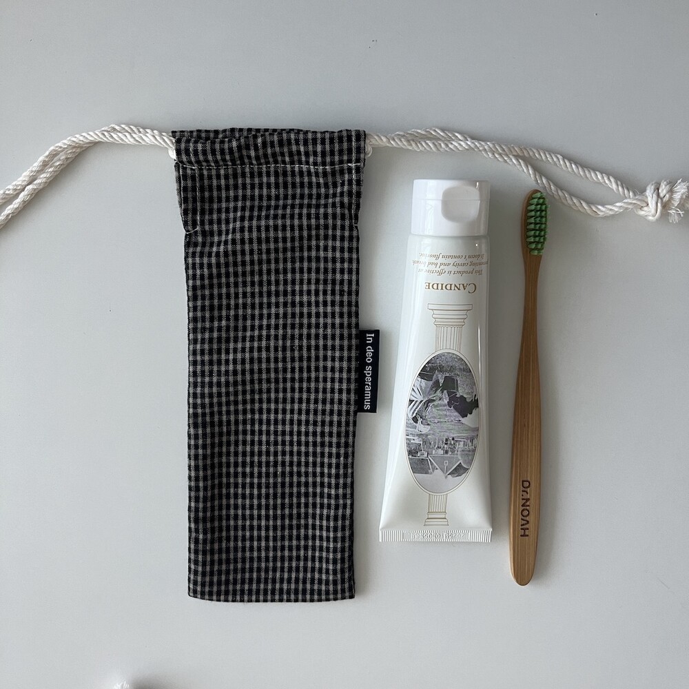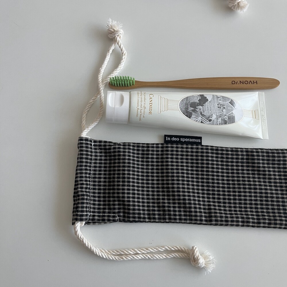 플라스틱 칫솔 케이스를 대체하고자 제작된 면 칫솔 케이스입니다.