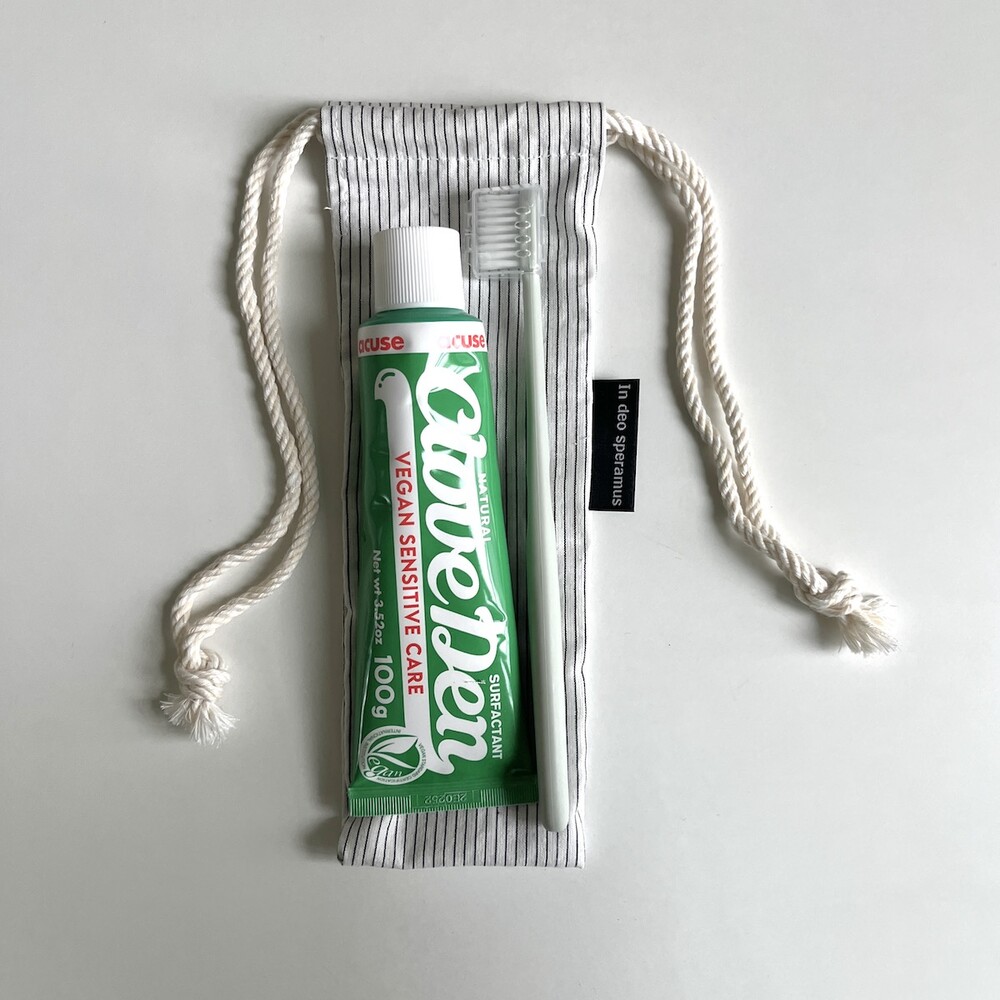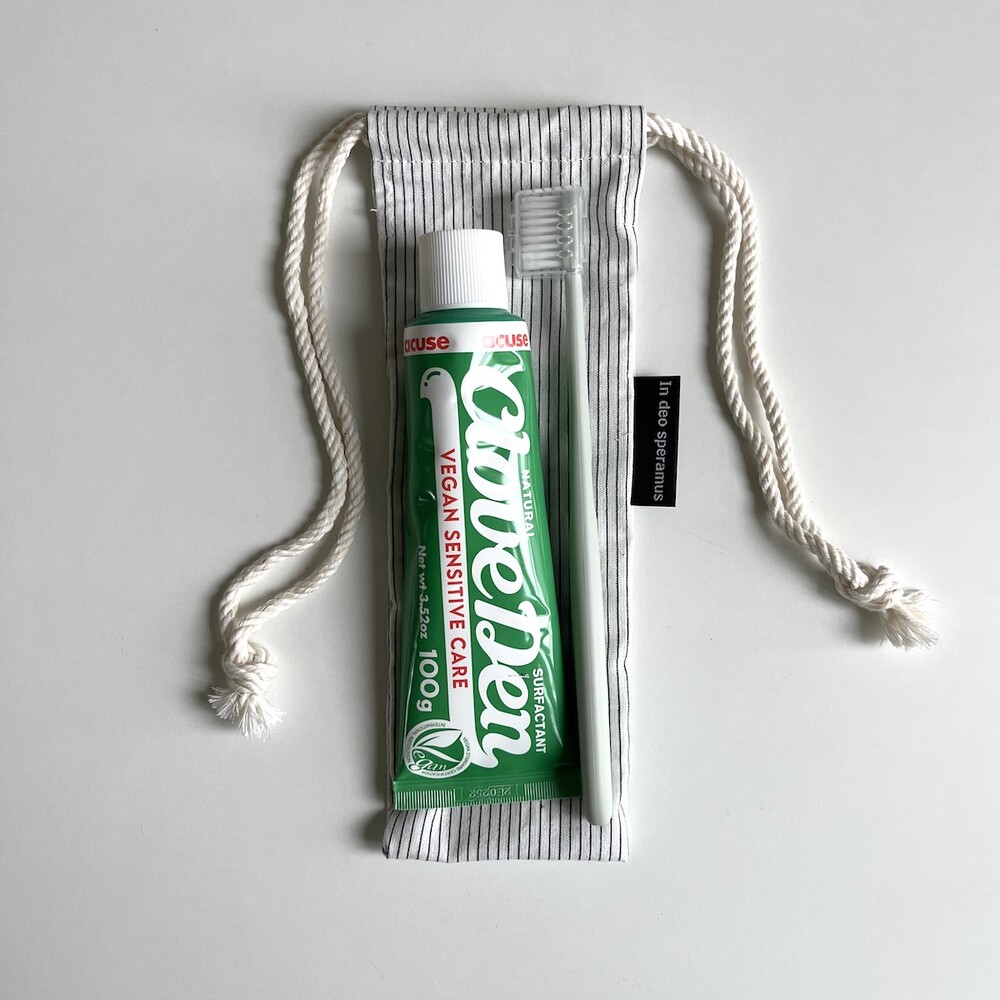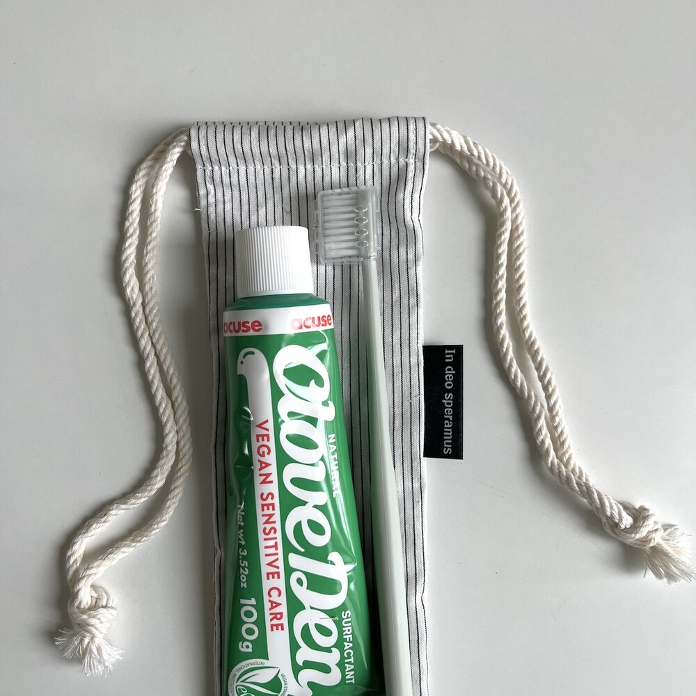플라스틱 칫솔 케이스를 대체하고자 제작된 면 칫솔 케이스입니다.