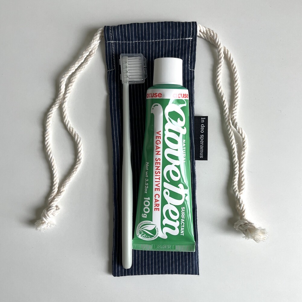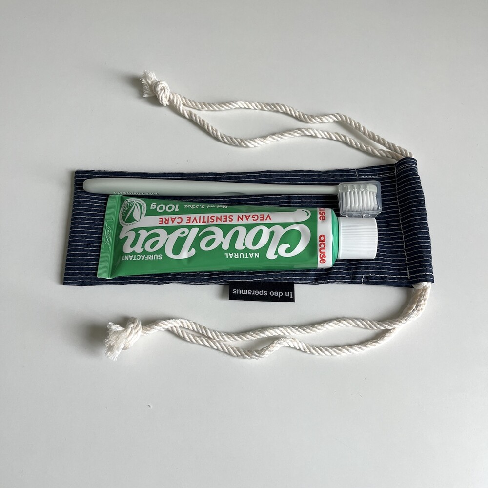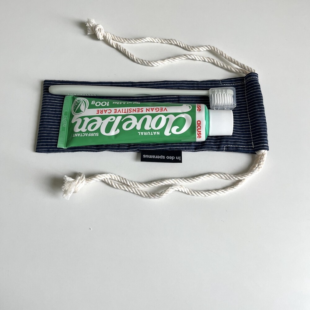 플라스틱 칫솔 케이스를 대체하고자 제작된 면 칫솔 케이스입니다.