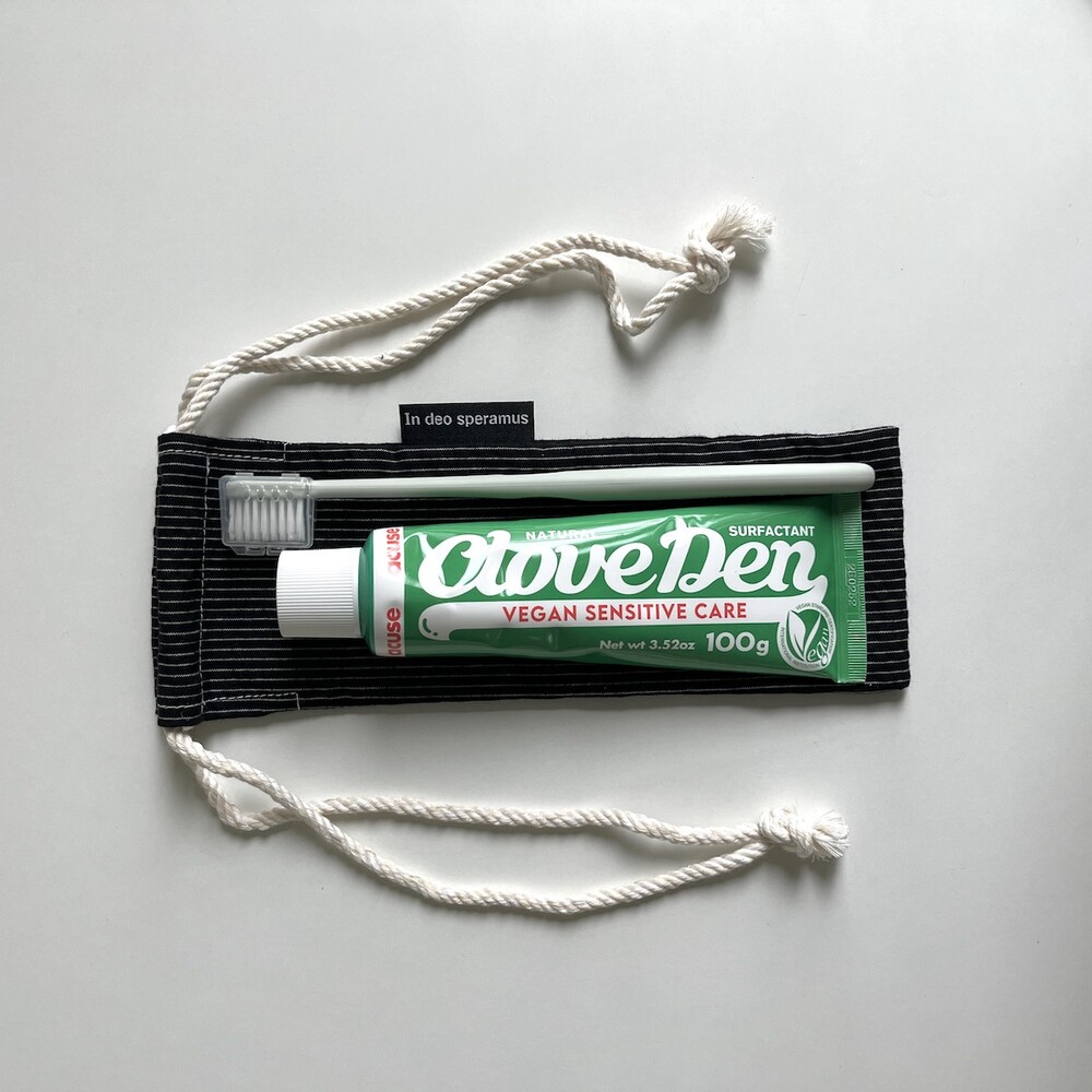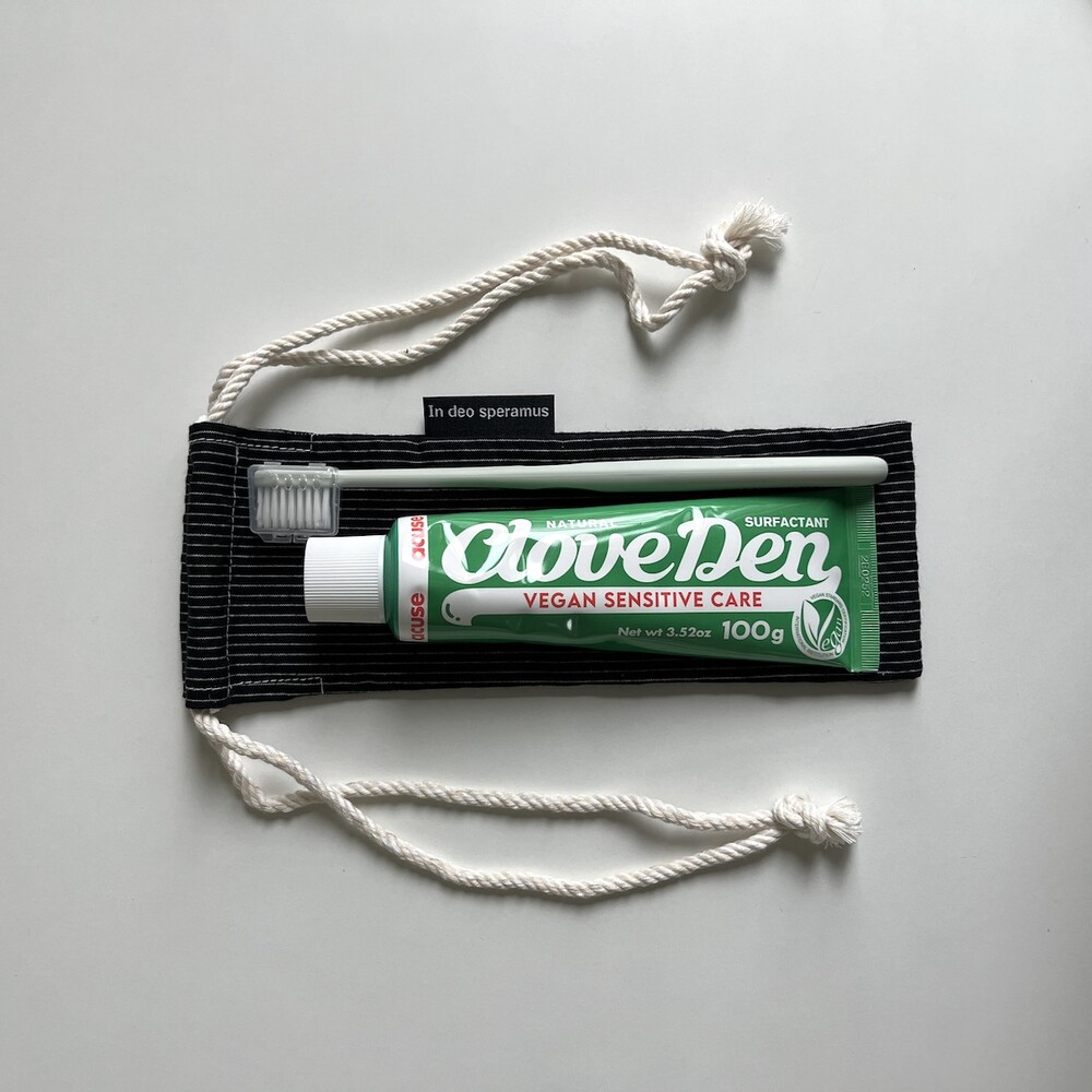 플라스틱 칫솔 케이스를 대체하고자 제작된 면 칫솔 케이스입니다.
